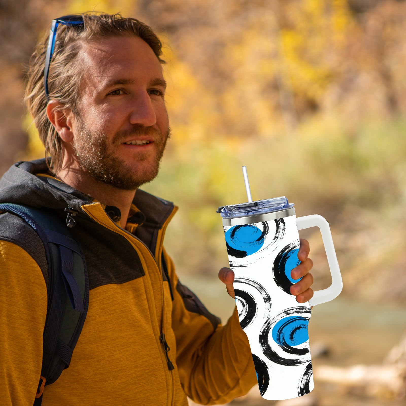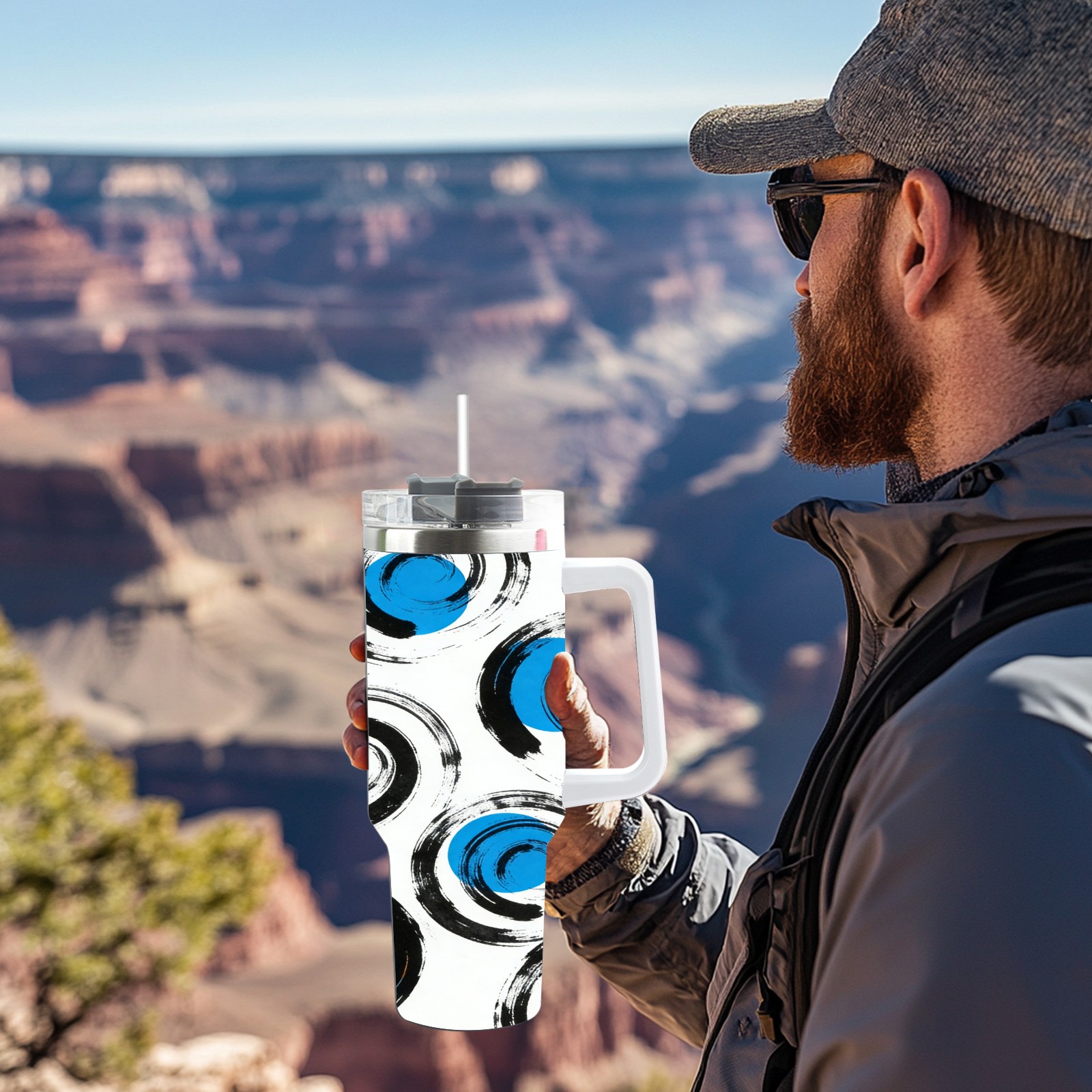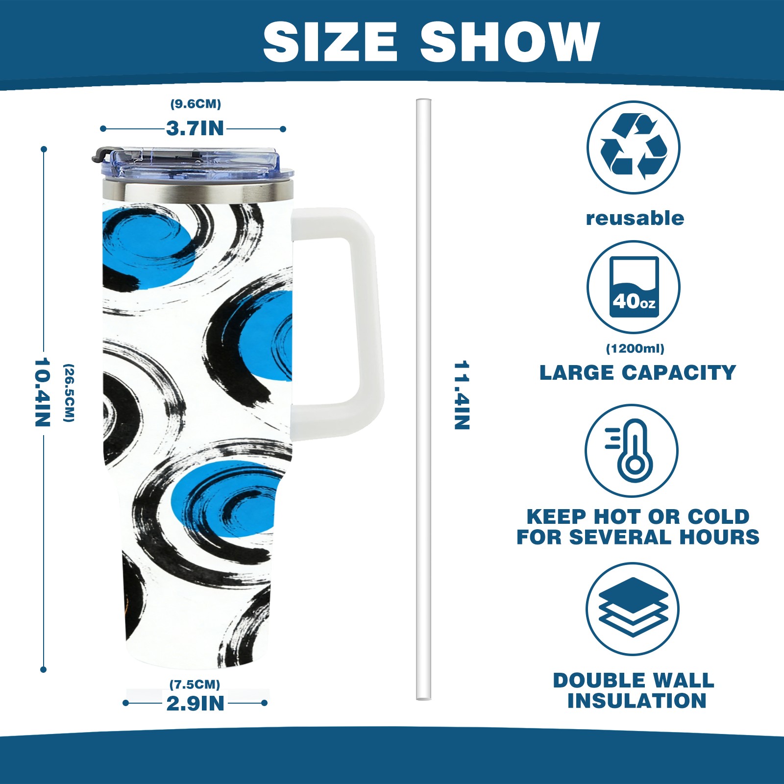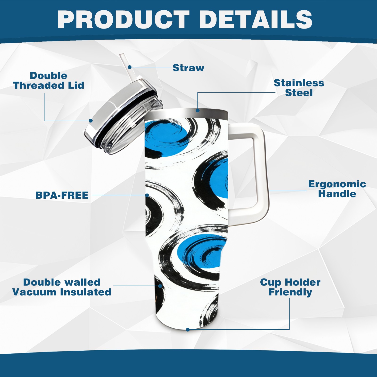 40 унций полностью напечатанный автомобильный стакан Blue Spiral