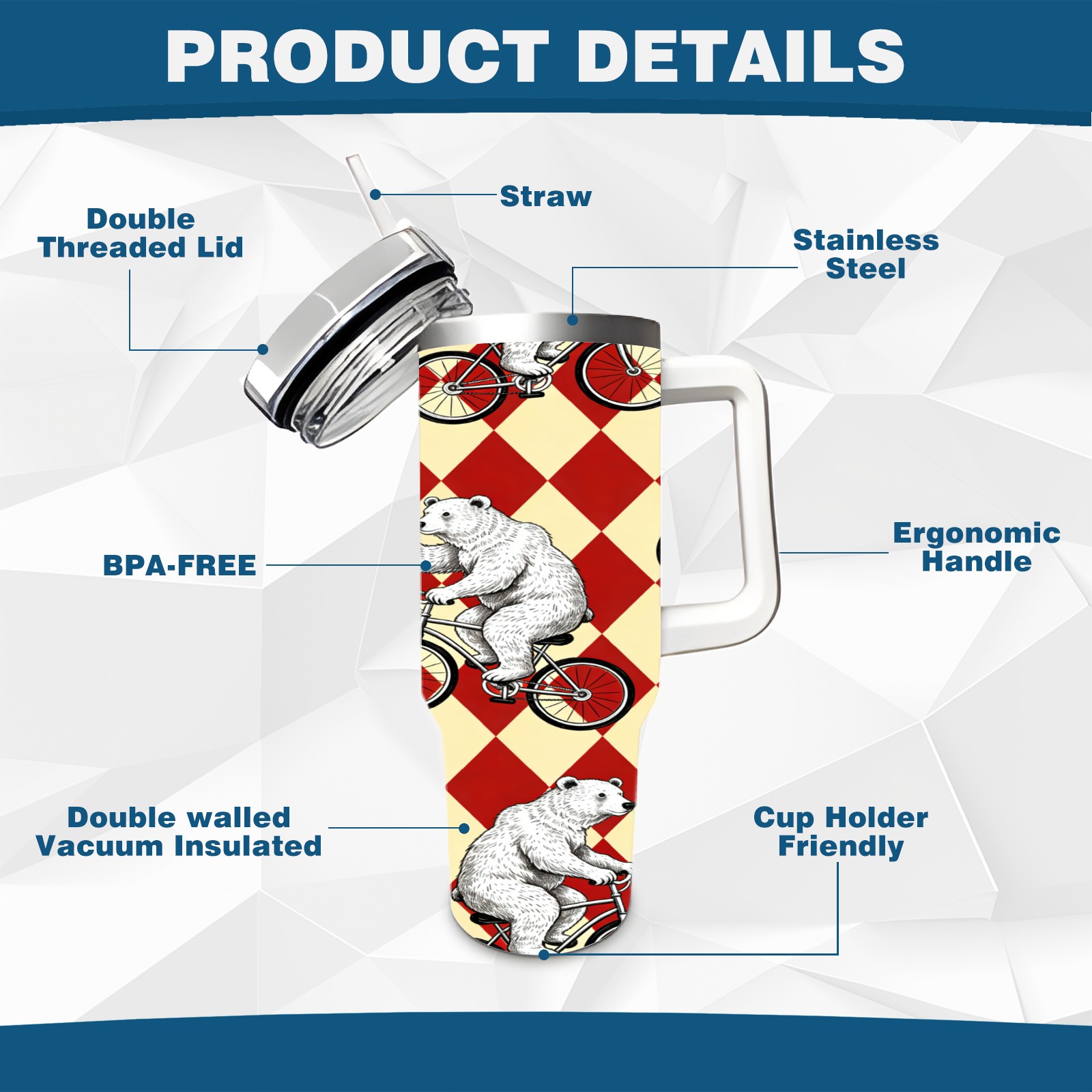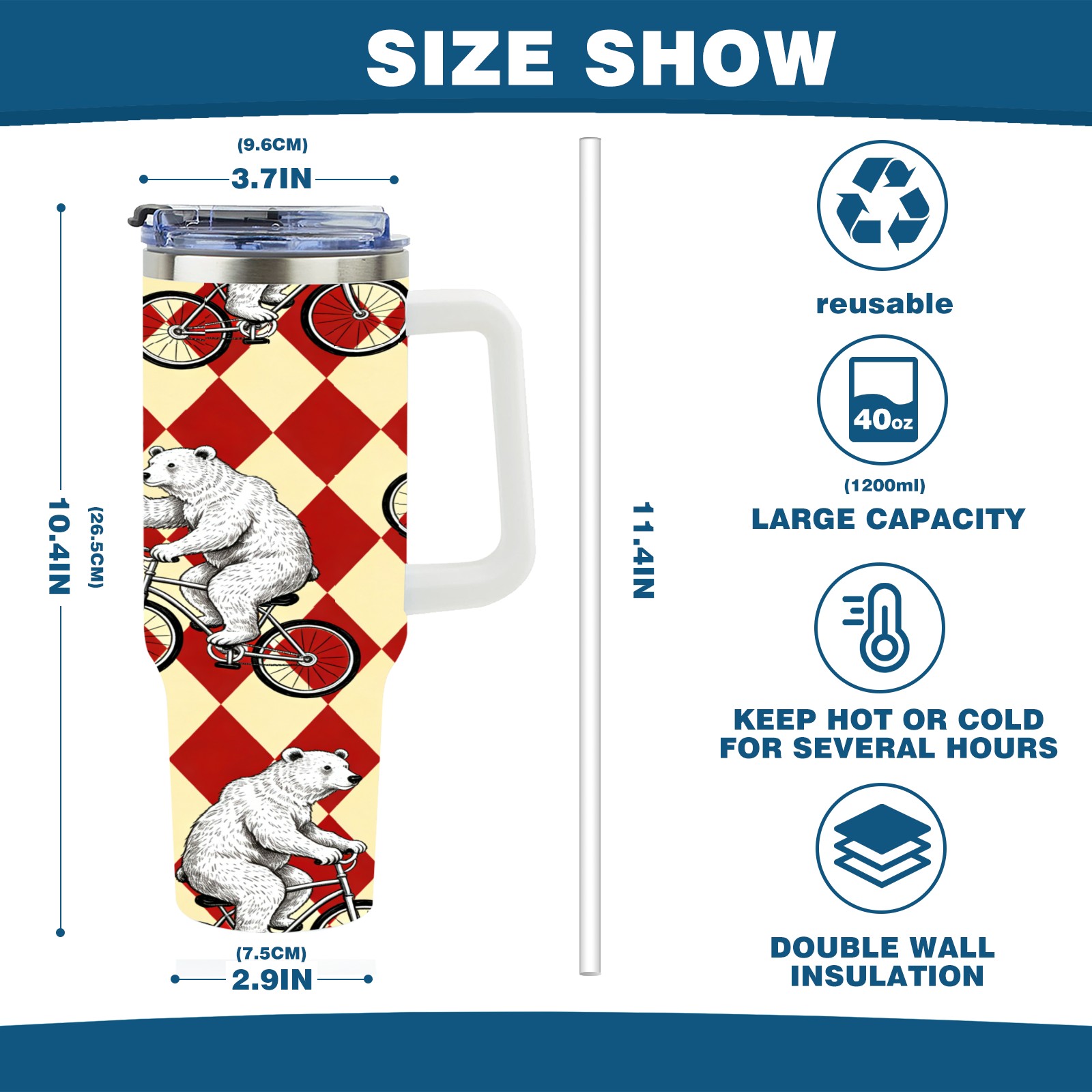 40 унций полностью напечатанный автомобильный стакан Circus Bear 1