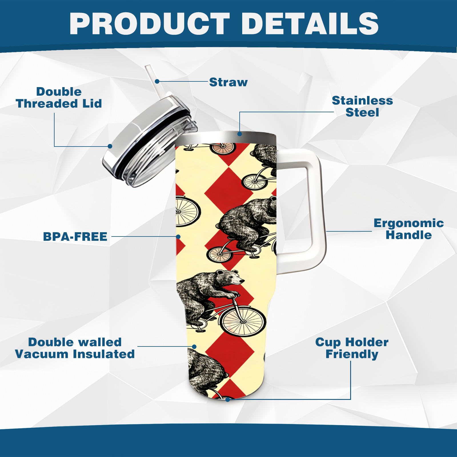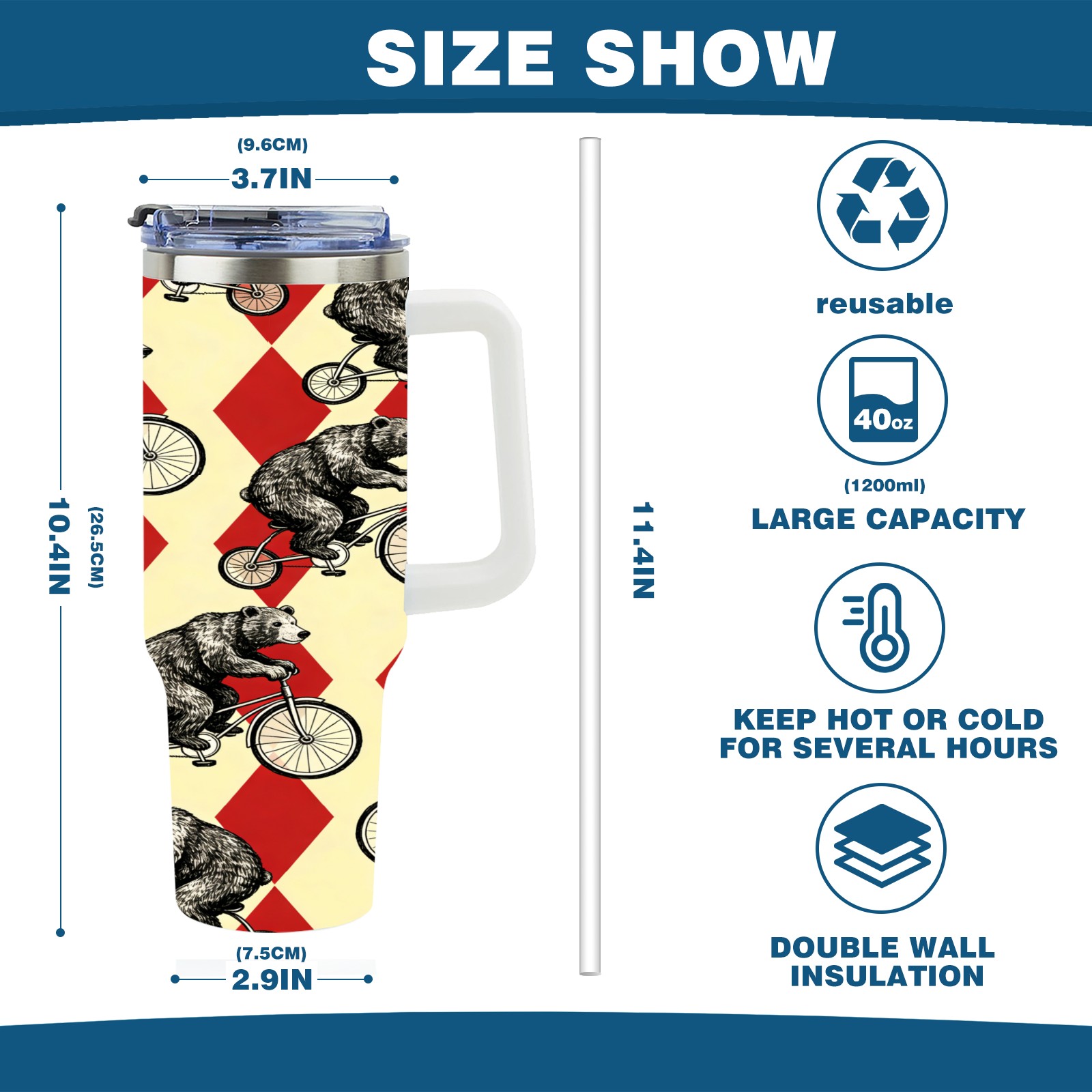 40 унций полностью напечатанный автомобильный стакан Circus Bear 3