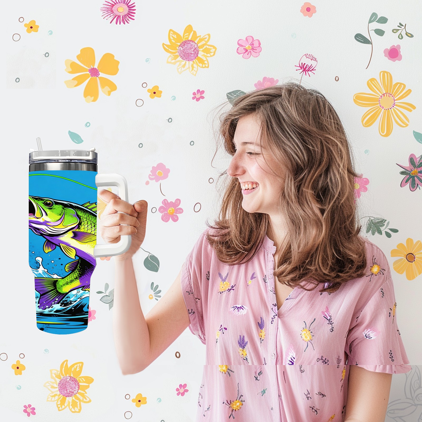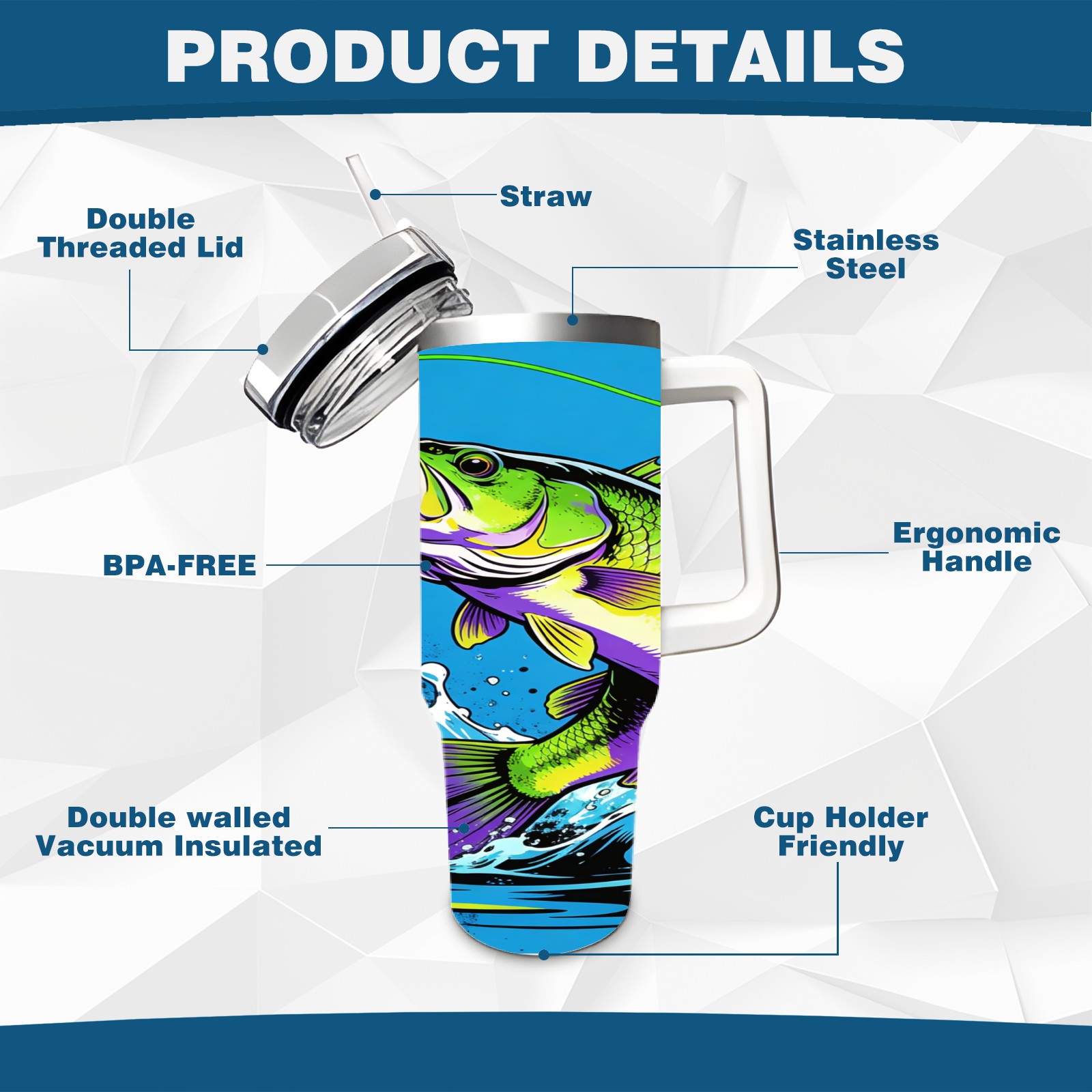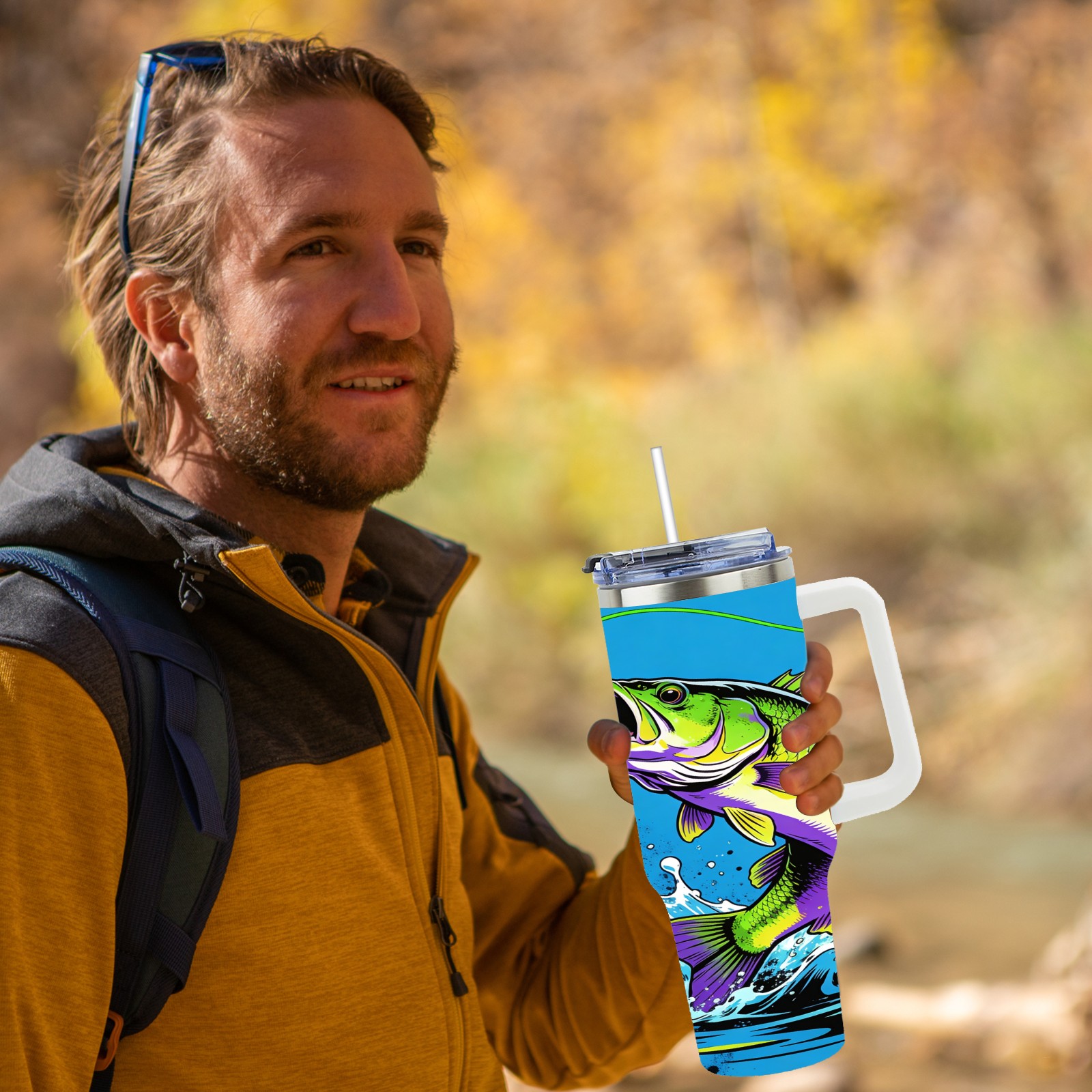 40 унций полностью напечатанный автомобильный стакан Bass That Bite