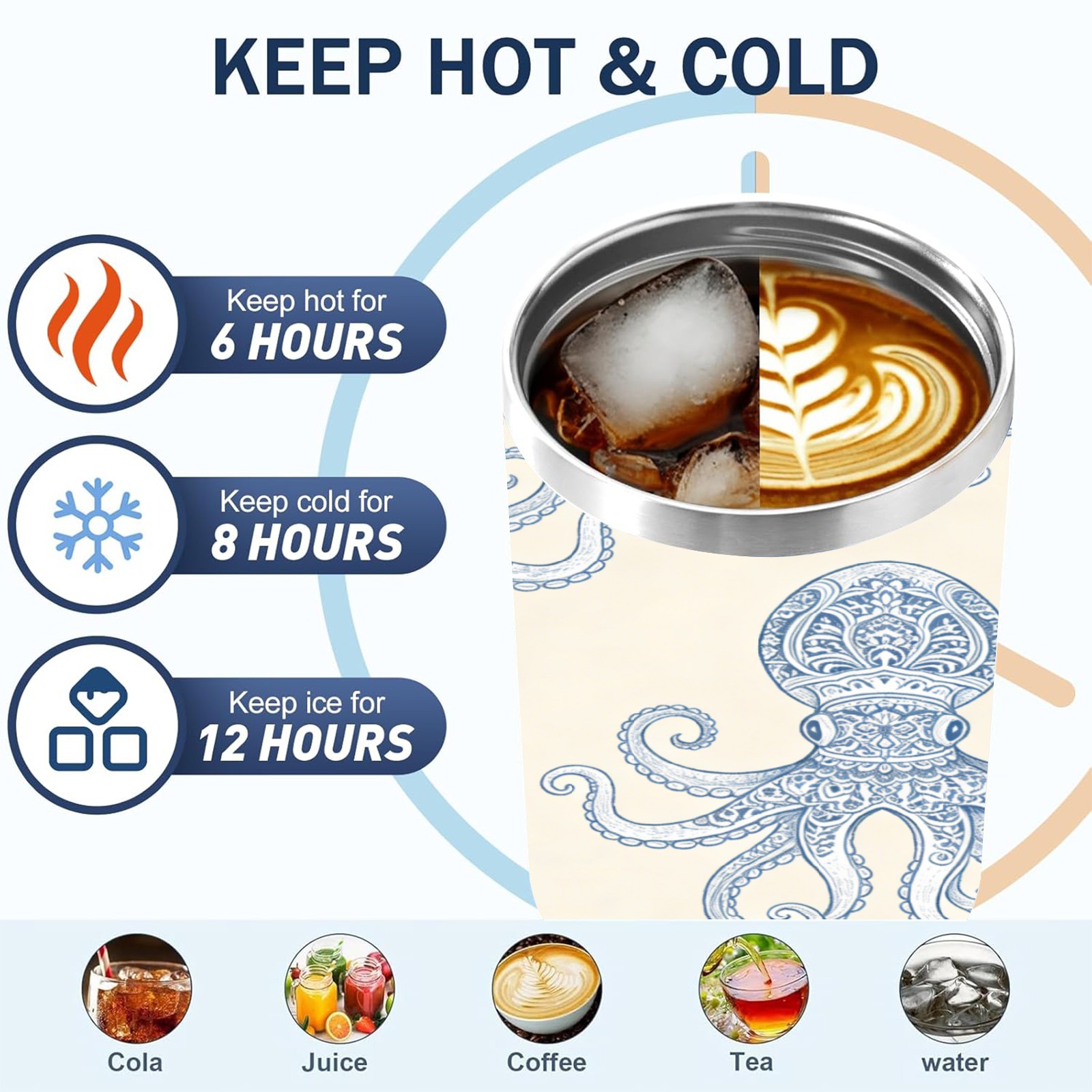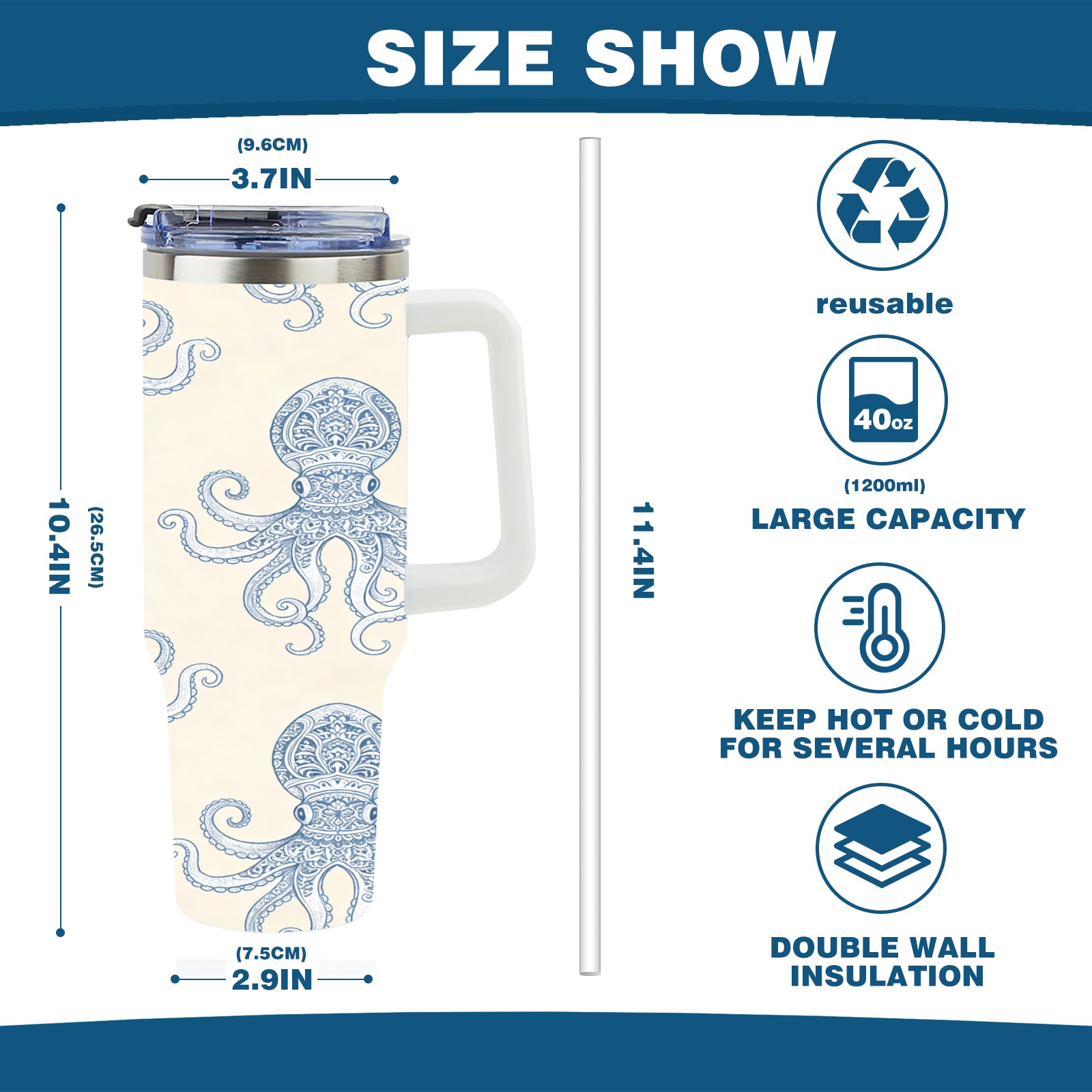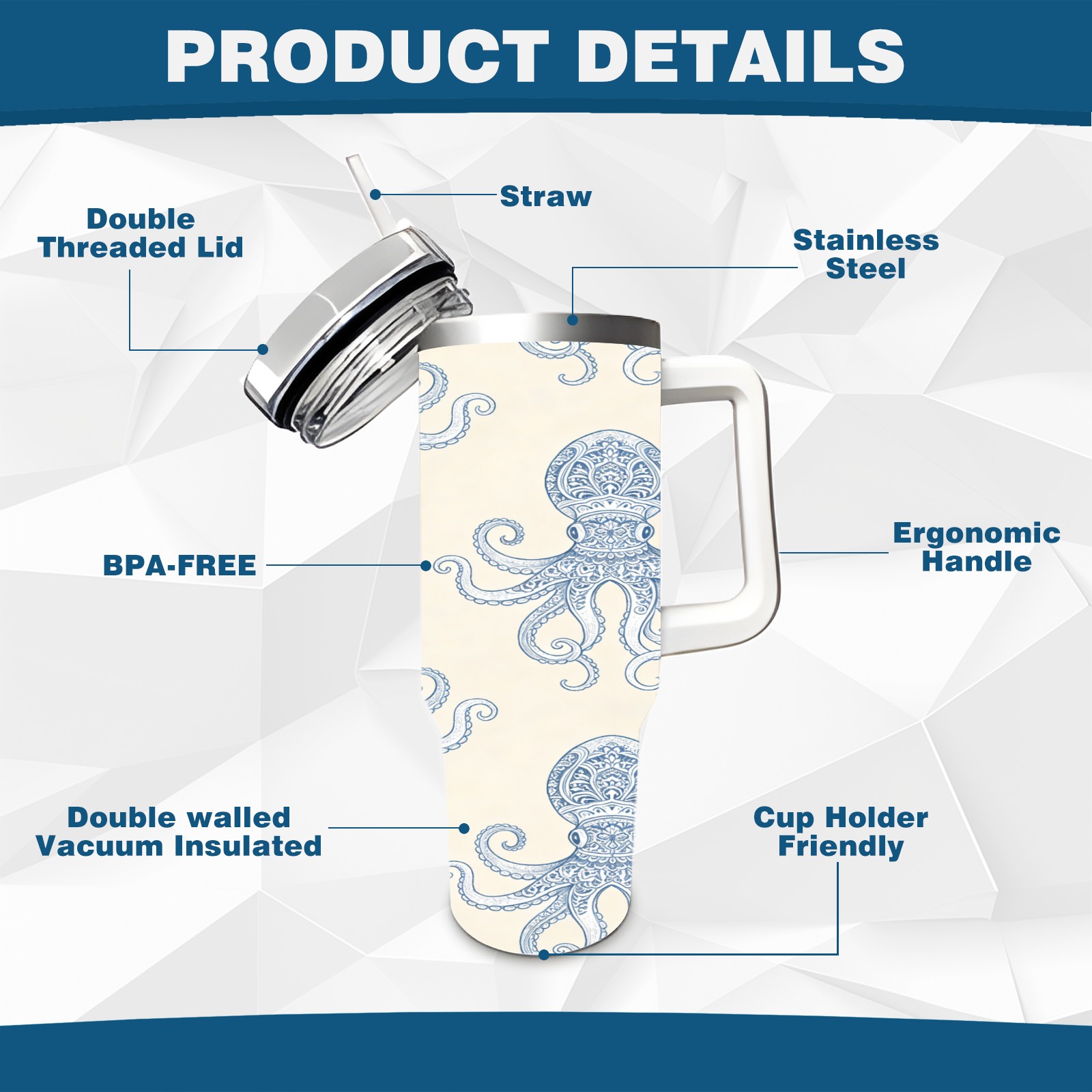 40 унций полностью напечатанный автомобильный стакан Patterned Octopus