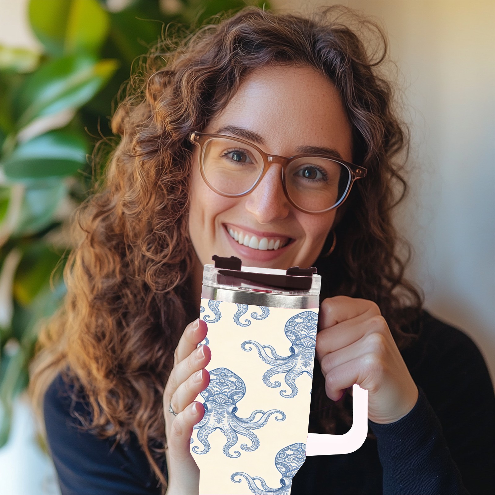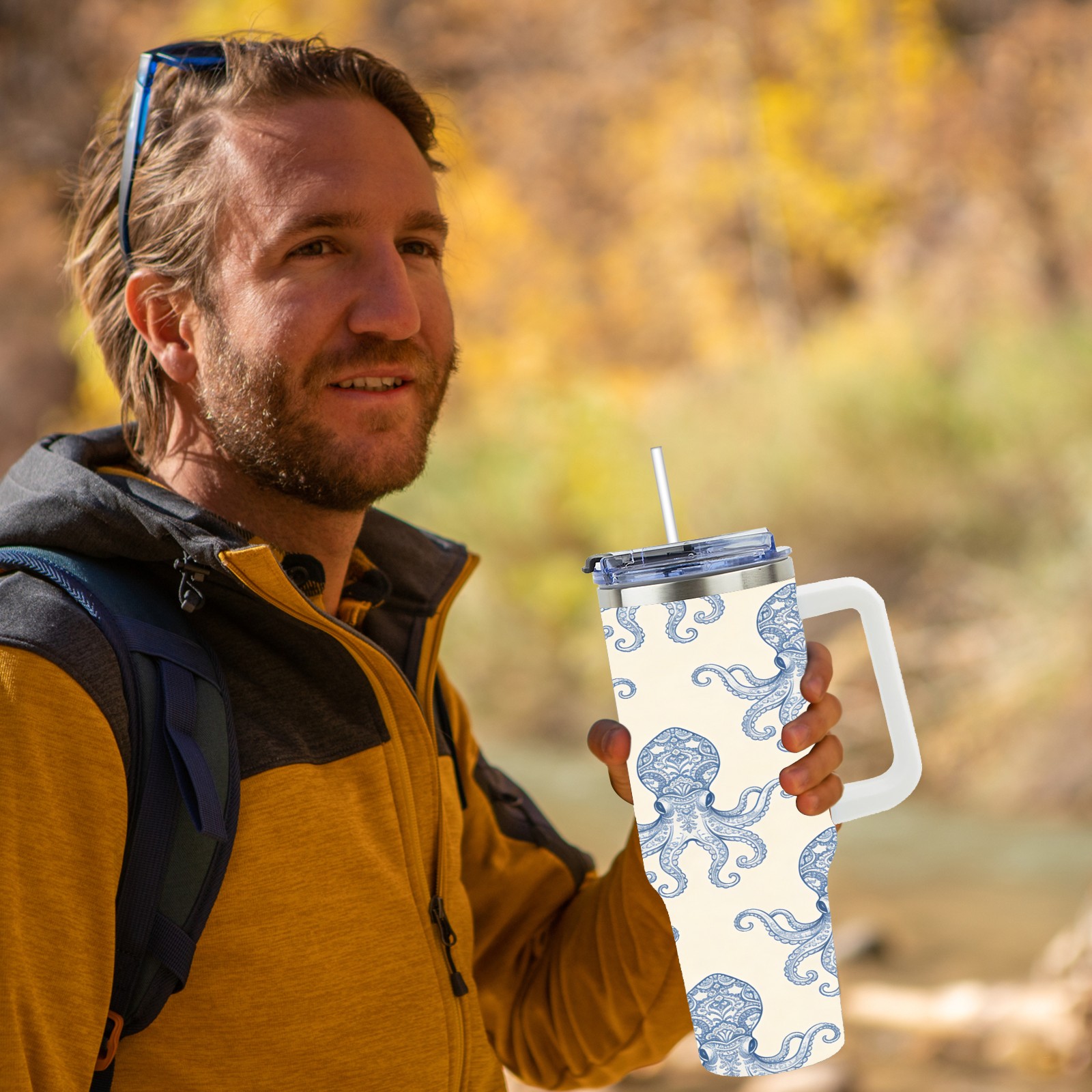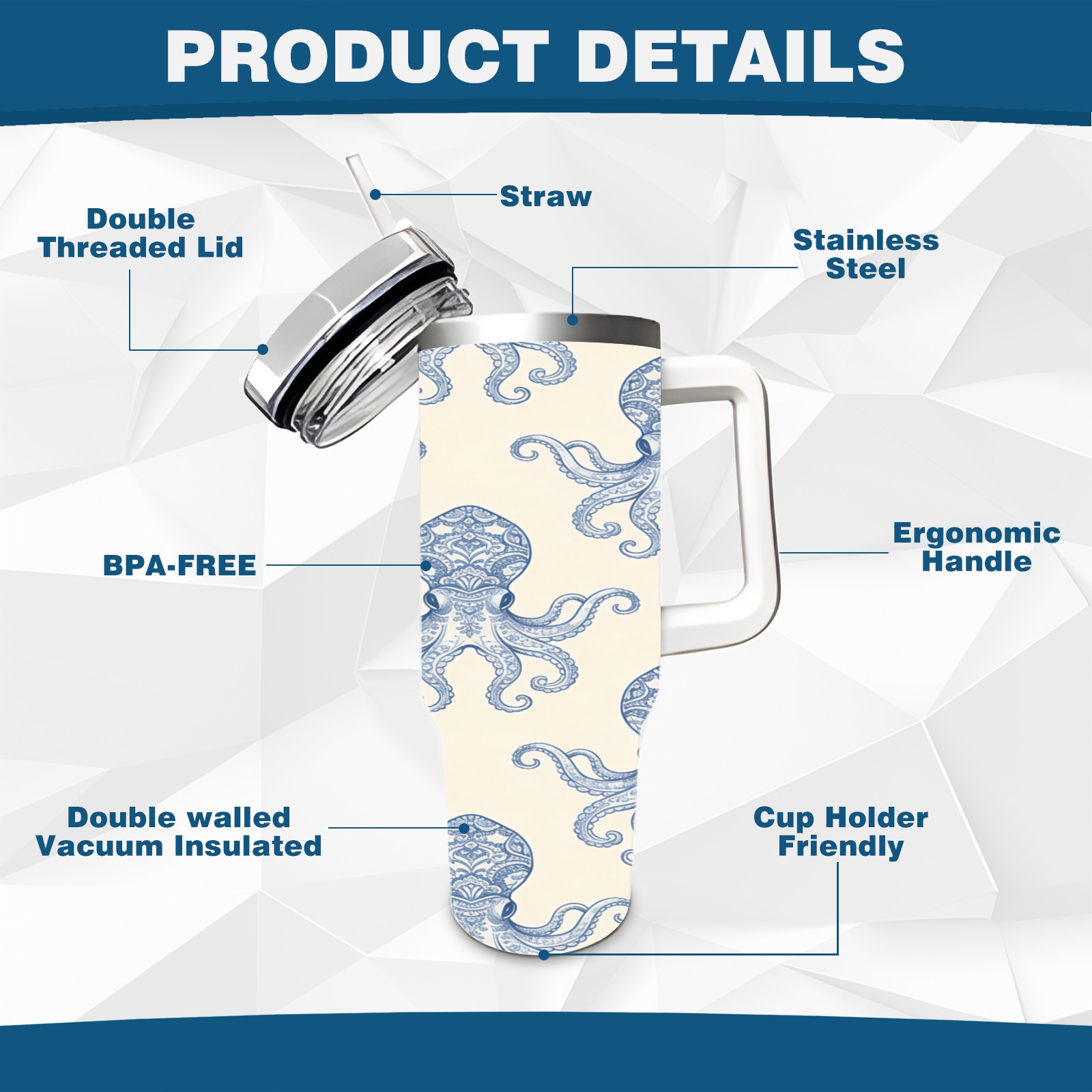 40 унций полностью напечатанный автомобильный стакан Blue-striped Octopus 2