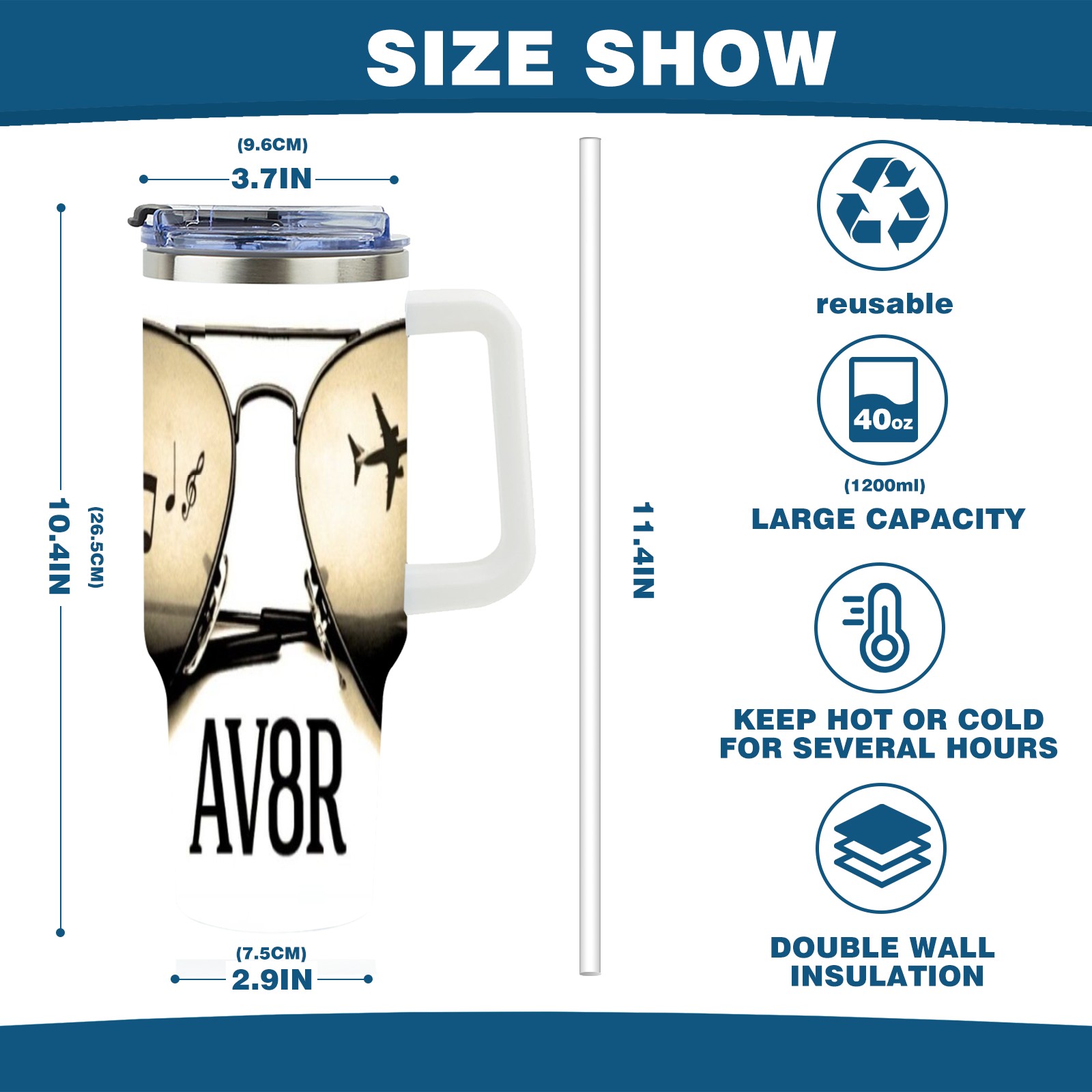 • С большой емкостью 40 унций, он обеспечивает вас гидратацией в течение всего дня, идеально подходит для воды, кофе, сока или других напитков. Эргономичный дизайн идеально вписывается в автомобильные держатели для бутылок, а прочный, герметичный колпачок предотвращает утечки во время передвижения. Путешествие. Антискользящее основание обеспечивает устойчивость, а гладкие поверхности делают уборку легкой — просто мойте вручную или кладите в посудомоечную машину (рекомендуется верхний поддон).