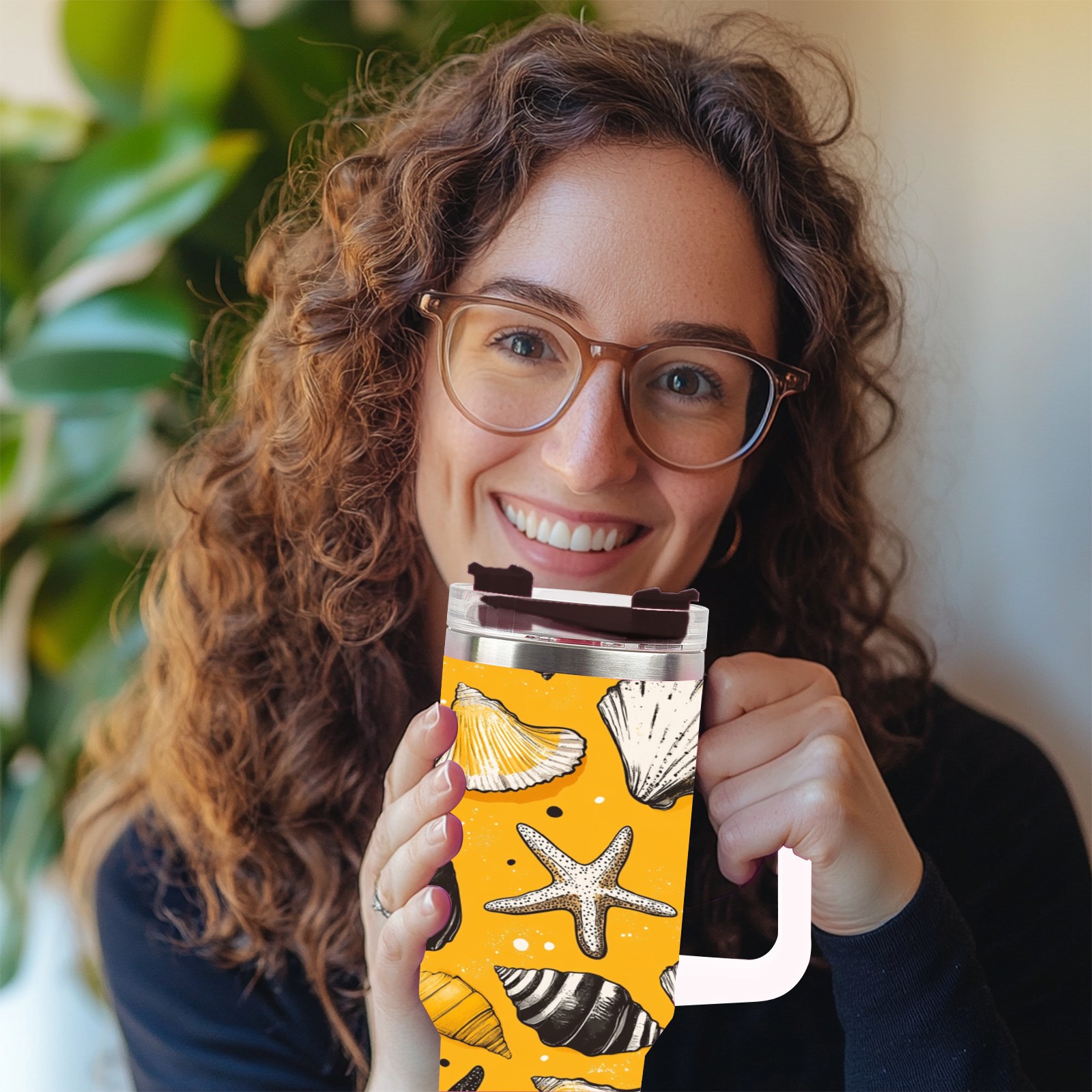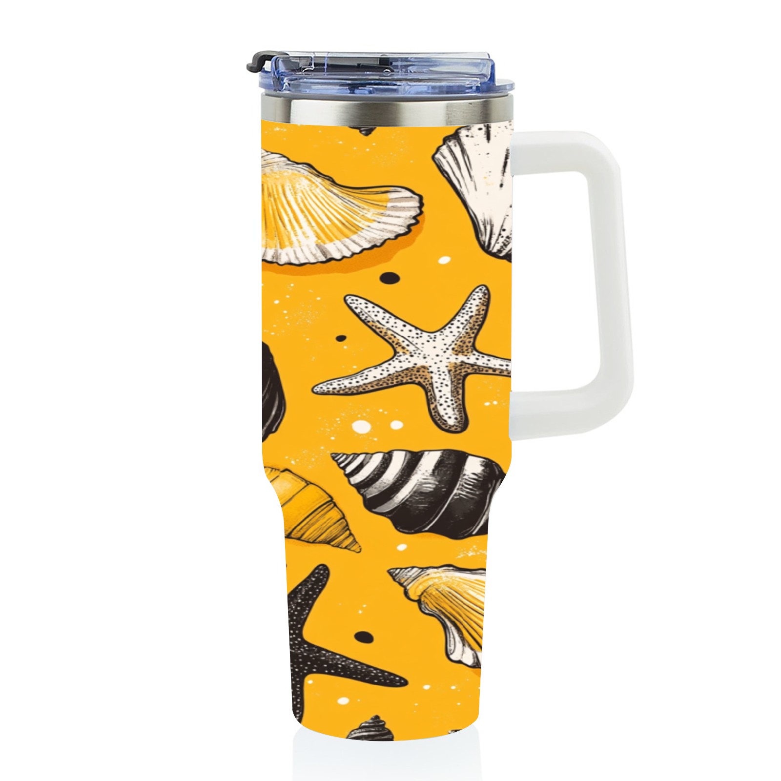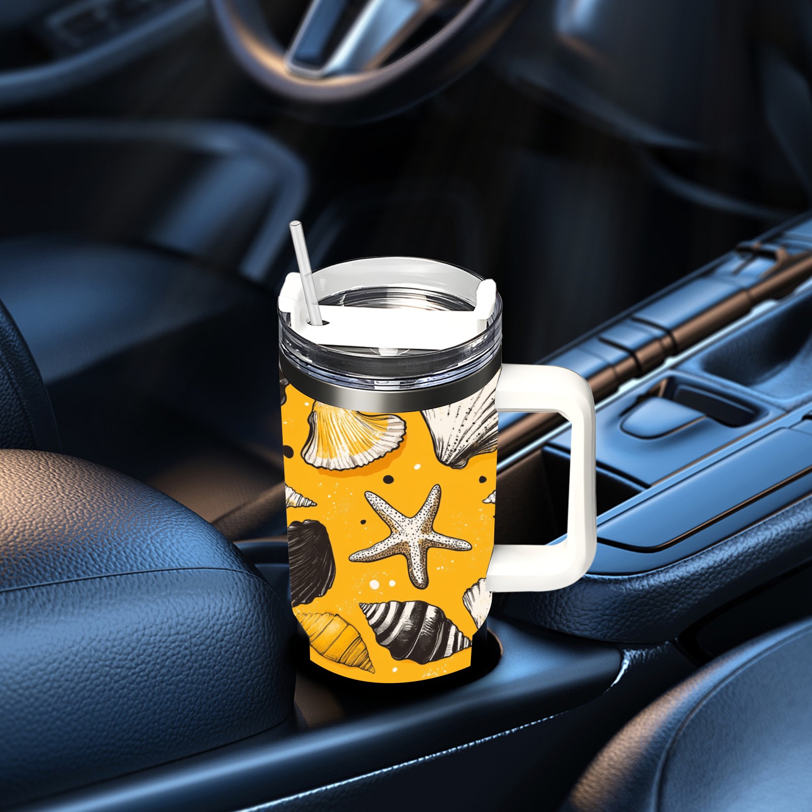 40 унций полностью напечатанный автомобильный стакан Yellow Seashell Pattern(1)