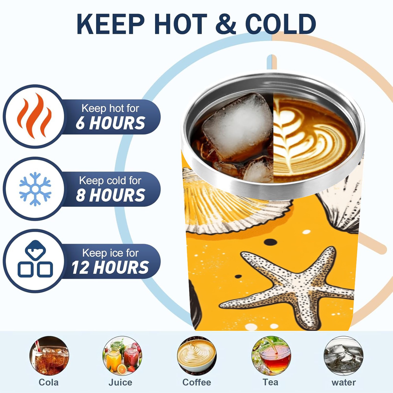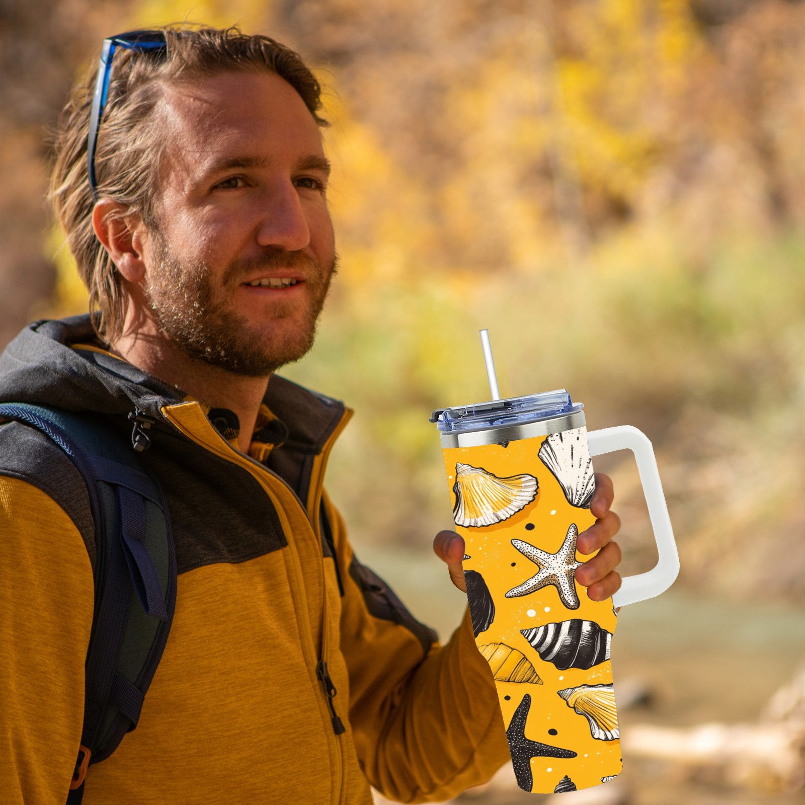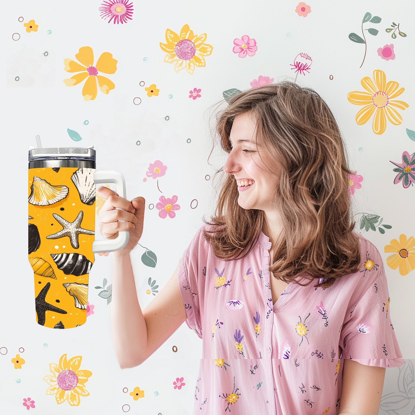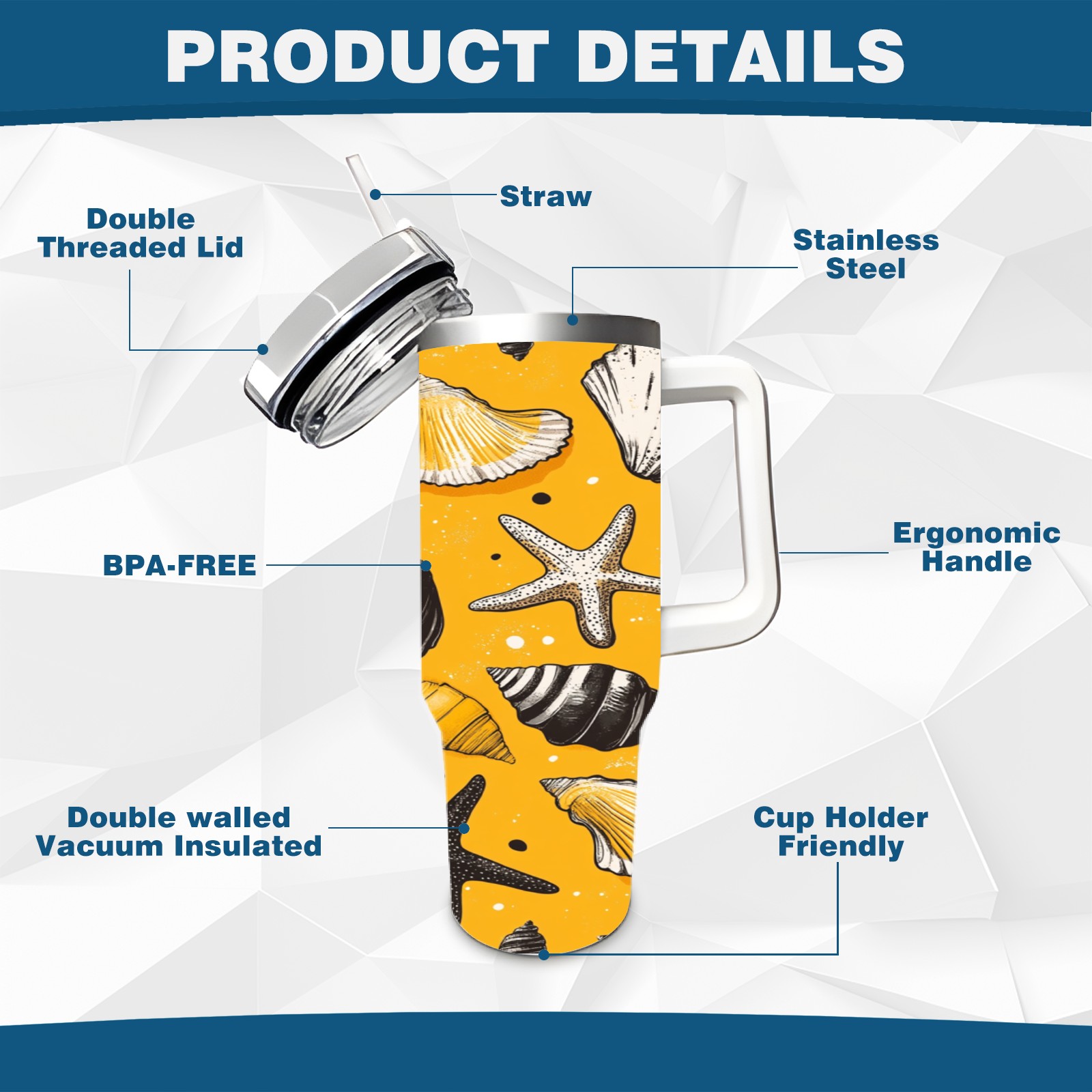 40 унций полностью напечатанный автомобильный стакан Yellow Seashell Pattern(1)