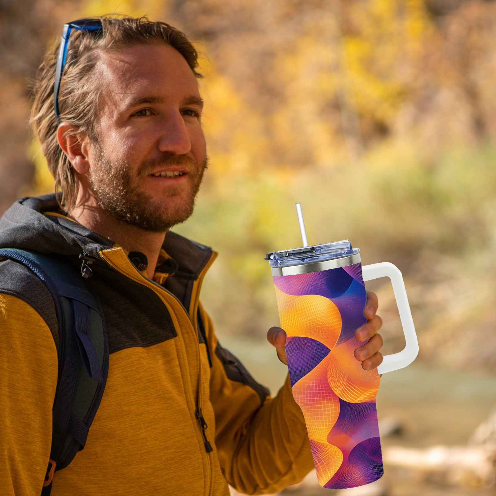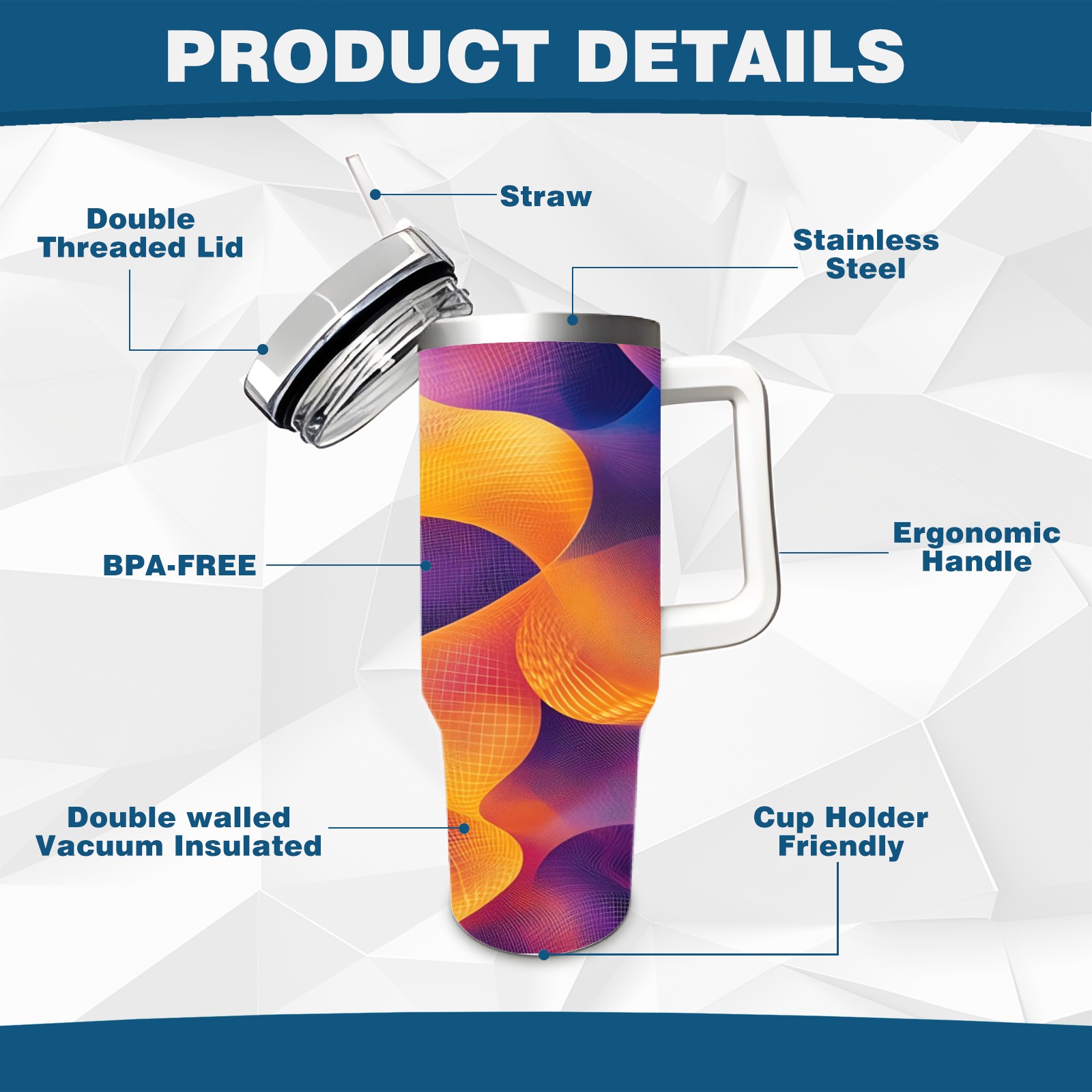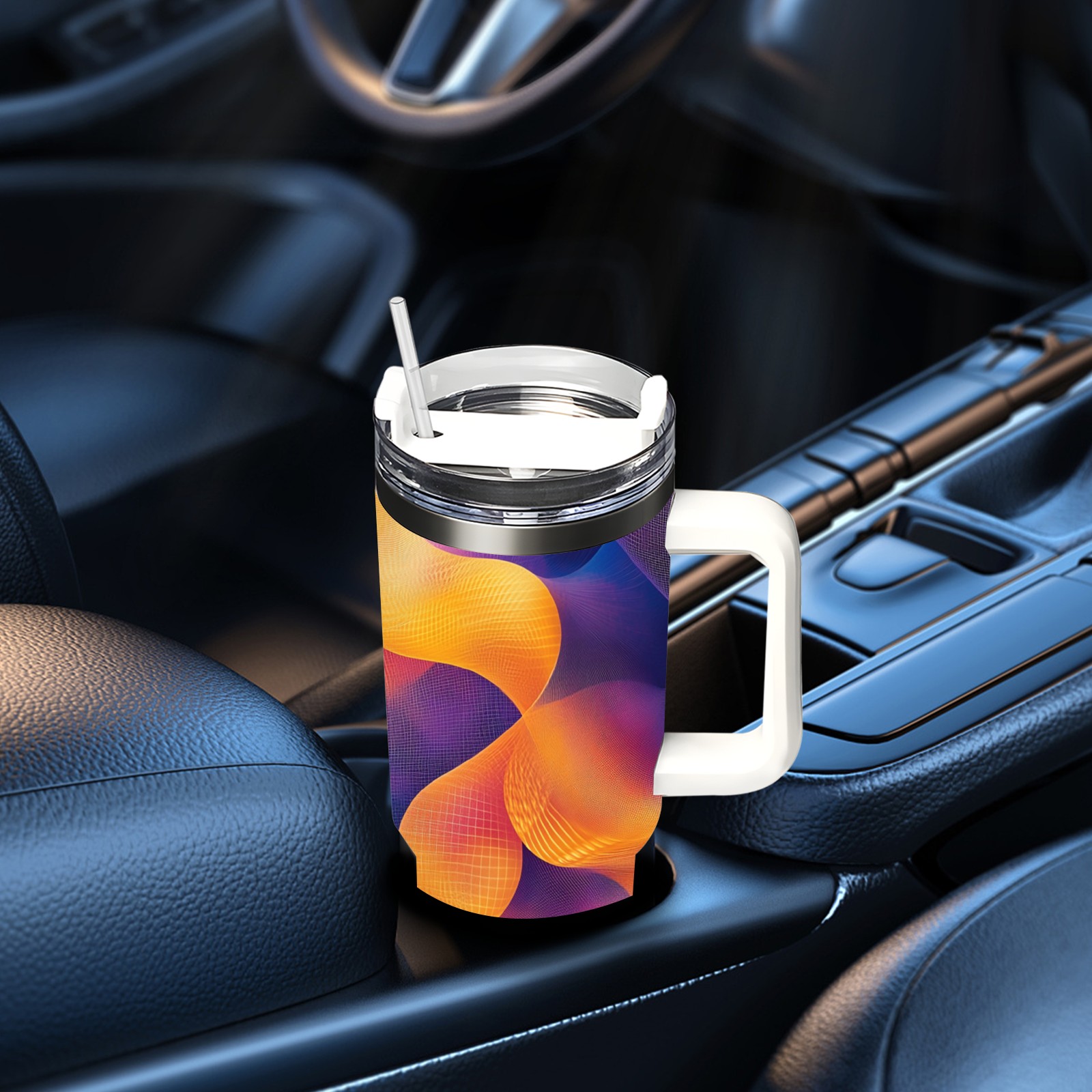 40 унций полностью напечатанный автомобильный стакан Purple Swirling Pattern(1)