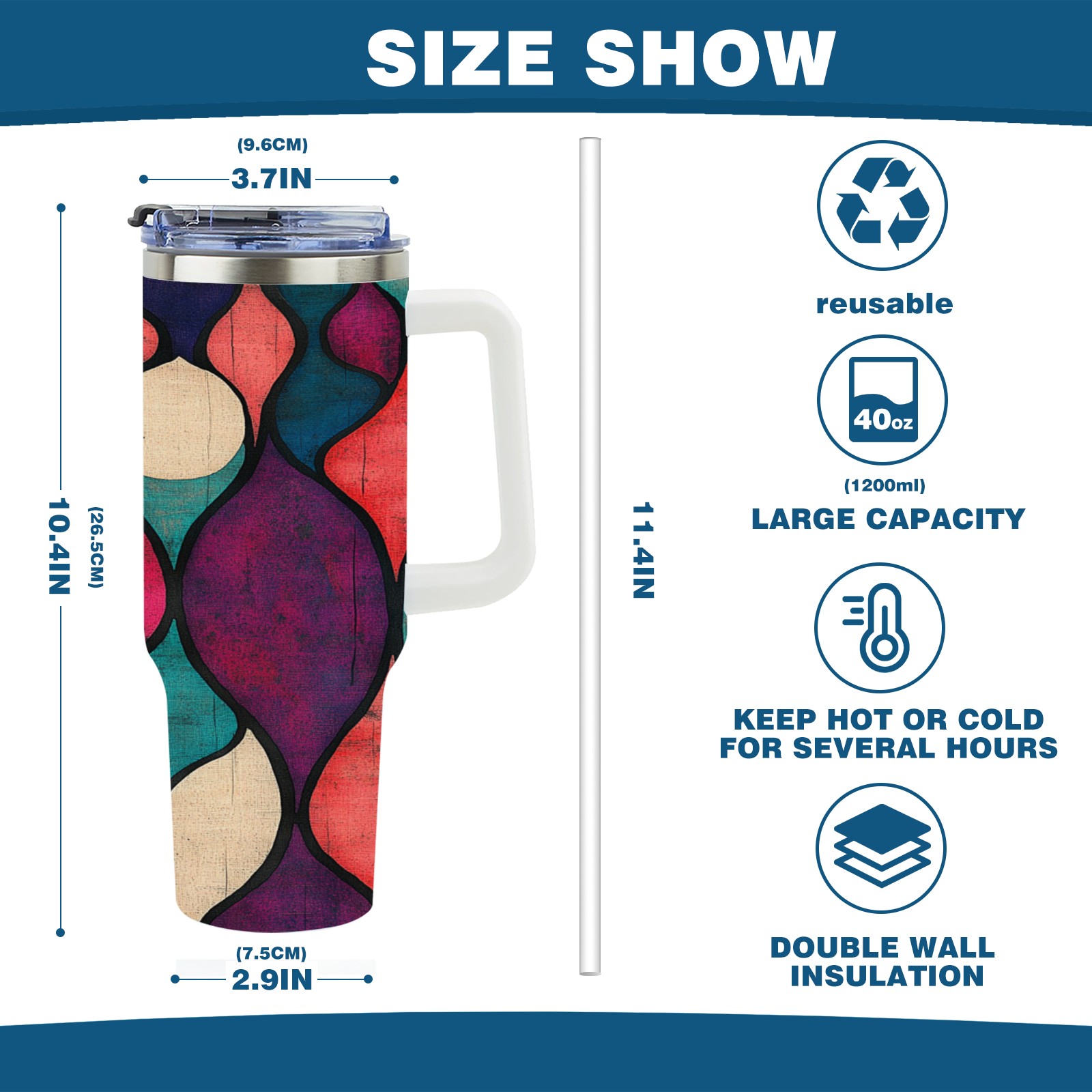 • С большой емкостью 40 унций, он обеспечивает вас гидратацией в течение всего дня, идеально подходит для воды, кофе, сока или других напитков. Эргономичный дизайн идеально вписывается в автомобильные держатели для бутылок, а прочный, герметичный колпачок предотвращает утечки во время передвижения. Путешествие. Антискользящее основание обеспечивает устойчивость, а гладкие поверхности делают уборку легкой — просто мойте вручную или кладите в посудомоечную машину (рекомендуется верхний поддон).