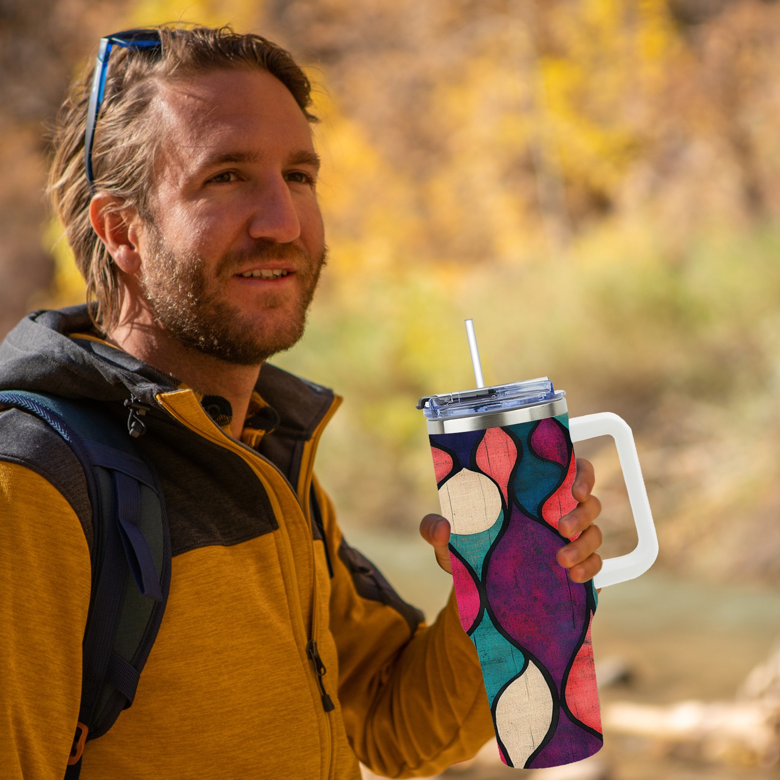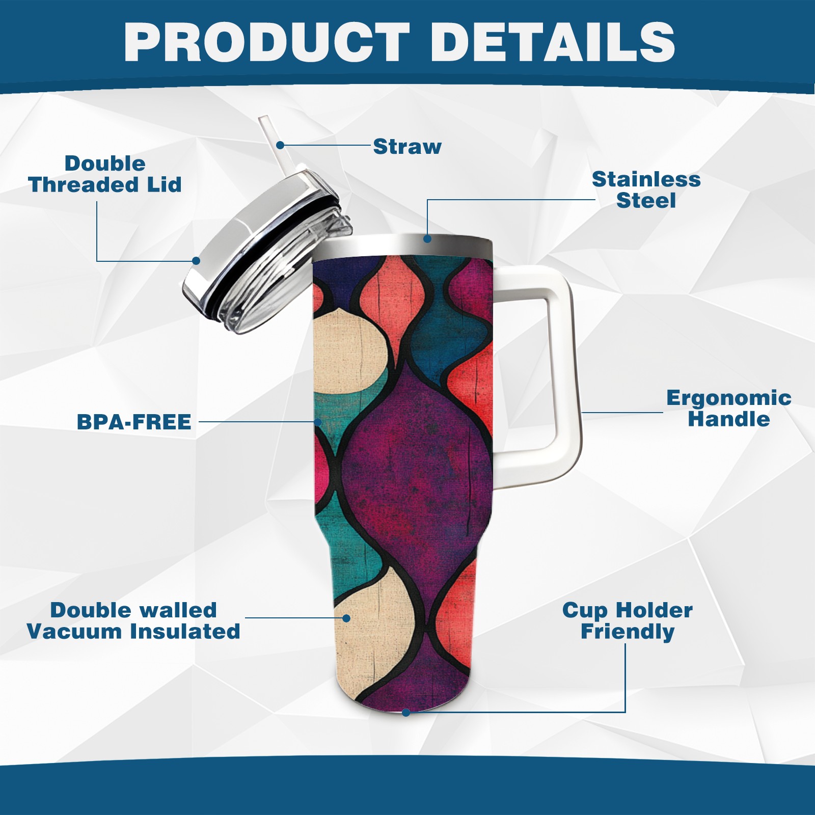 40 унций полностью напечатанный автомобильный стакан Purple Circle Pattern(1)