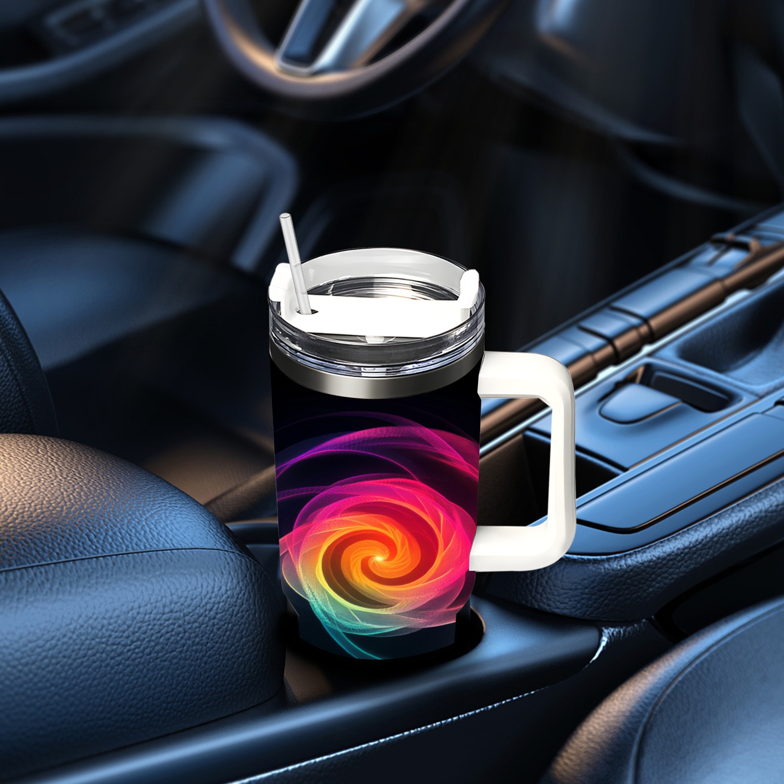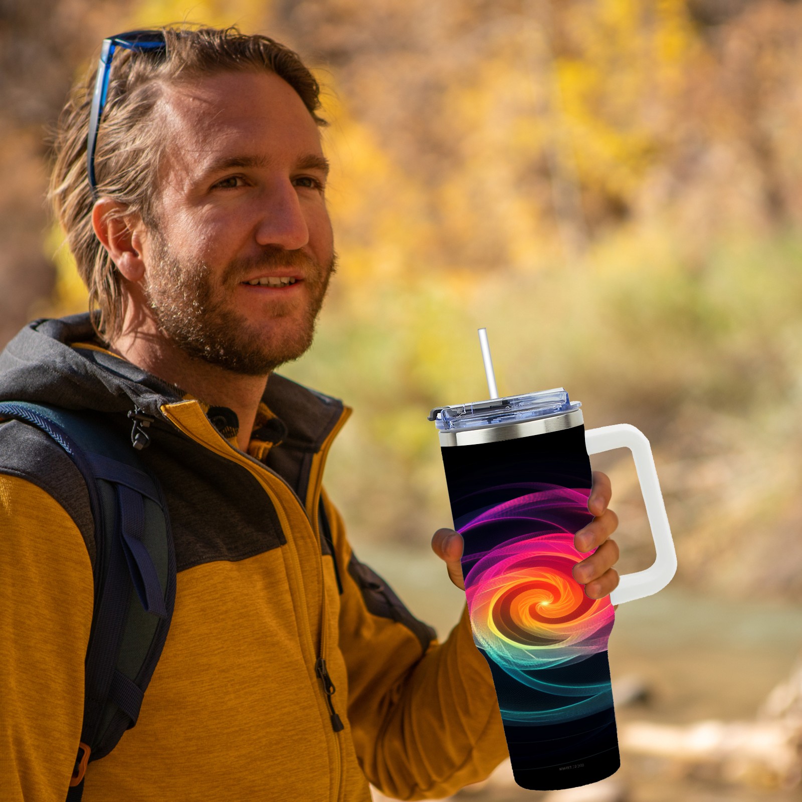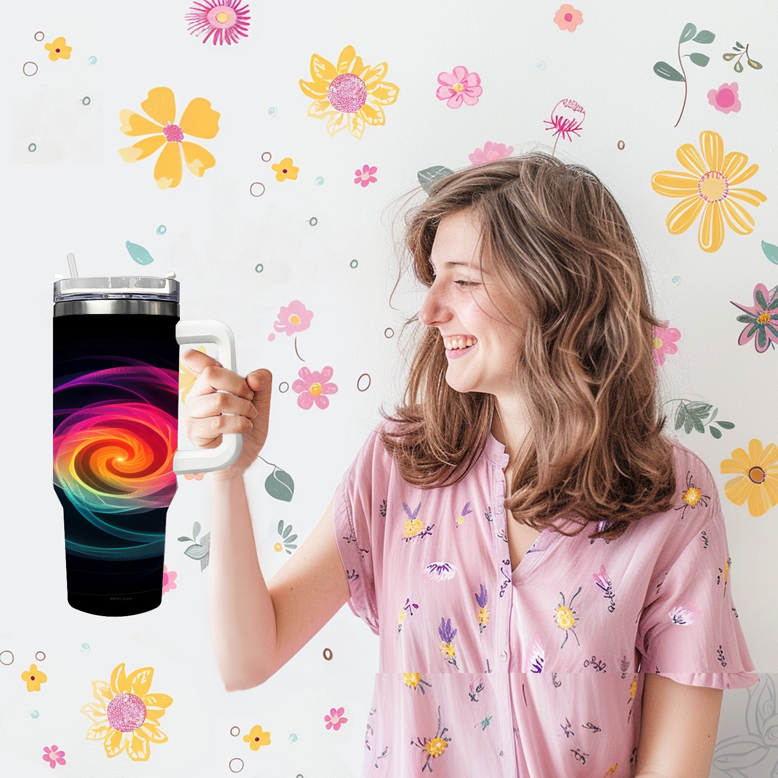 40 унций полностью напечатанный автомобильный стакан Pink Yellow Swirling Pattern(2)