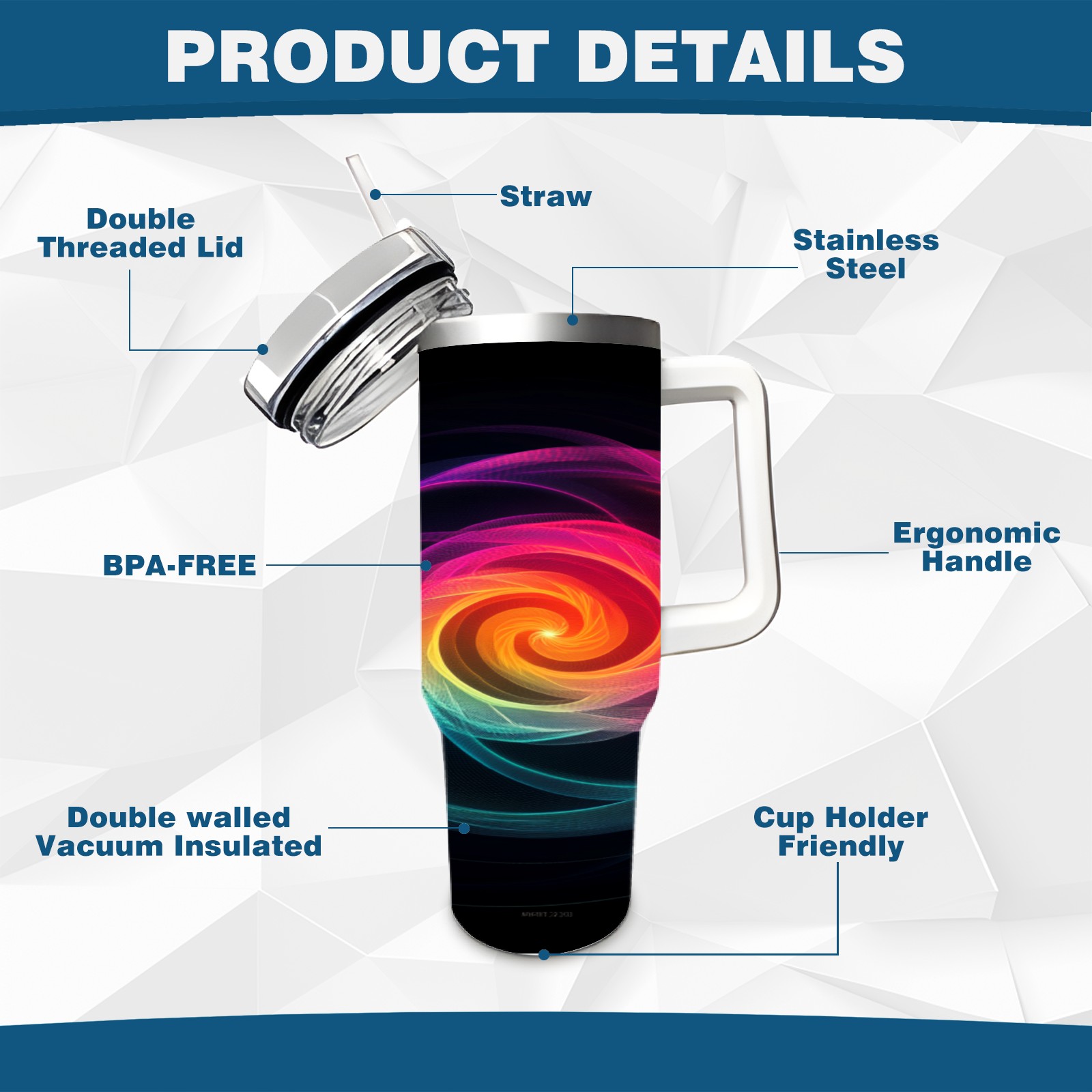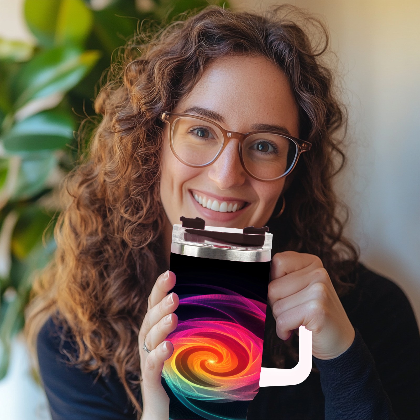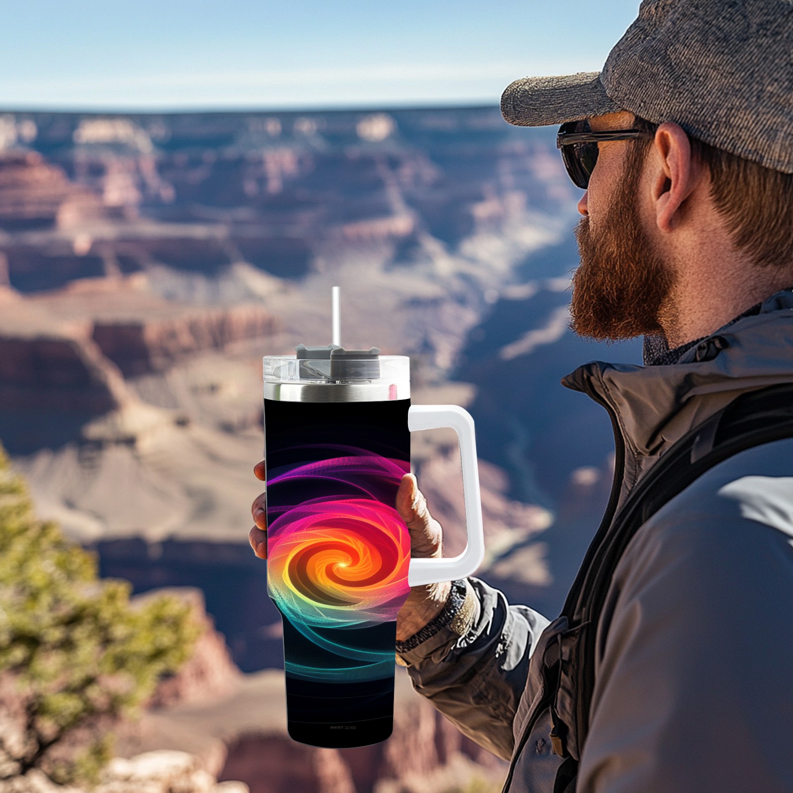 40 унций полностью напечатанный автомобильный стакан Pink Yellow Swirling Pattern(2)
