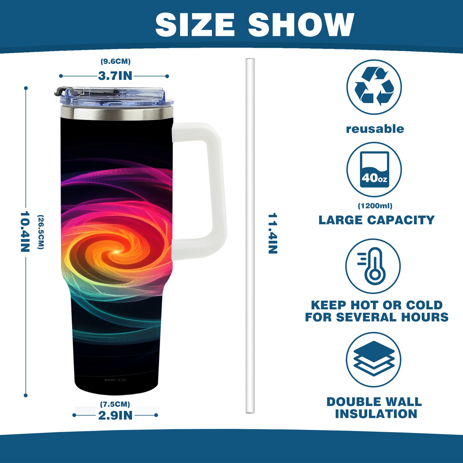 • С большой емкостью 40 унций, он обеспечивает вас гидратацией в течение всего дня, идеально подходит для воды, кофе, сока или других напитков. Эргономичный дизайн идеально вписывается в автомобильные держатели для бутылок, а прочный, герметичный колпачок предотвращает утечки во время передвижения. Путешествие. Антискользящее основание обеспечивает устойчивость, а гладкие поверхности делают уборку легкой — просто мойте вручную или кладите в посудомоечную машину (рекомендуется верхний поддон).