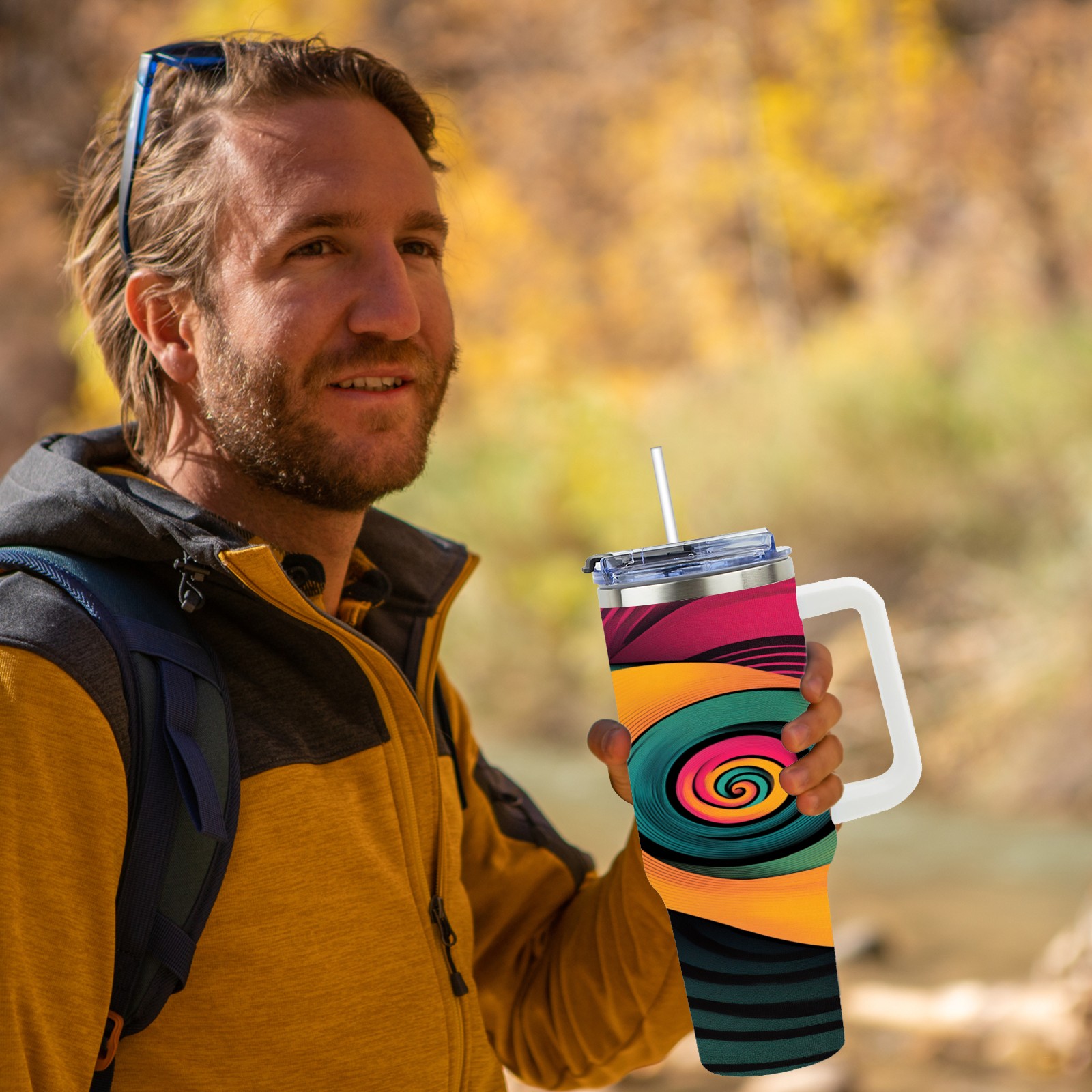 40 унций полностью напечатанный автомобильный стакан Pink Yellow Swirling Pattern(1)