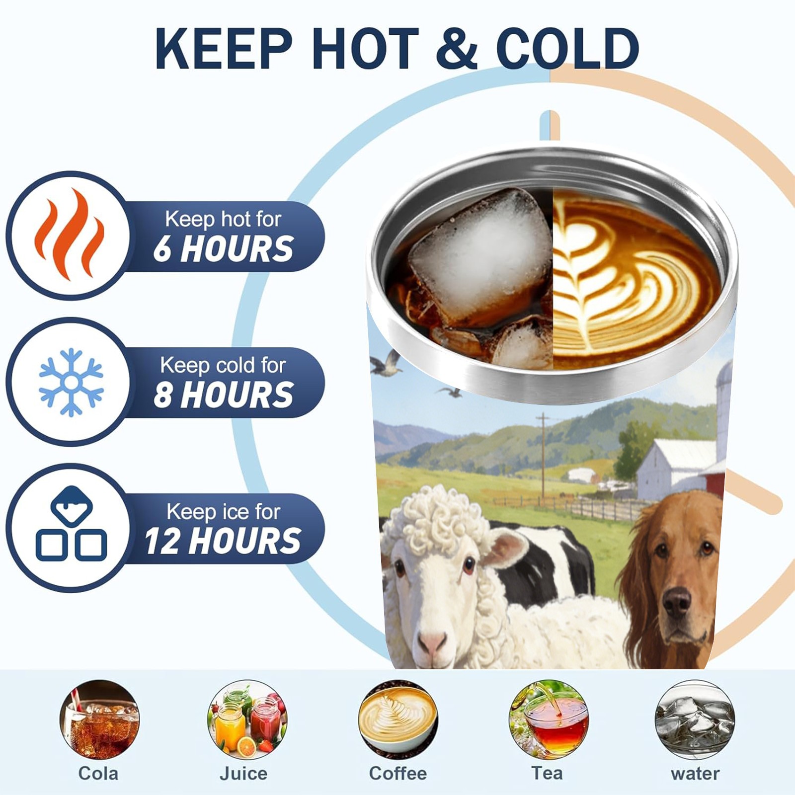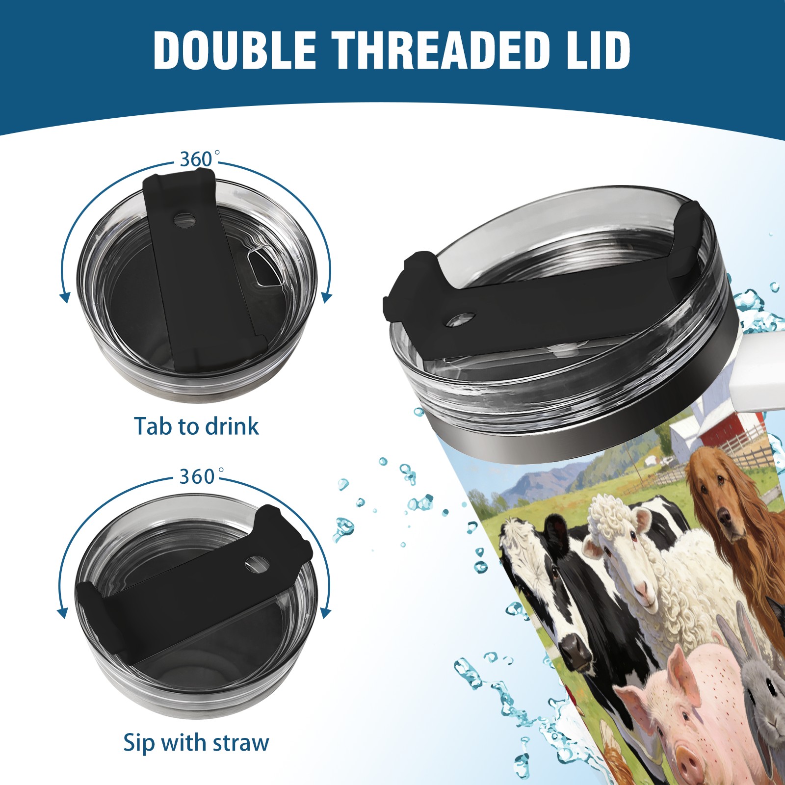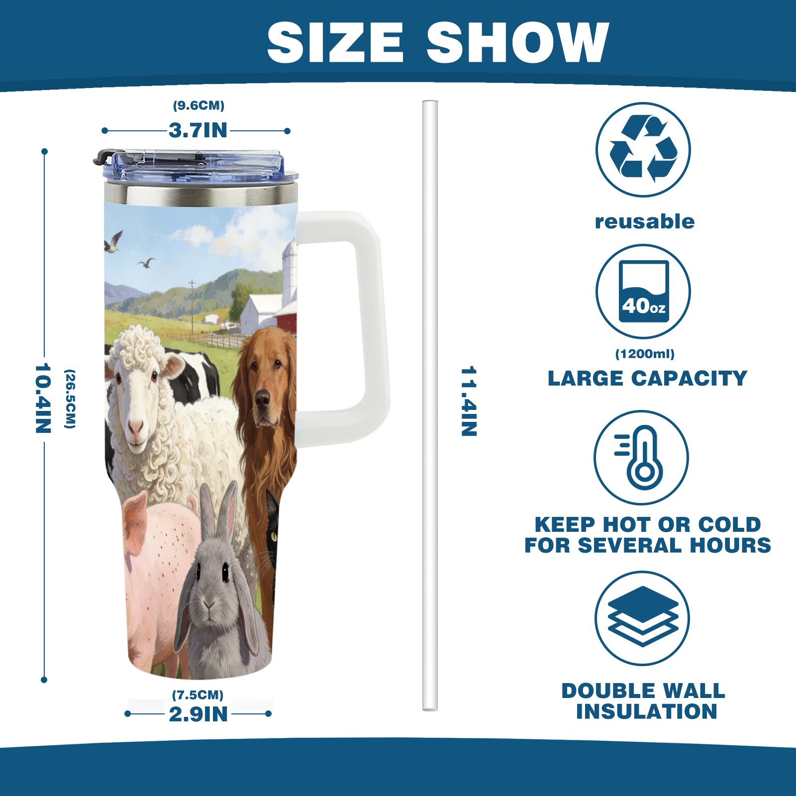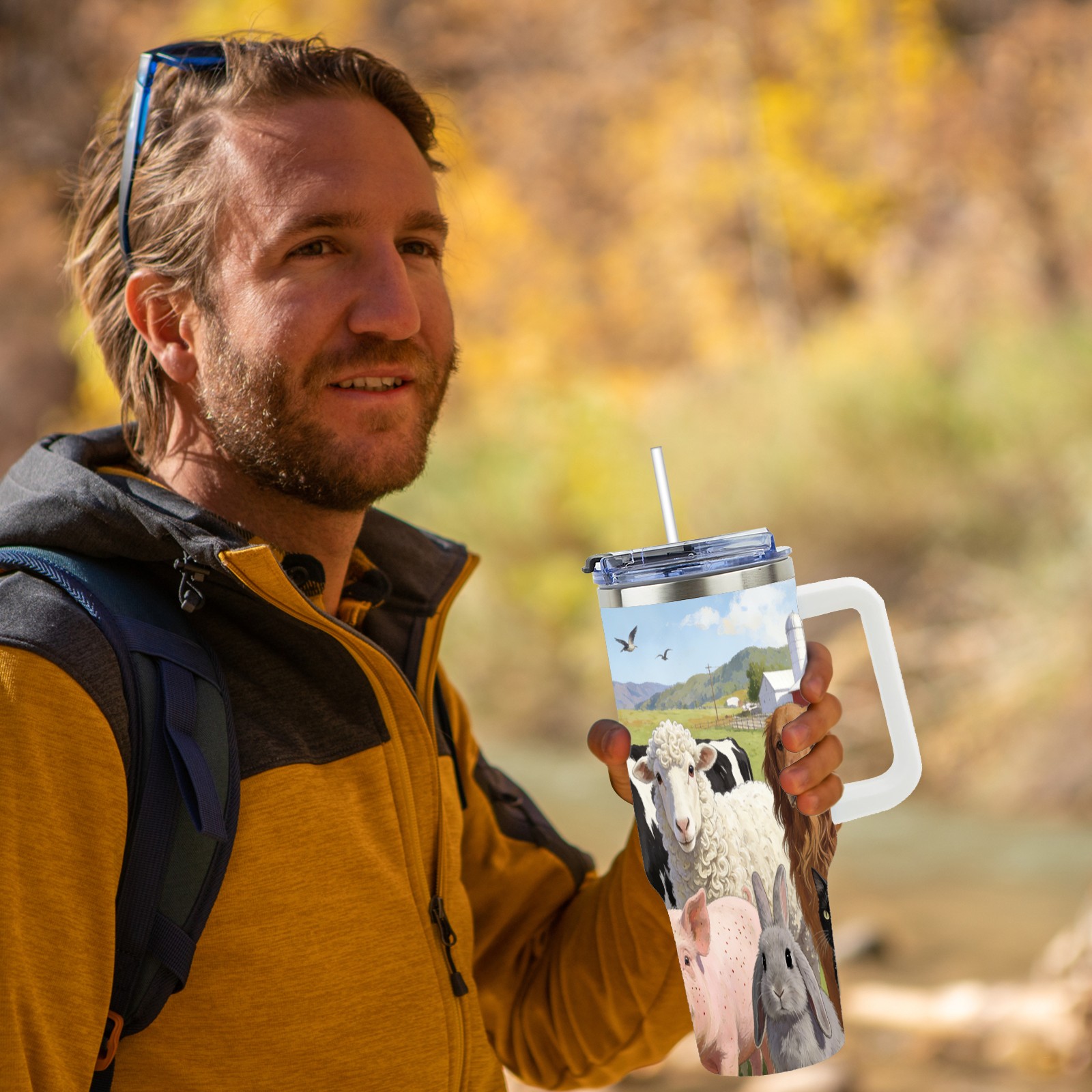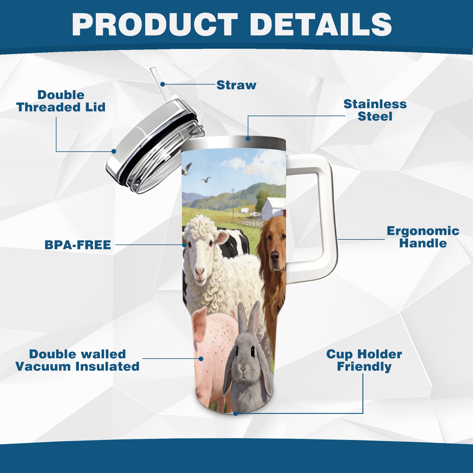 40 унций полностью напечатанный автомобильный стакан Farm Animal Collection 3