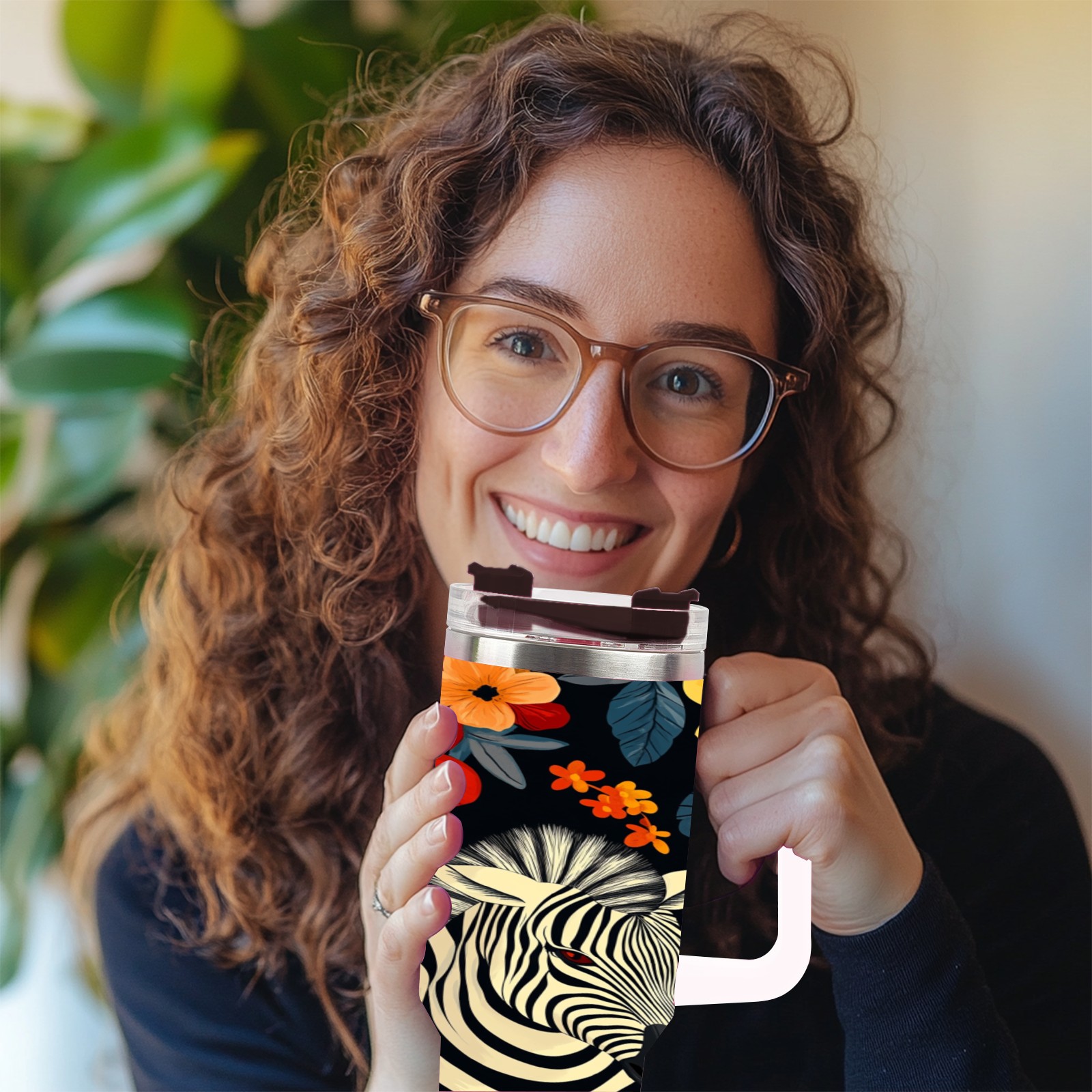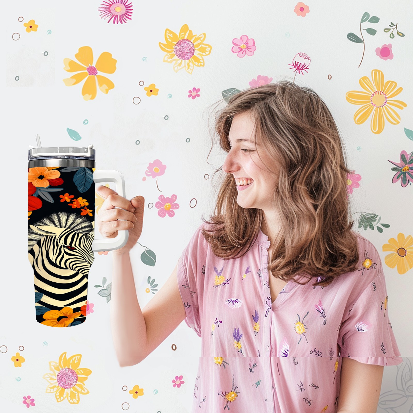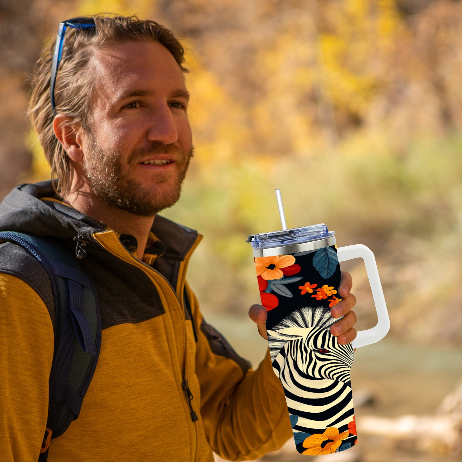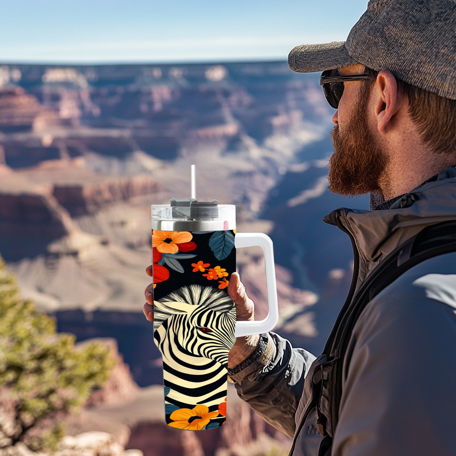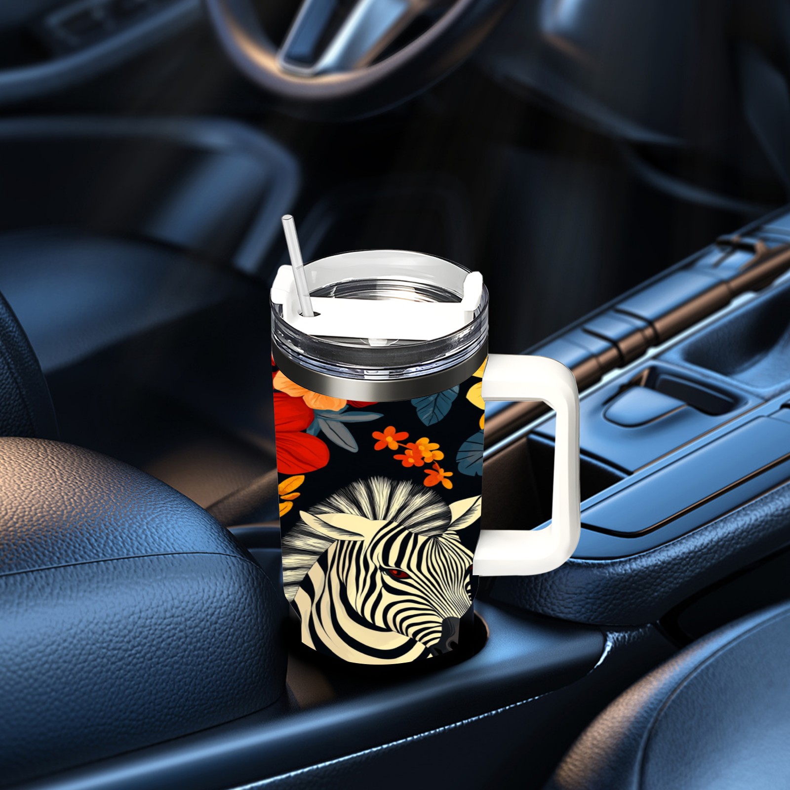 40 унций полностью напечатанный автомобильный стакан Flower Horse Pattern(1)