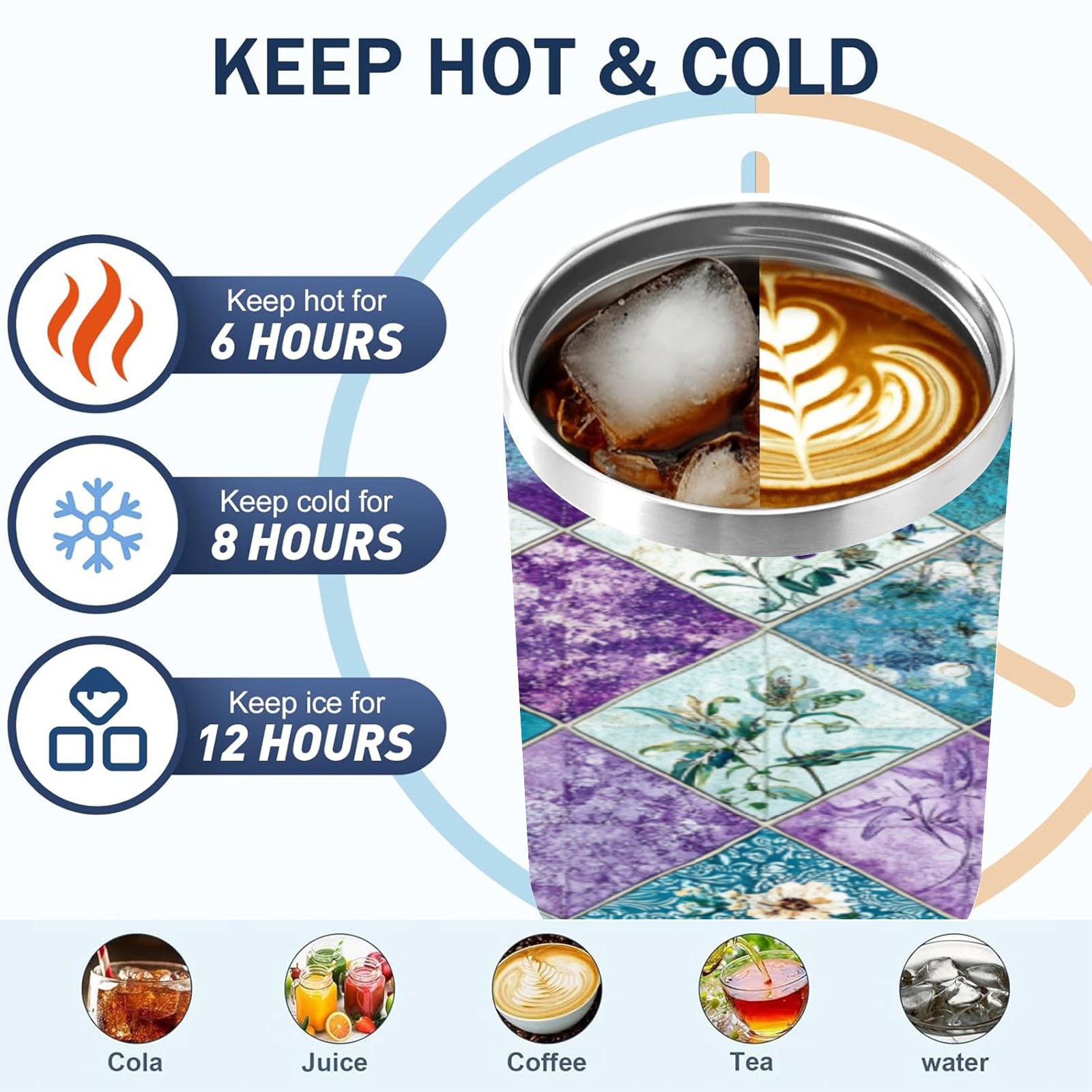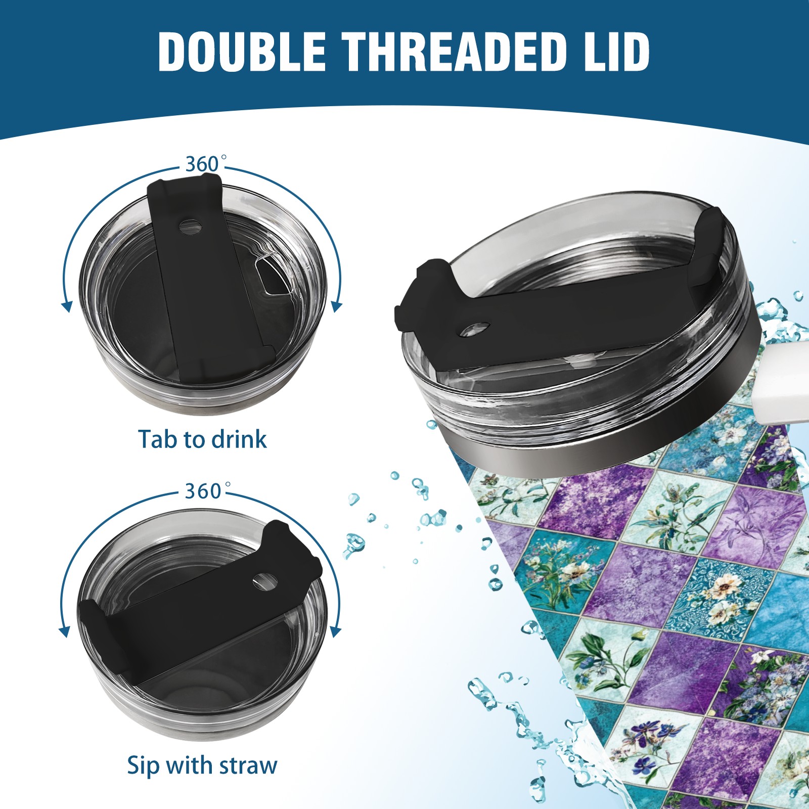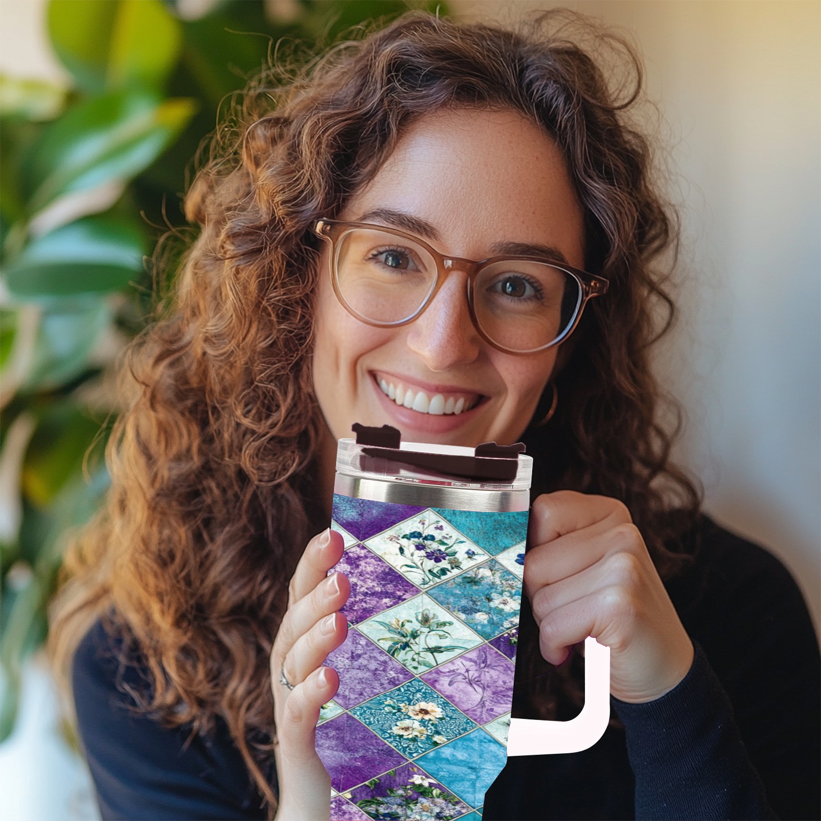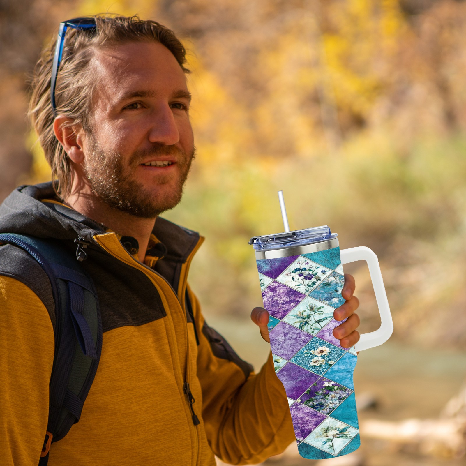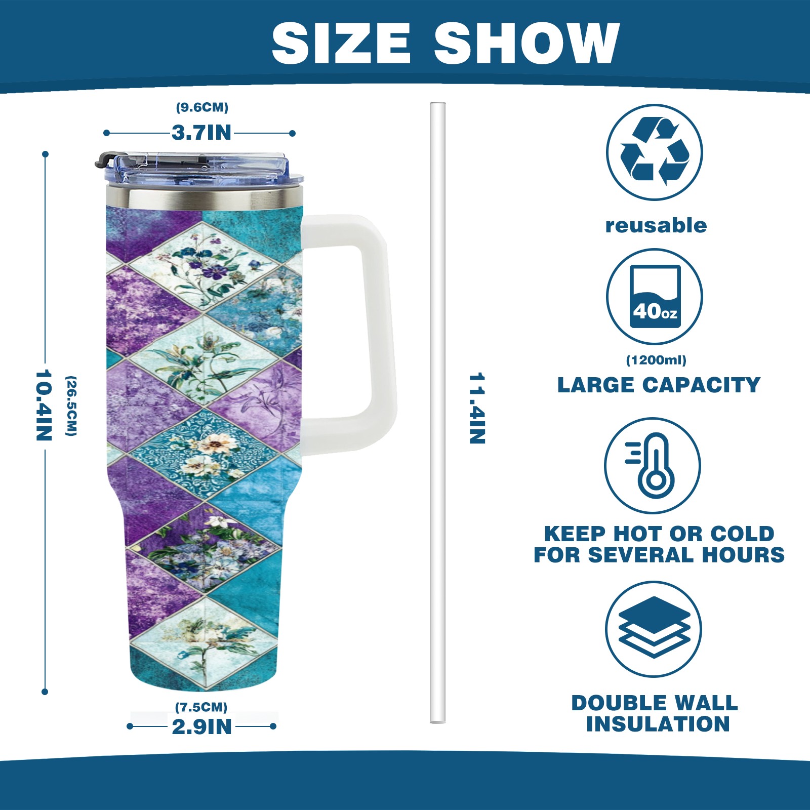 40 унций полностью напечатанный автомобильный стакан Checkered Floral Pattern