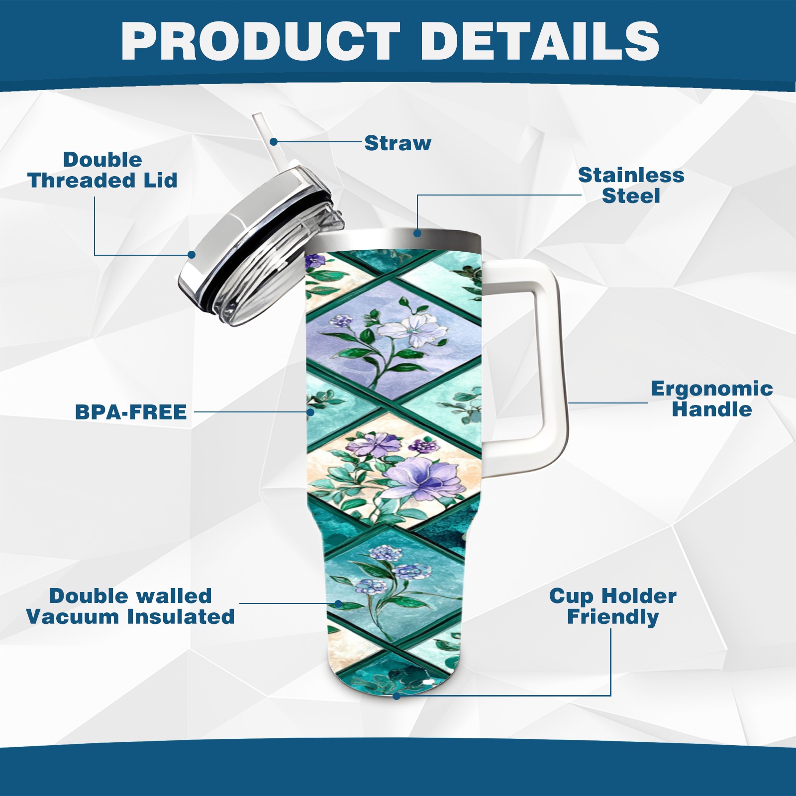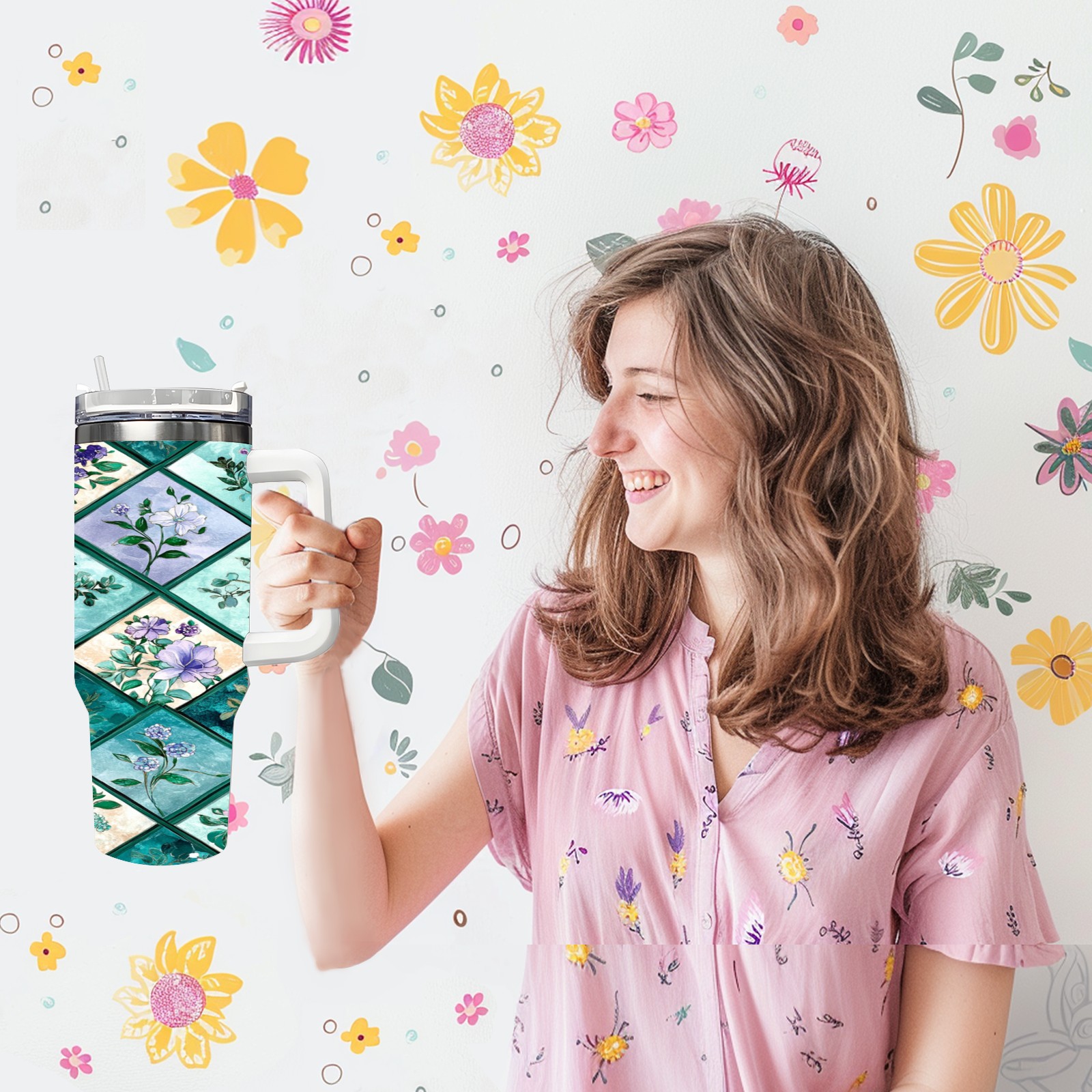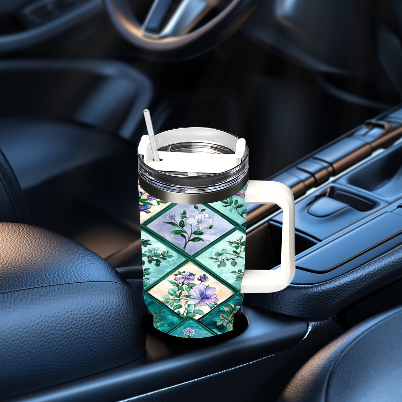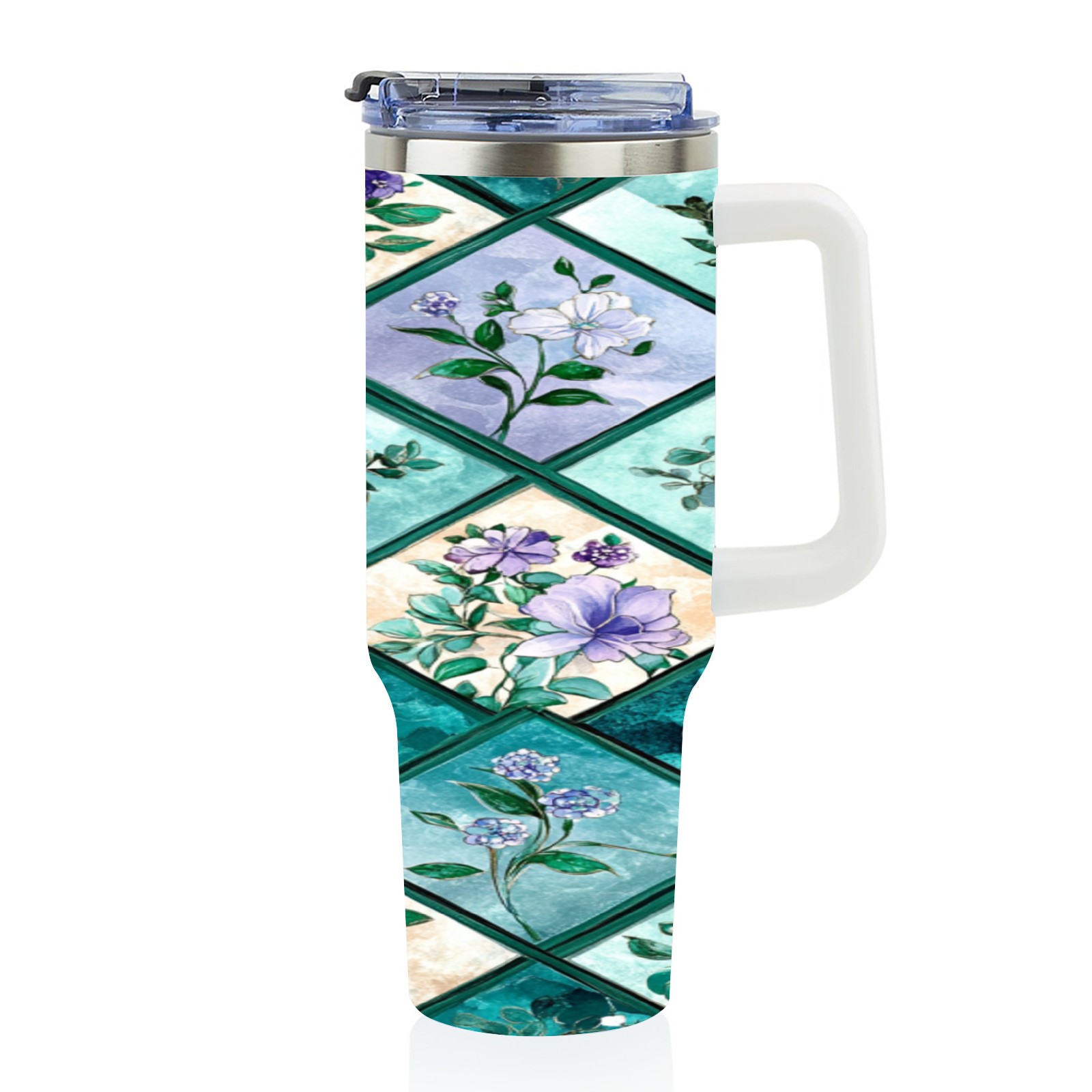 40 унций полностью напечатанный автомобильный стакан Checkered Floral Pattern(3)