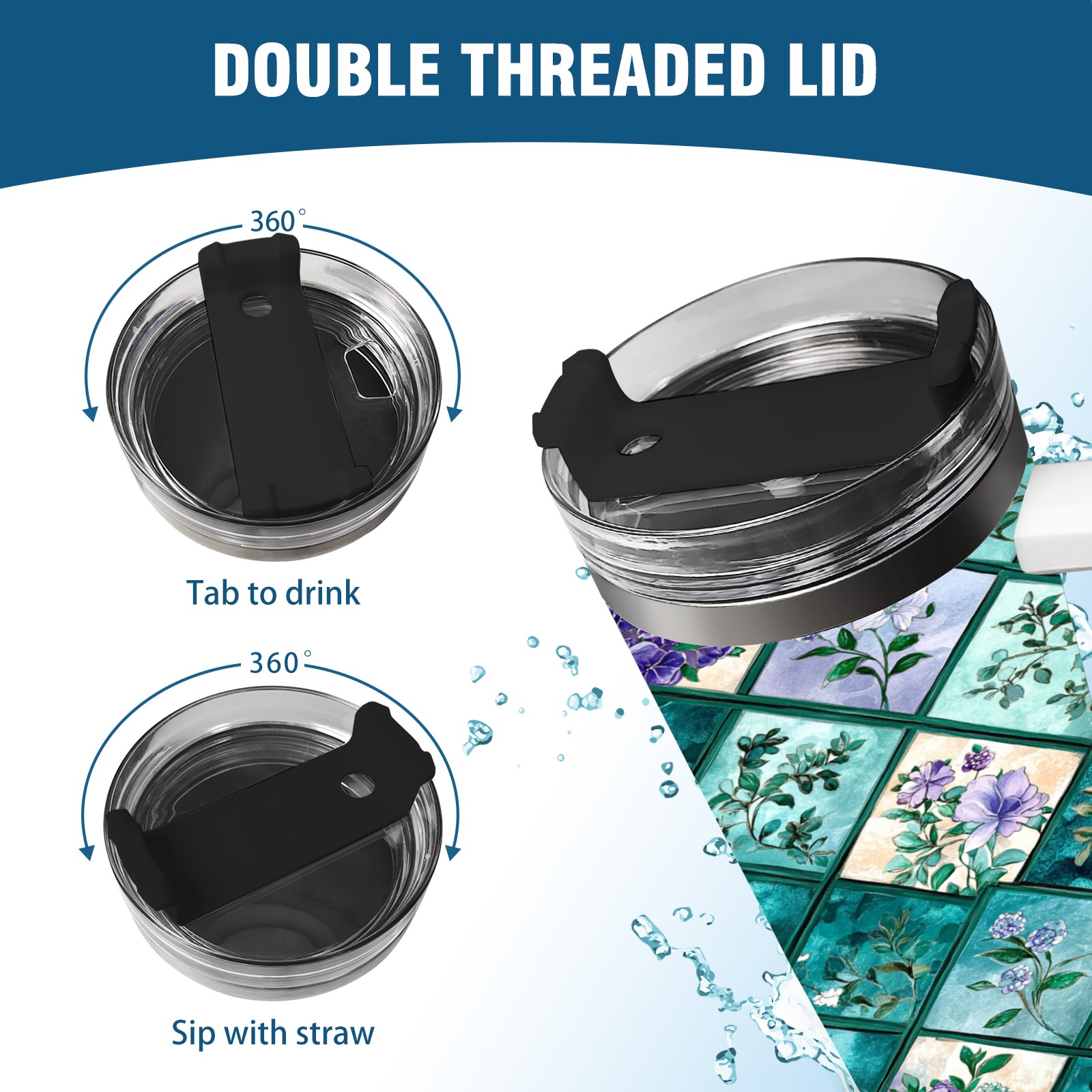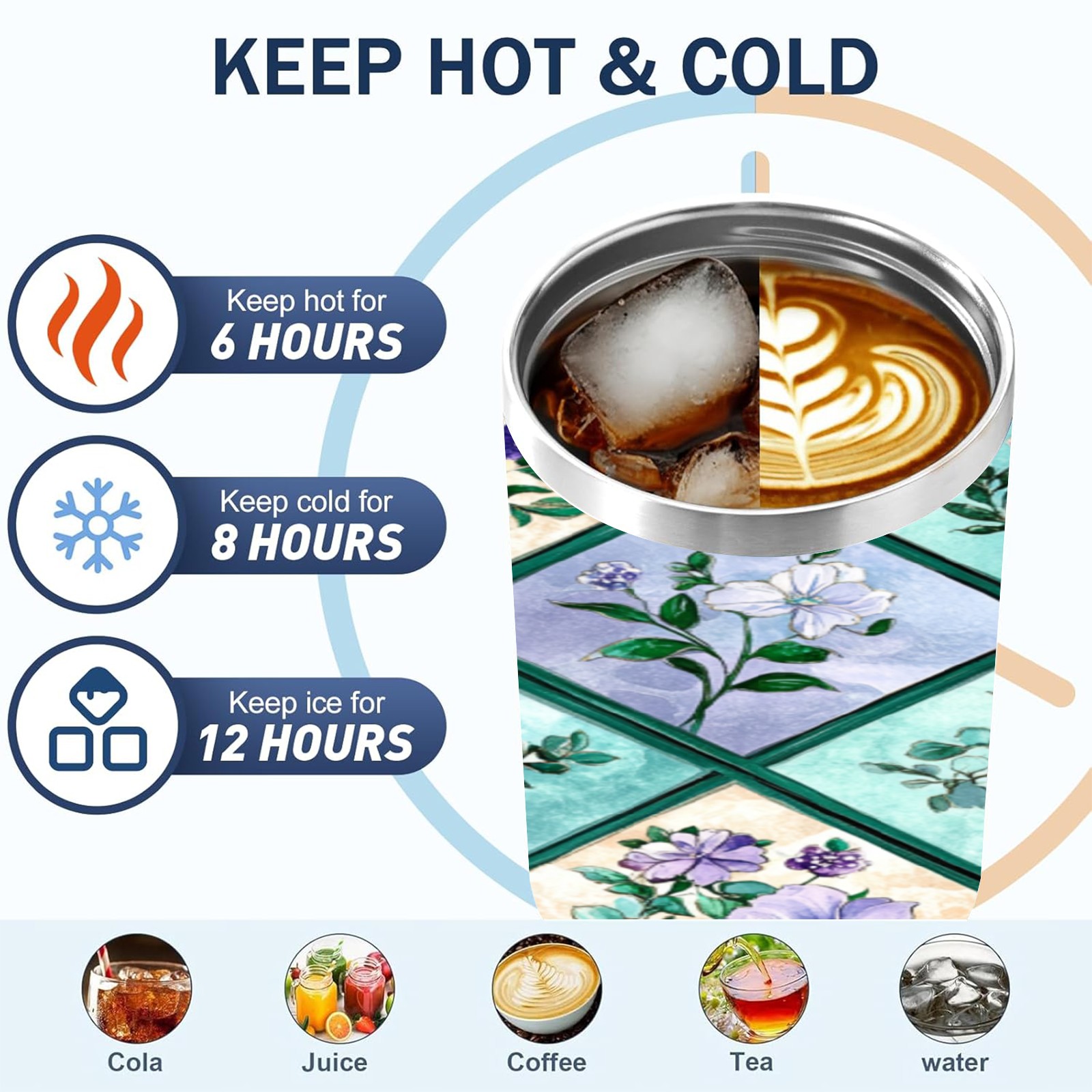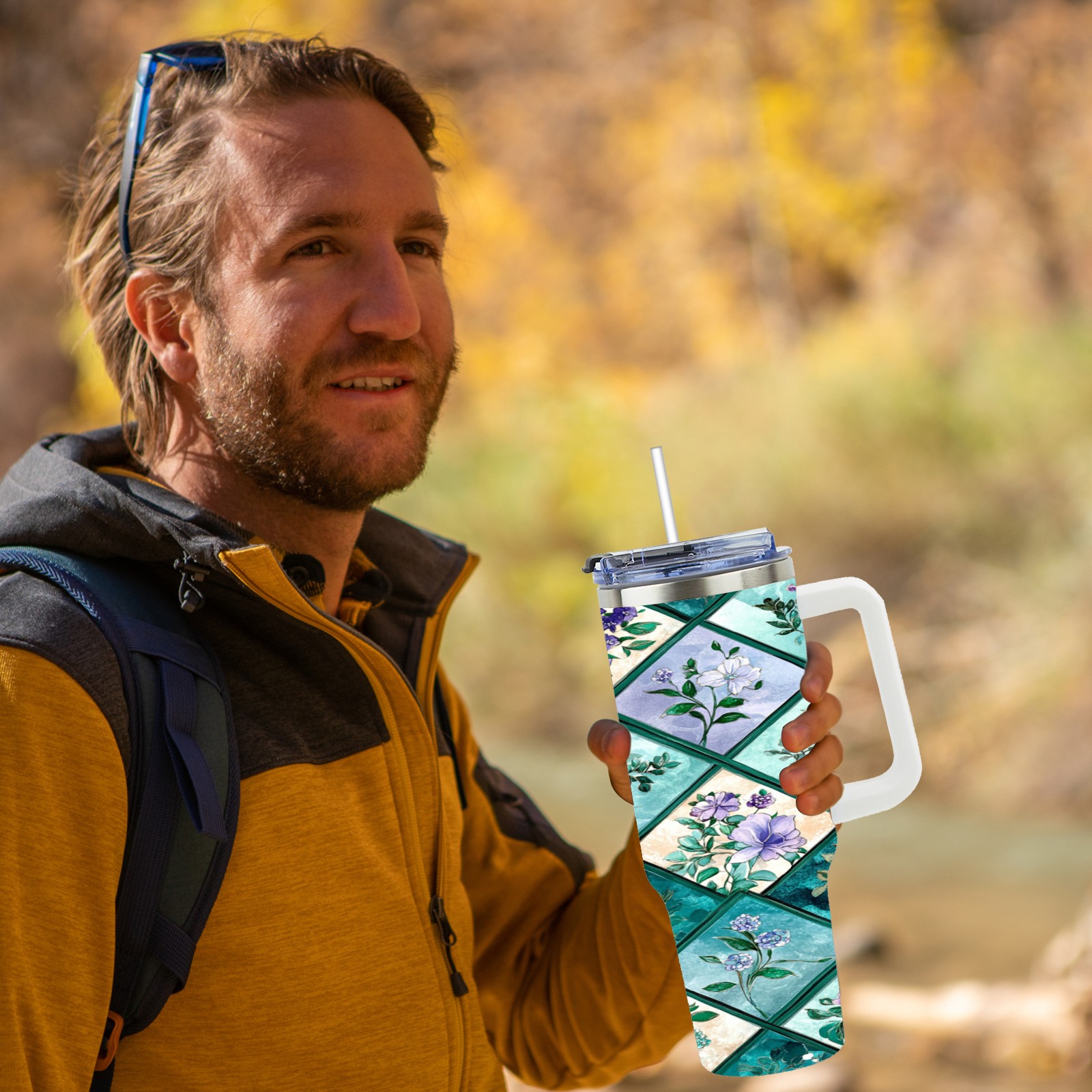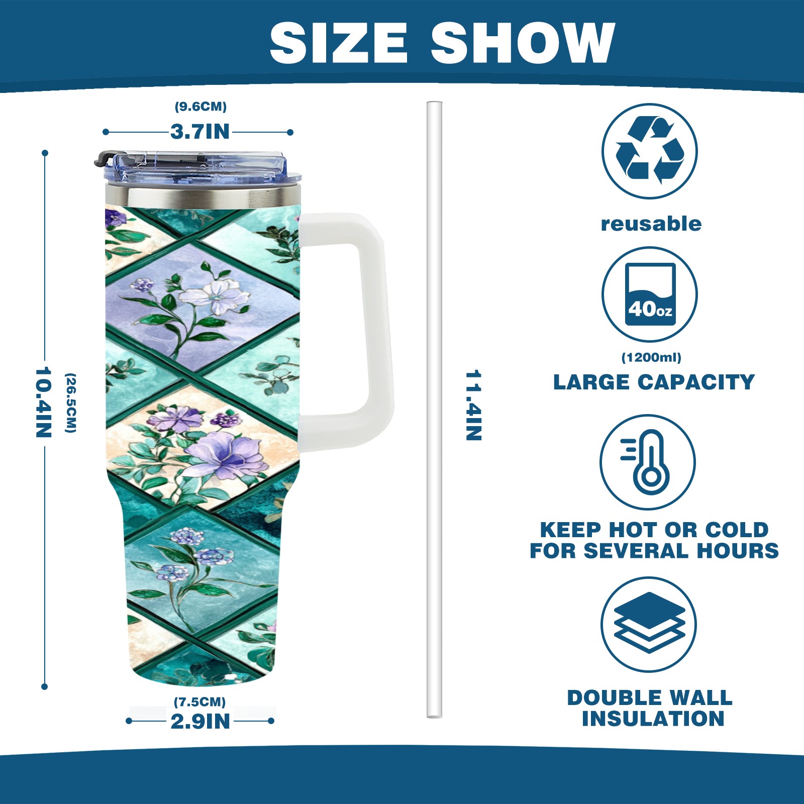 40 унций полностью напечатанный автомобильный стакан Checkered Floral Pattern(3)