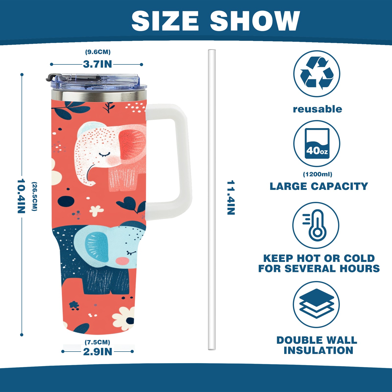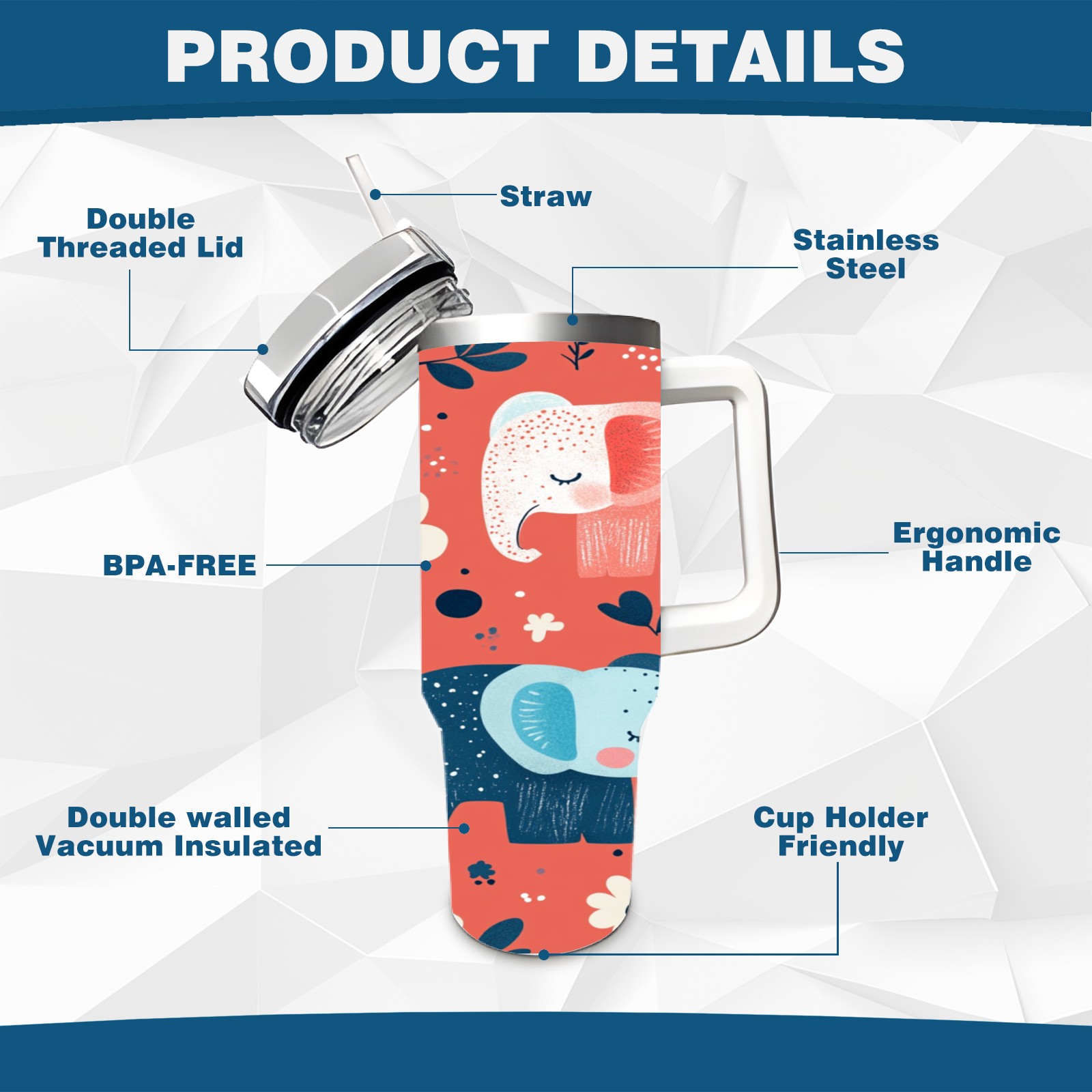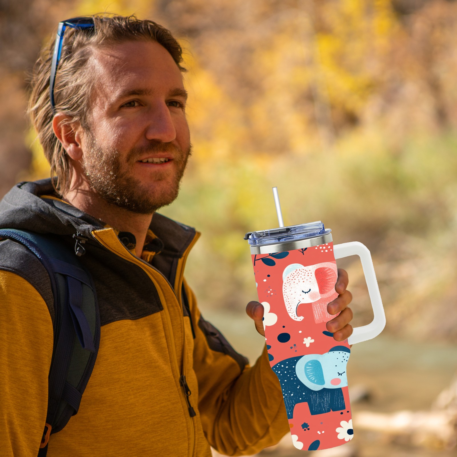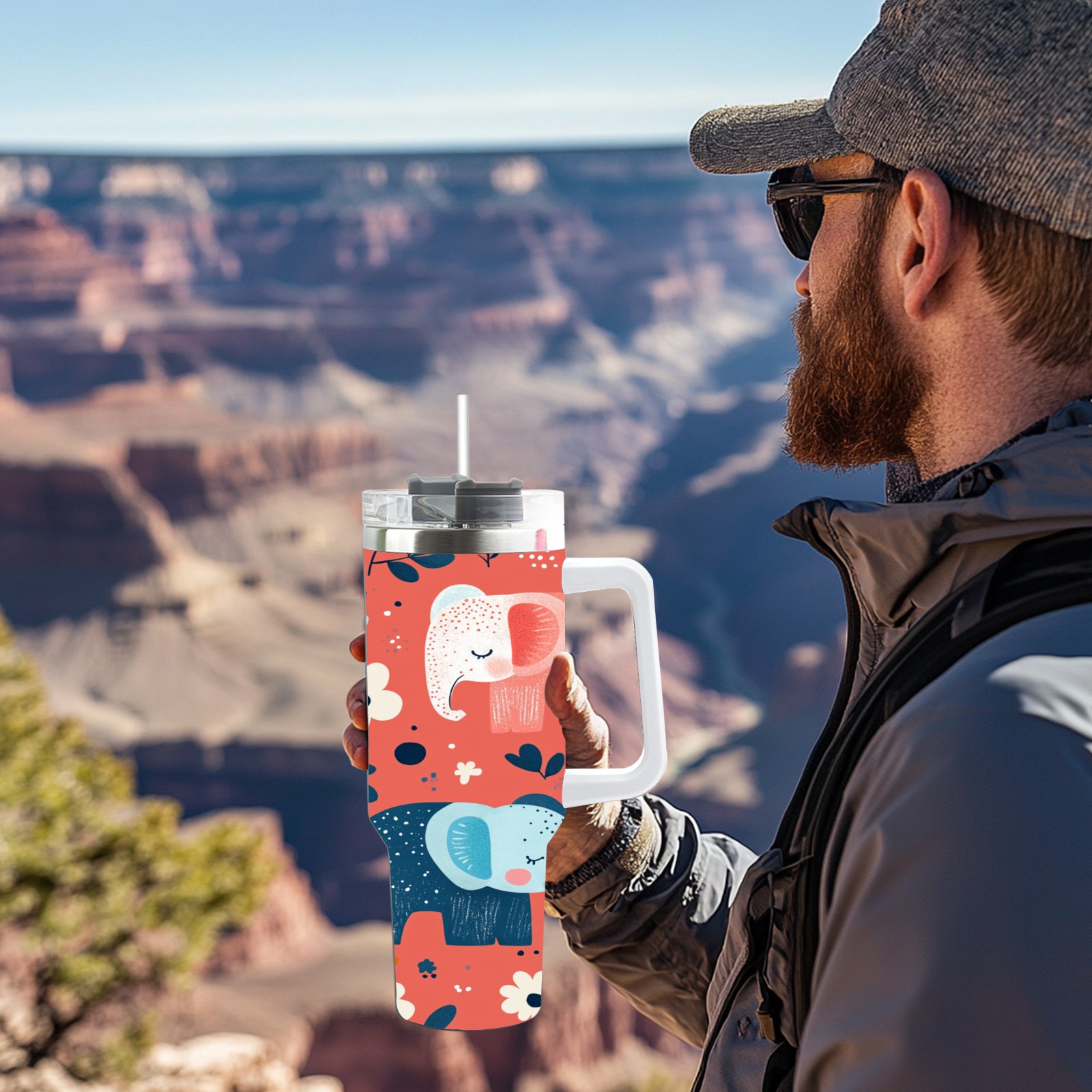 40 унций полностью напечатанный автомобильный стакан Cartoon Elephant Pattern(1)