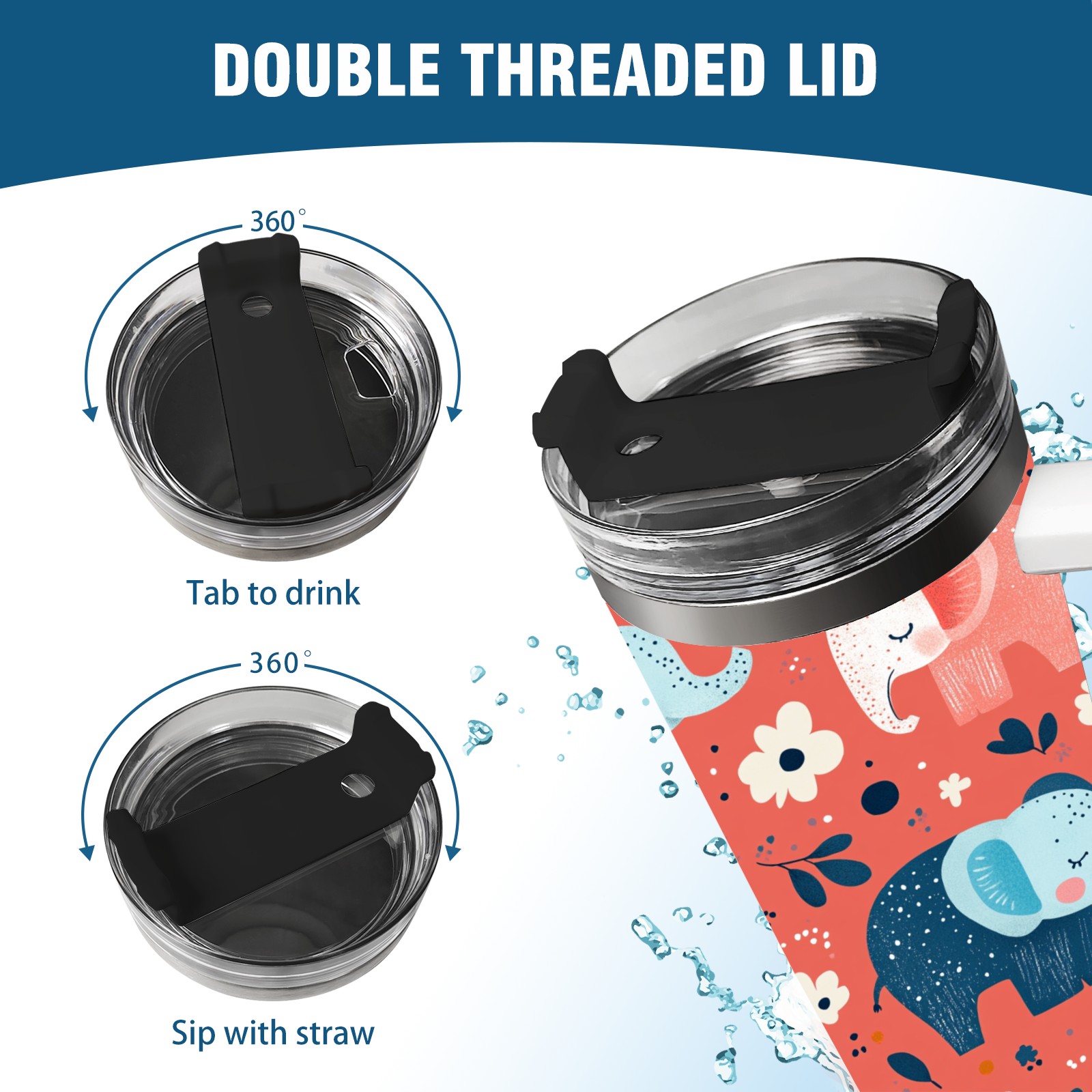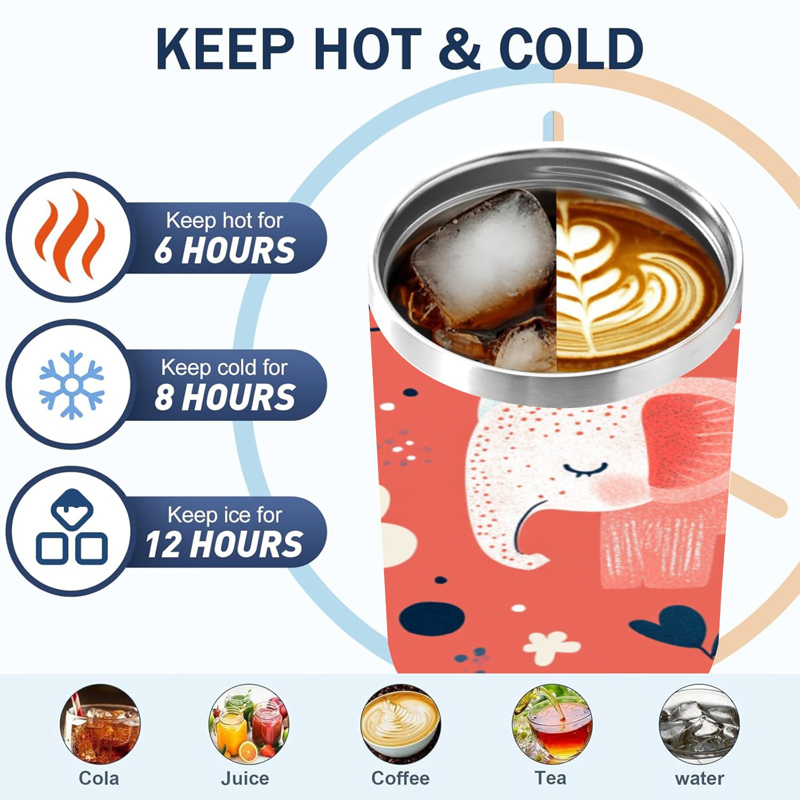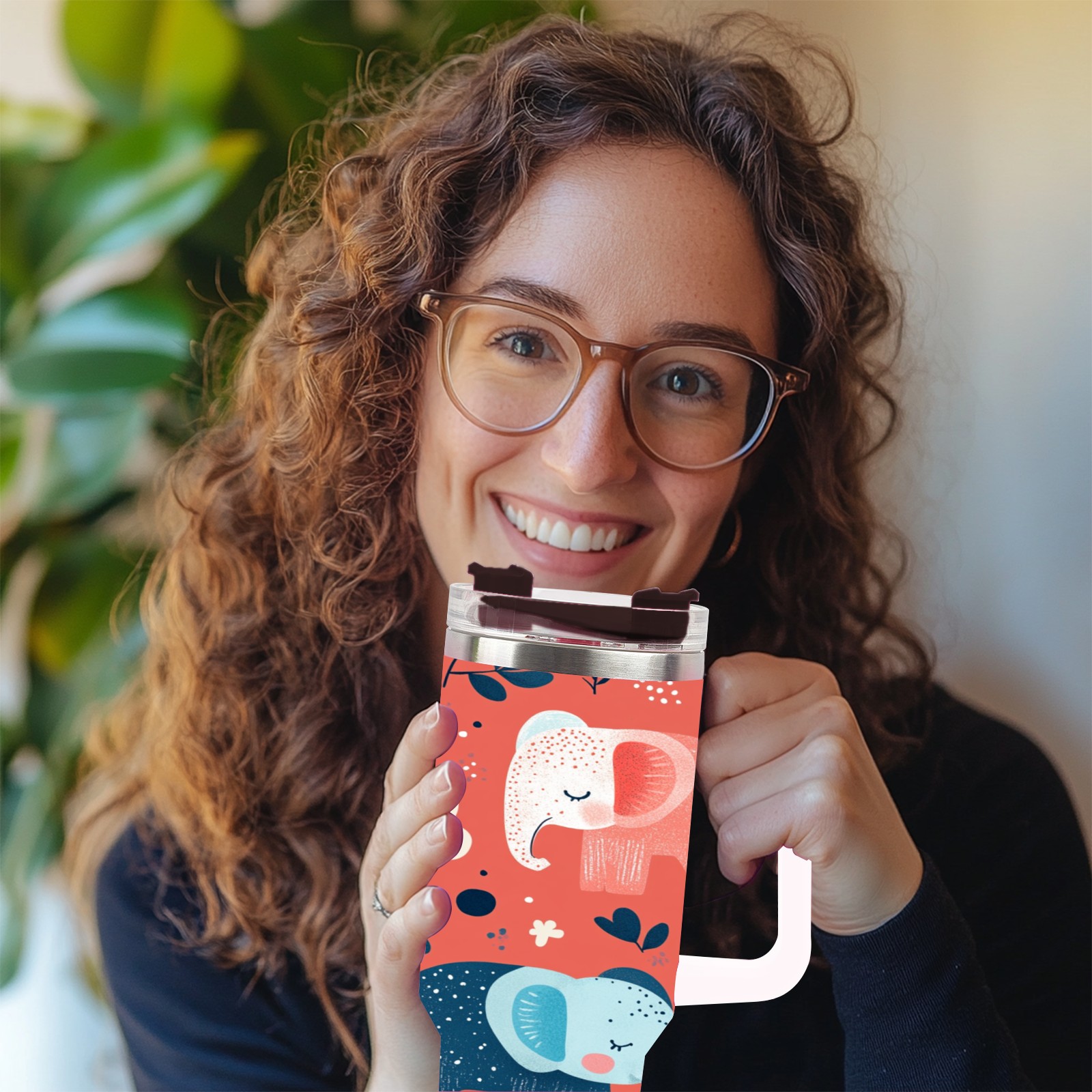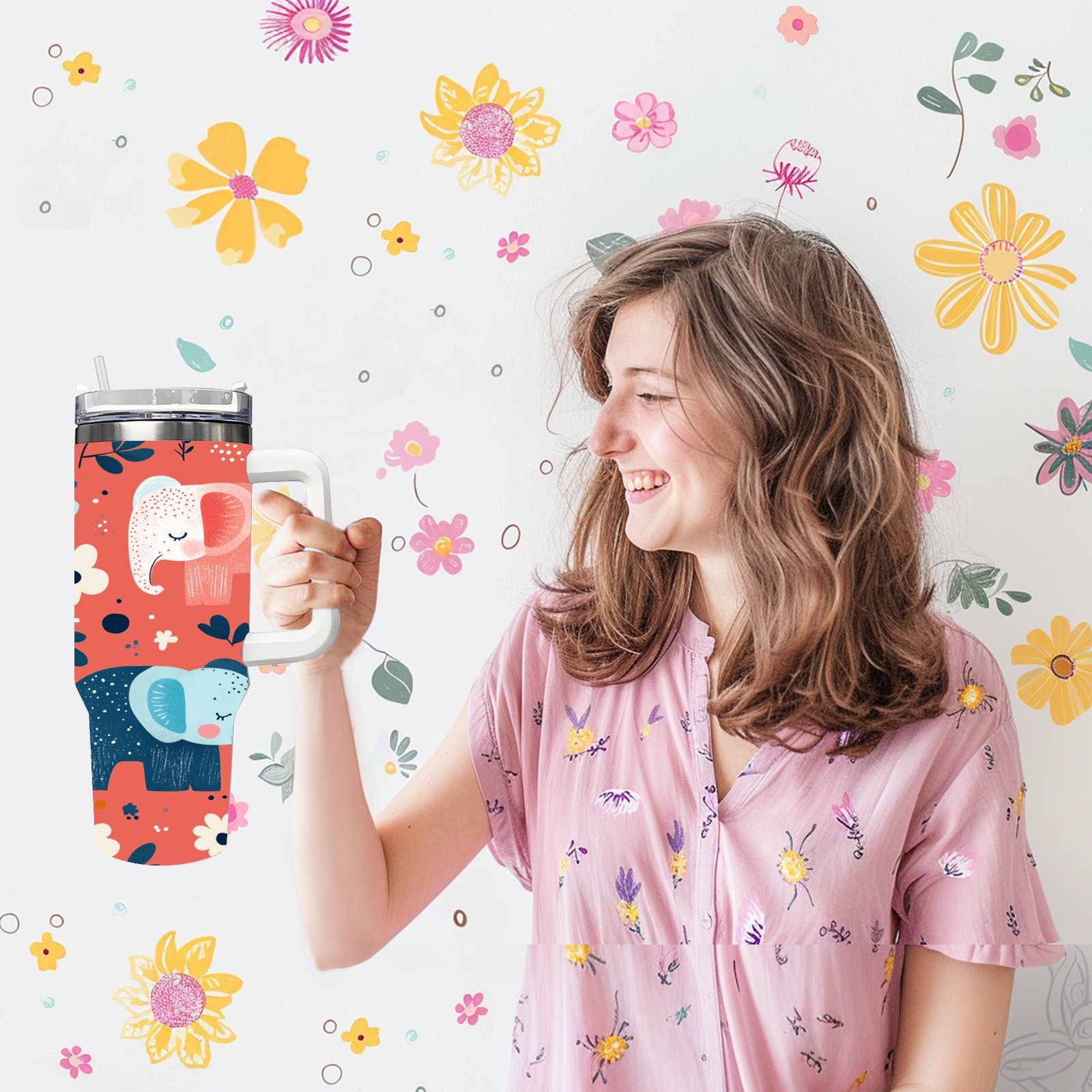 40 унций полностью напечатанный автомобильный стакан Cartoon Elephant Pattern(1)
