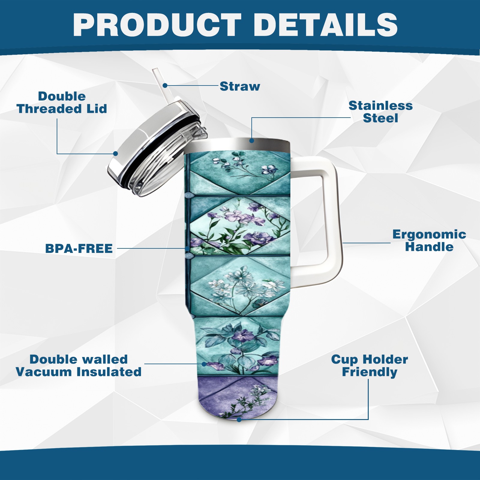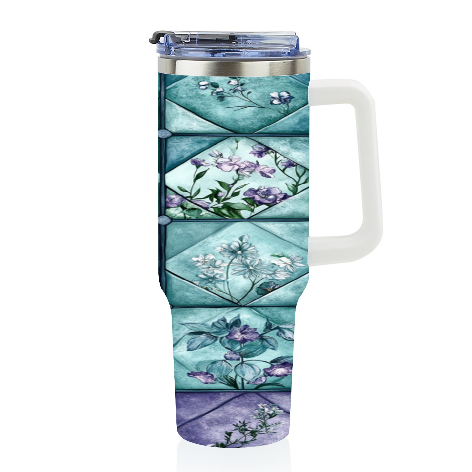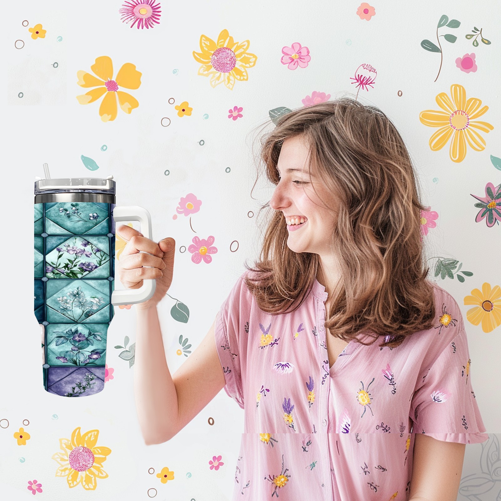 40 унций полностью напечатанный автомобильный стакан Checkered Floral Pattern(2)