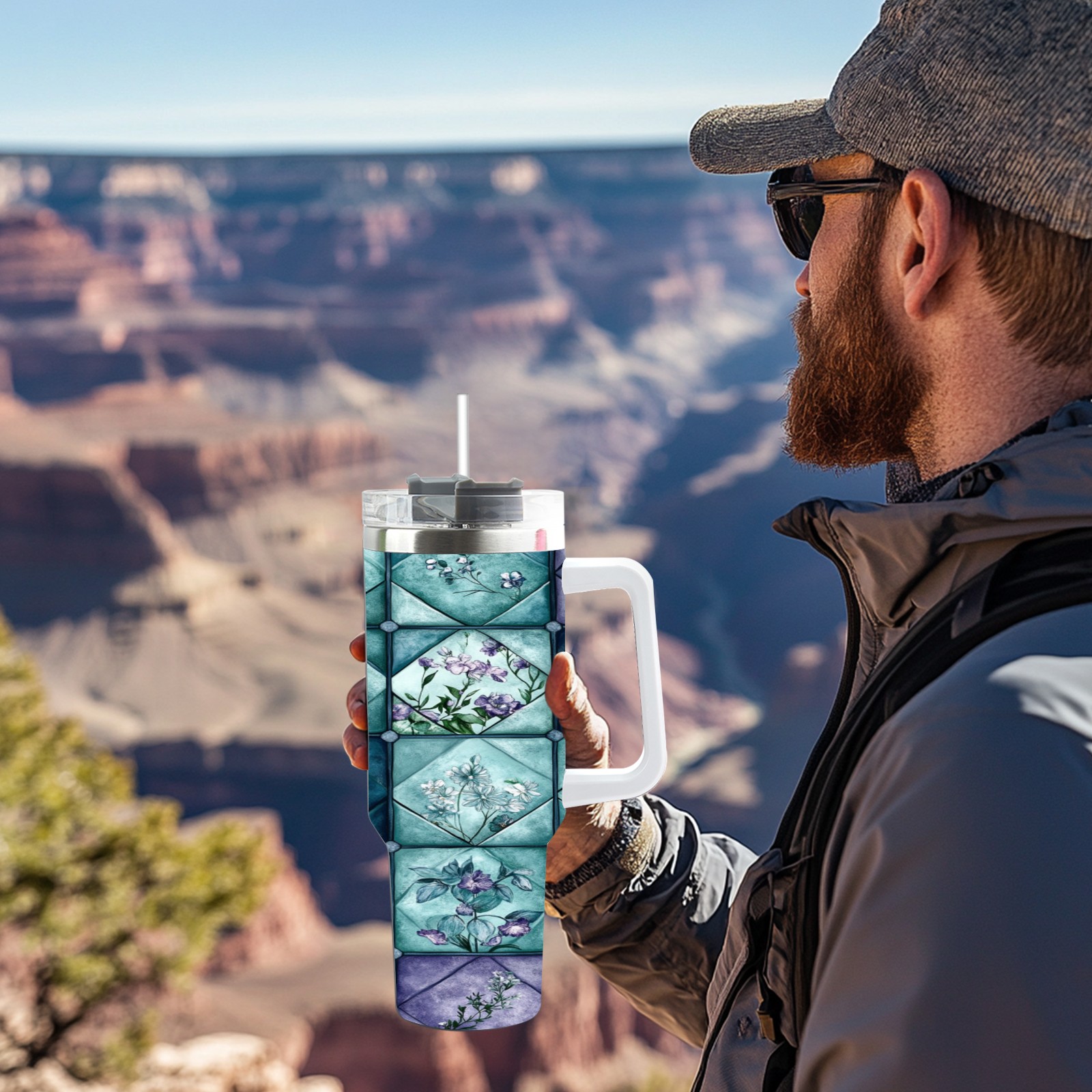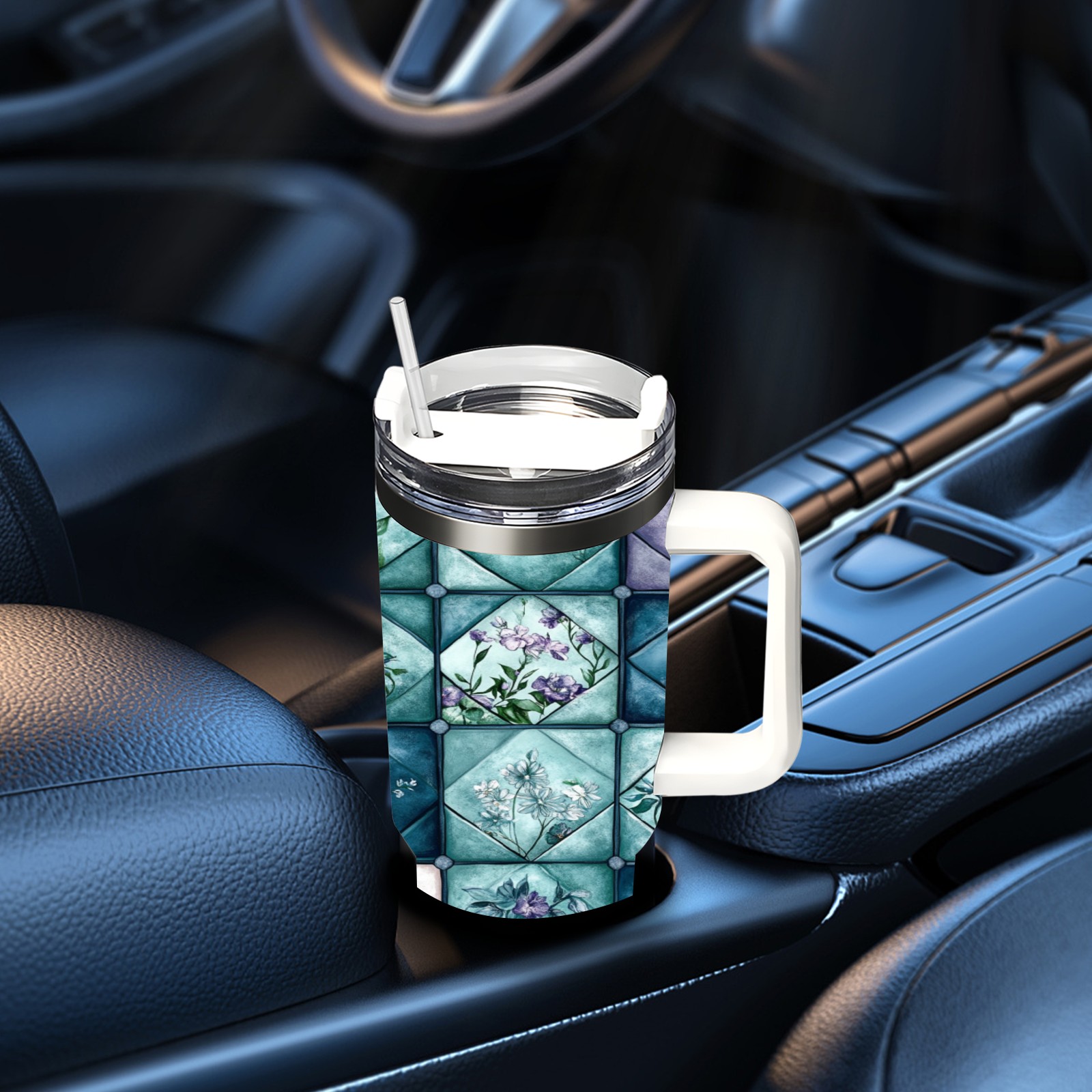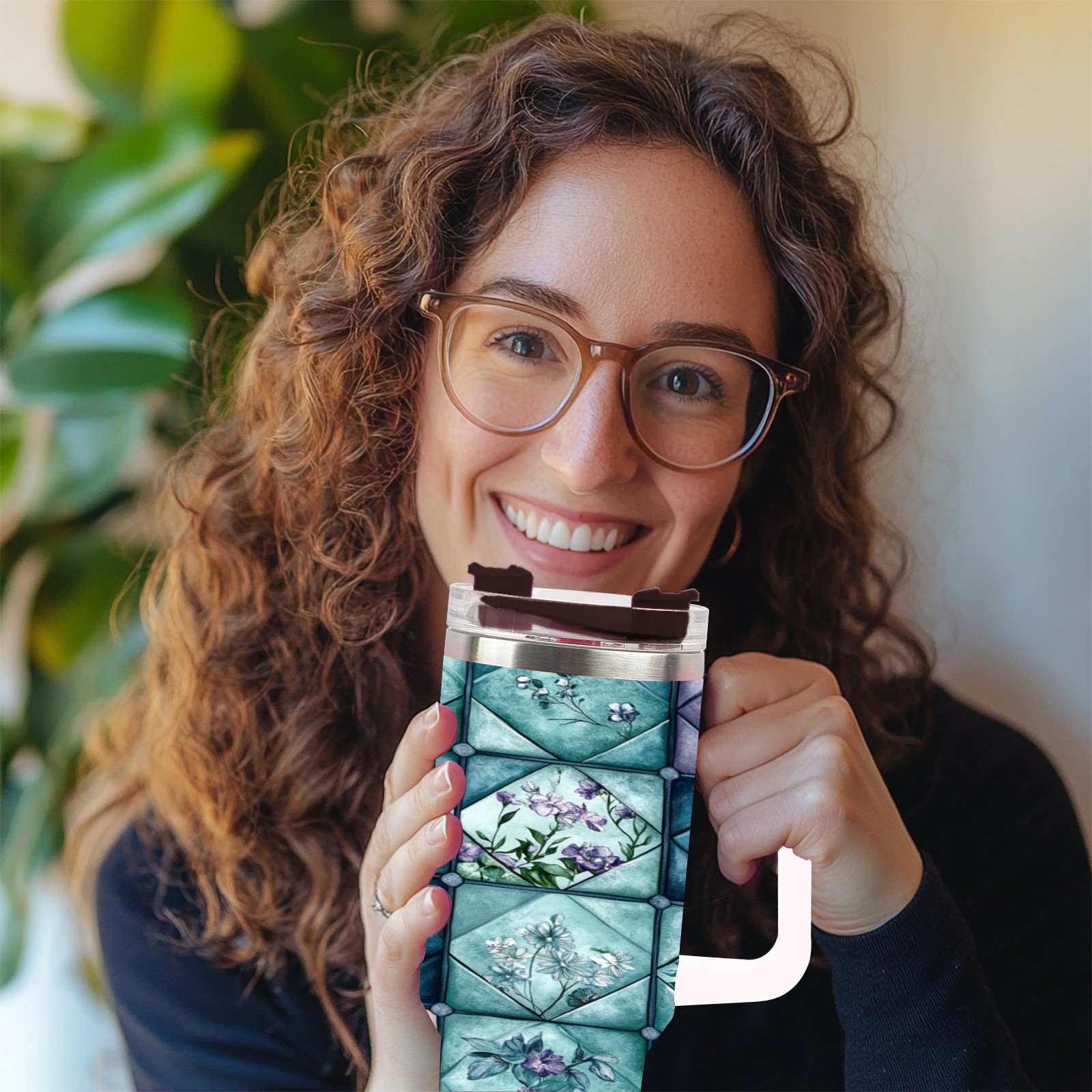 40 унций полностью напечатанный автомобильный стакан Checkered Floral Pattern(2)