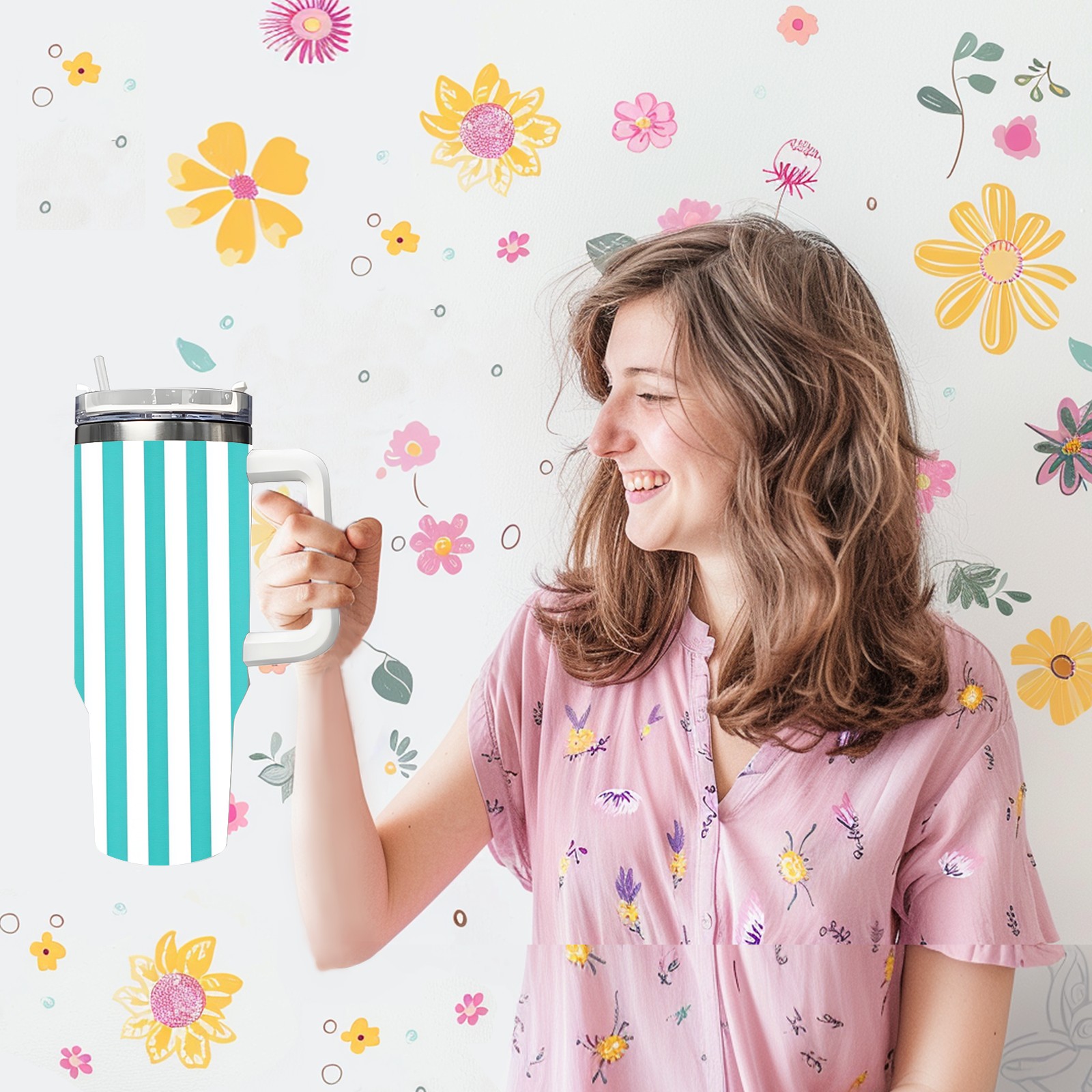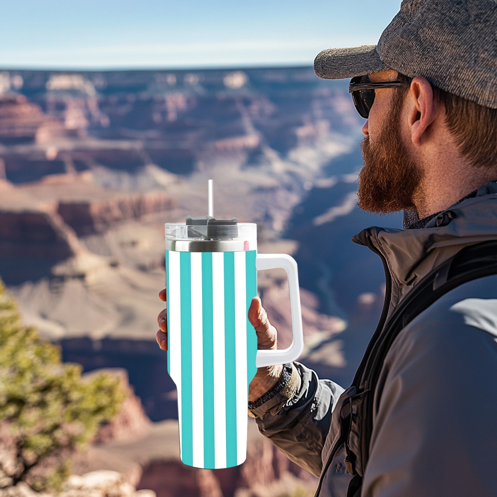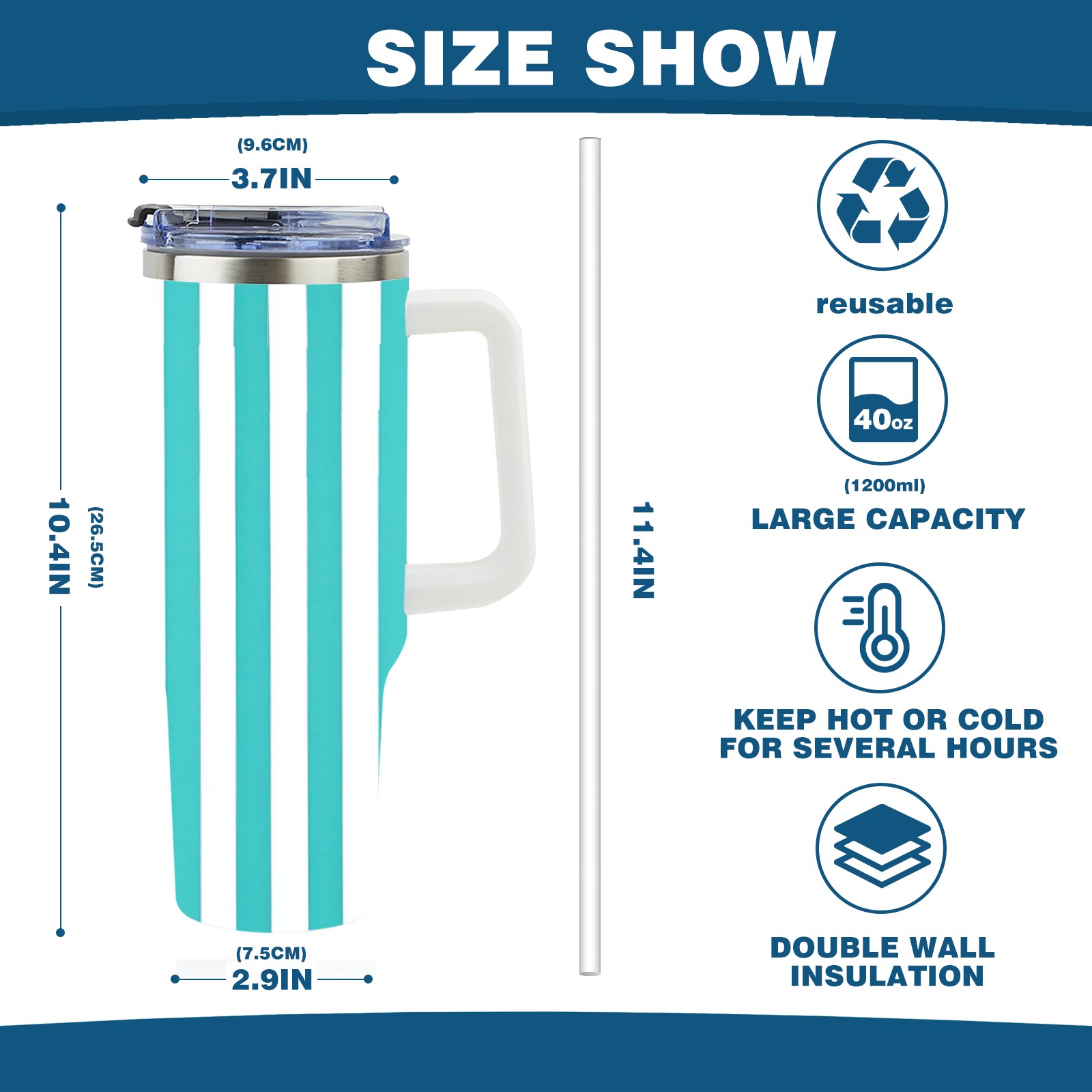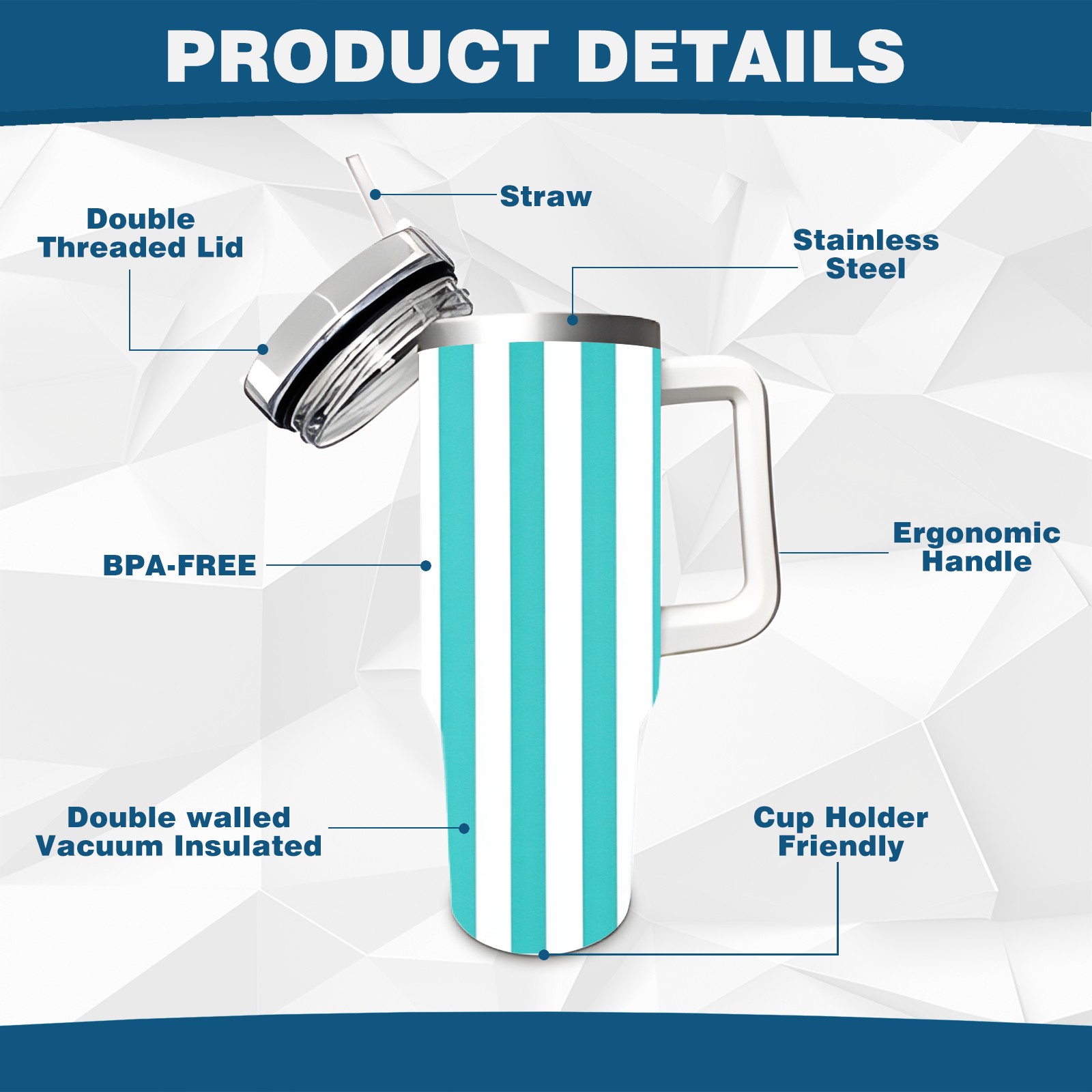40 унций полностью напечатанный автомобильный стакан Blue White Striped Pattern(1)