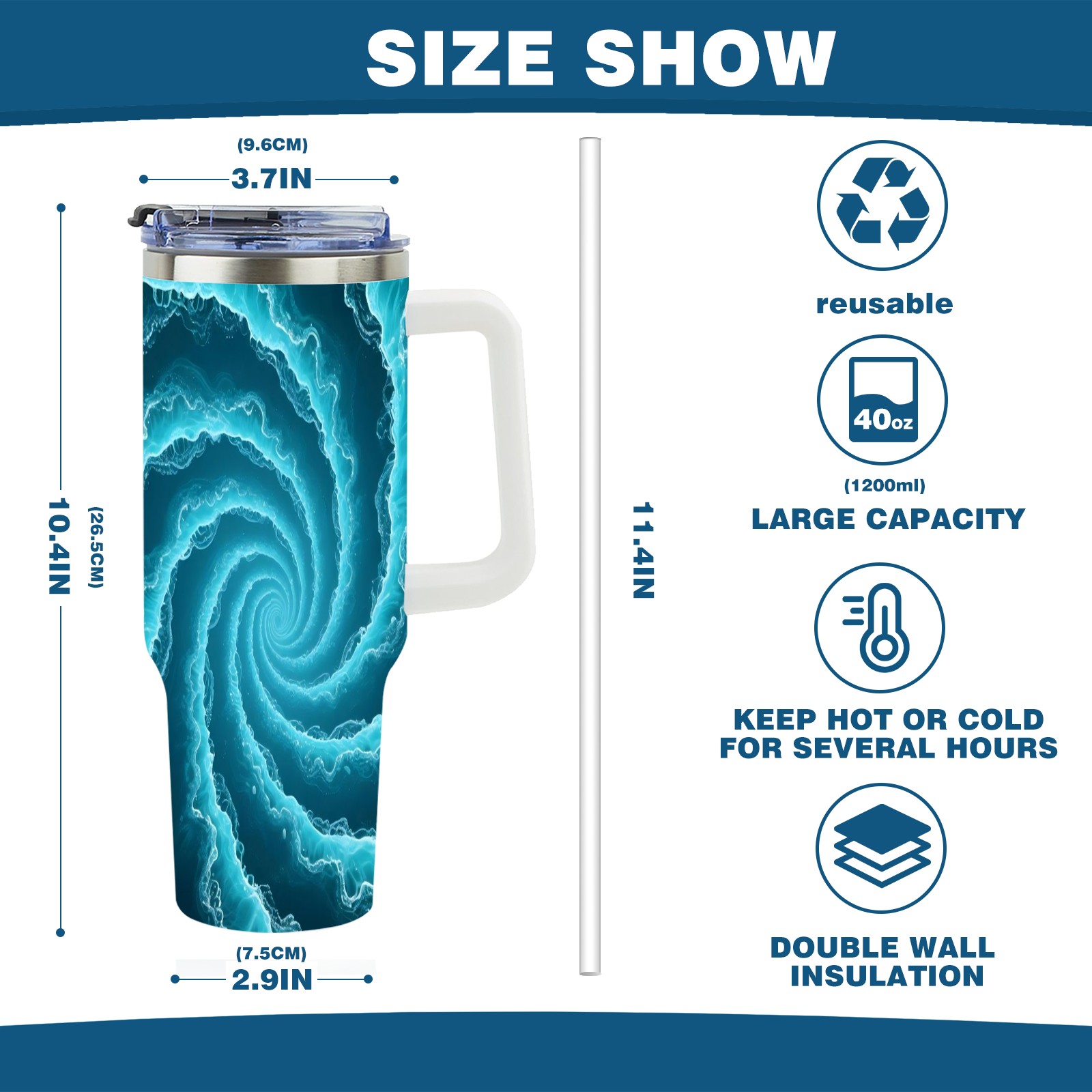 • С большой емкостью 40 унций, он обеспечивает вас гидратацией в течение всего дня, идеально подходит для воды, кофе, сока или других напитков. Эргономичный дизайн идеально вписывается в автомобильные держатели для бутылок, а прочный, герметичный колпачок предотвращает утечки во время передвижения. Путешествие. Антискользящее основание обеспечивает устойчивость, а гладкие поверхности делают уборку легкой — просто мойте вручную или кладите в посудомоечную машину (рекомендуется верхний поддон).