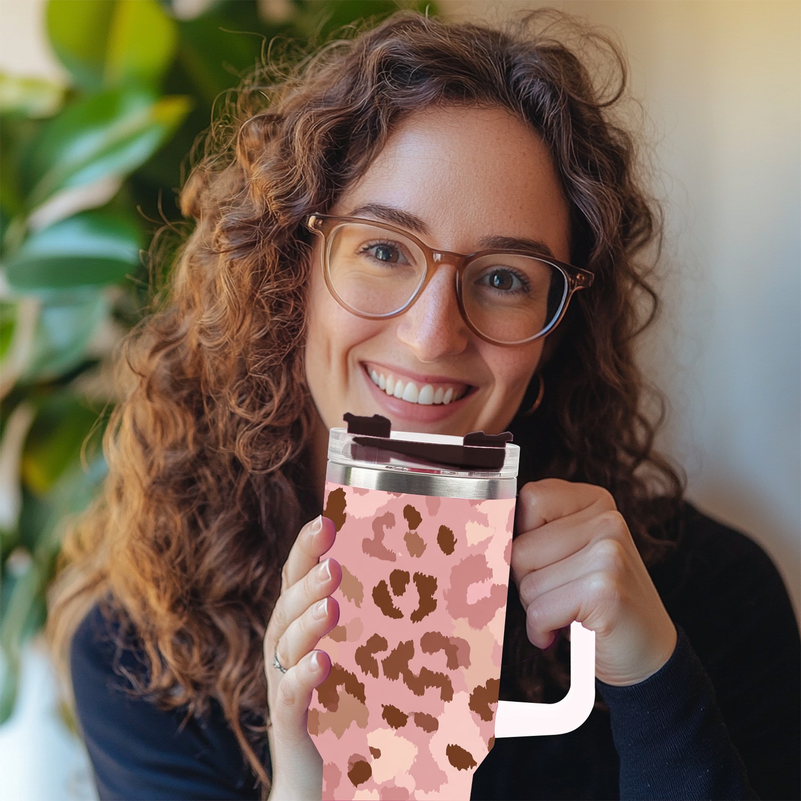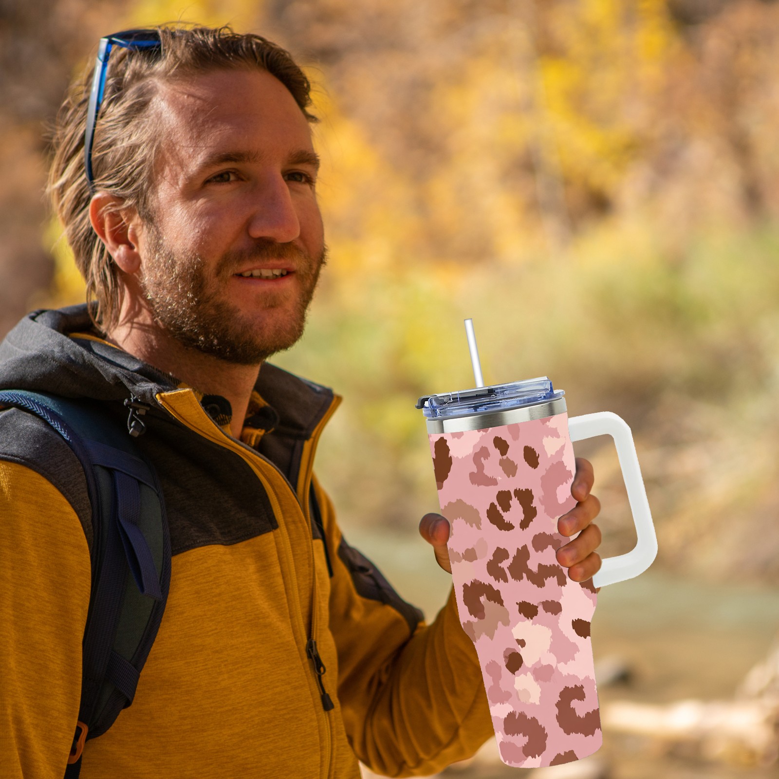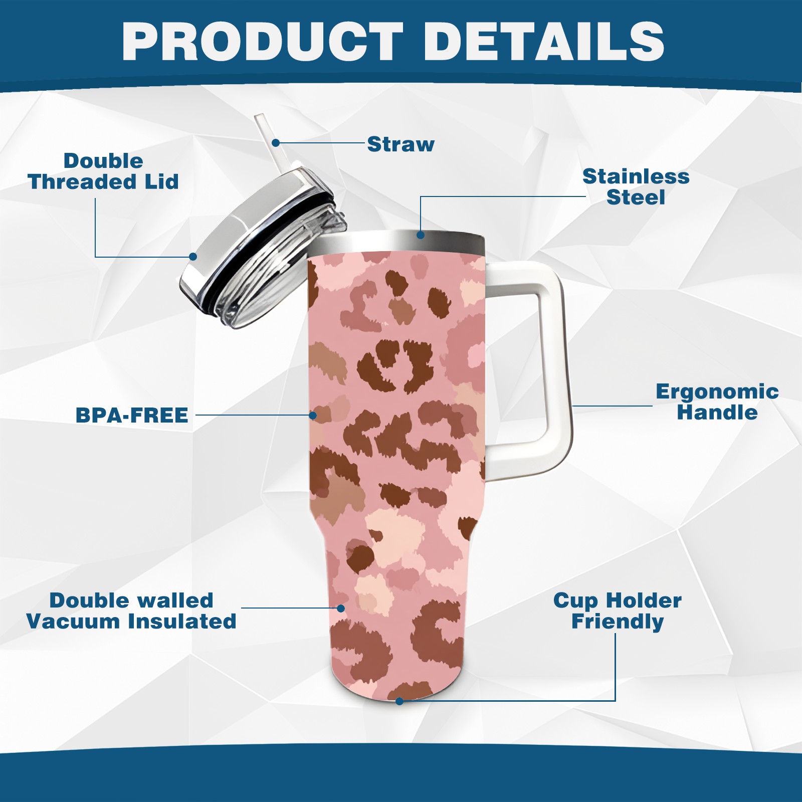 40 унций полностью напечатанный автомобильный стакан Pink Leopard Pink