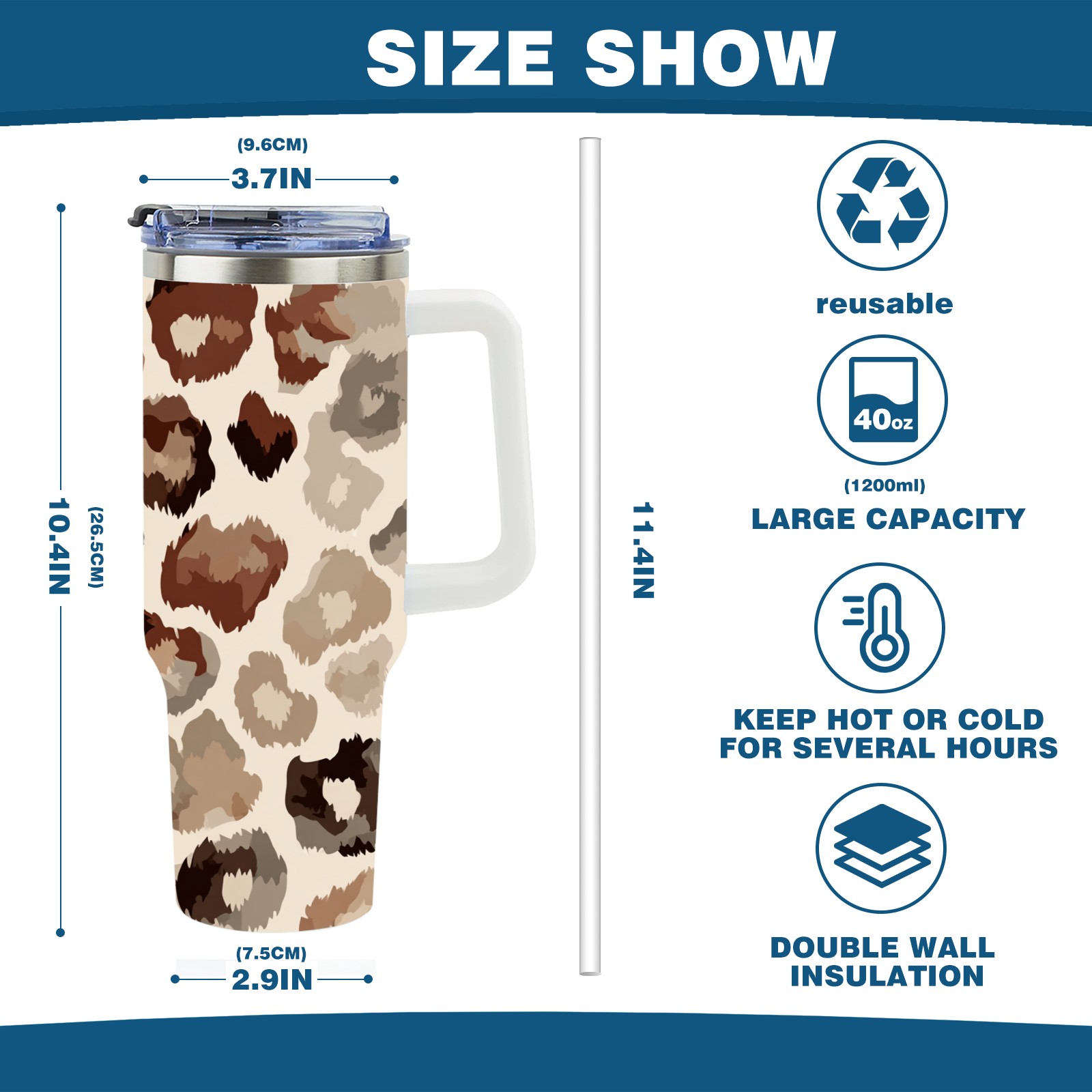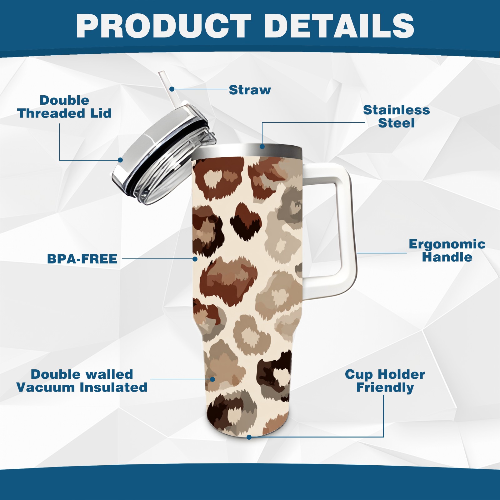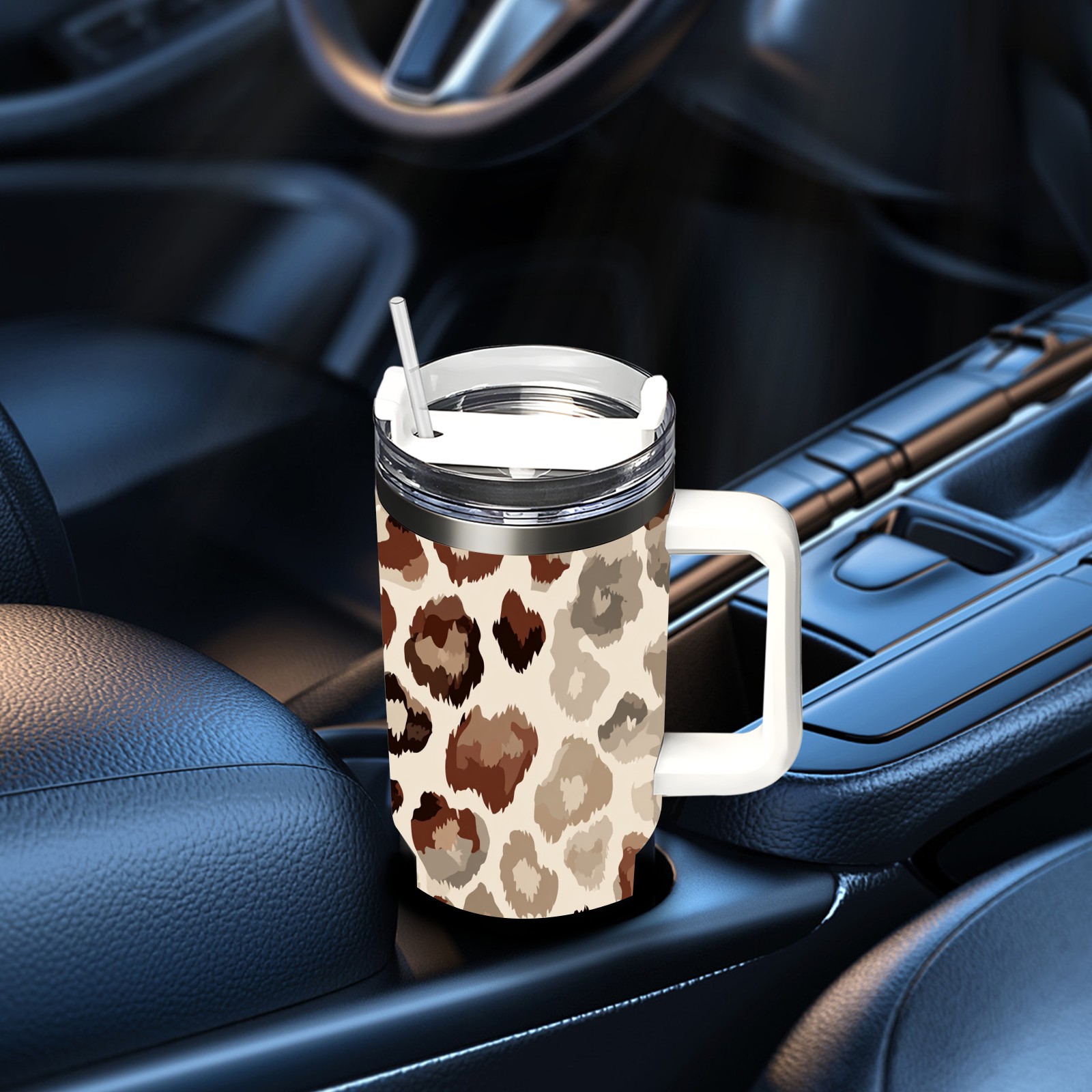 40 унций полностью напечатанный автомобильный стакан Leopard Print Brown