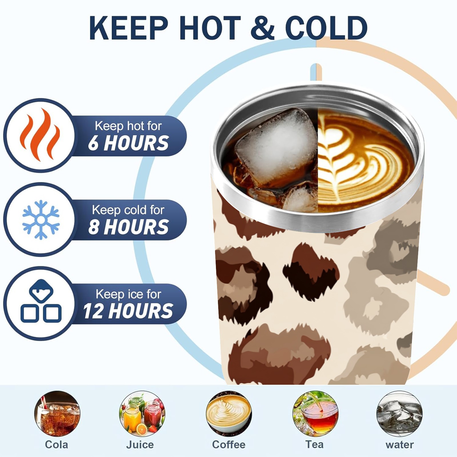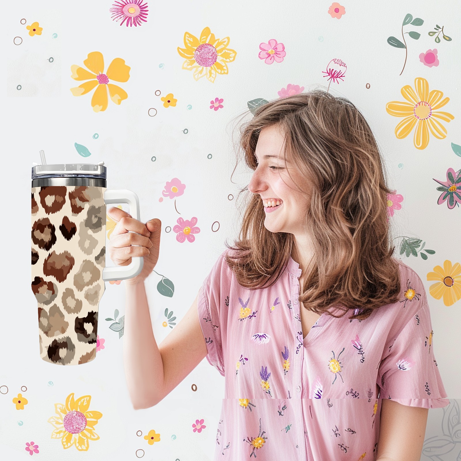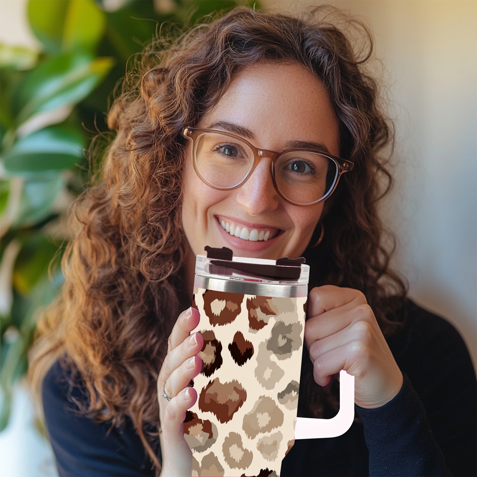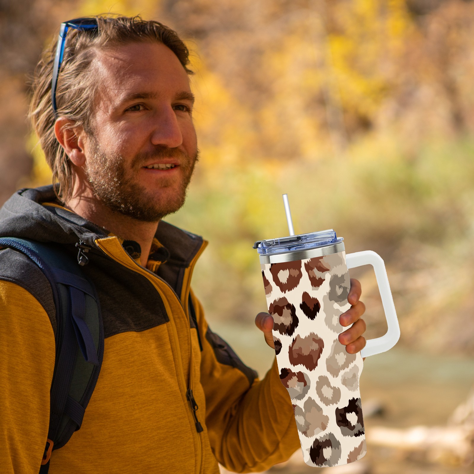 40 унций полностью напечатанный автомобильный стакан Leopard Print Brown