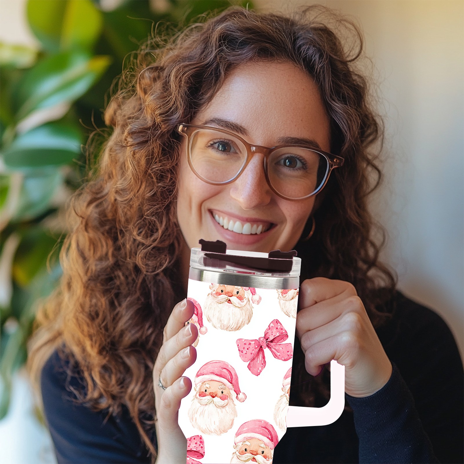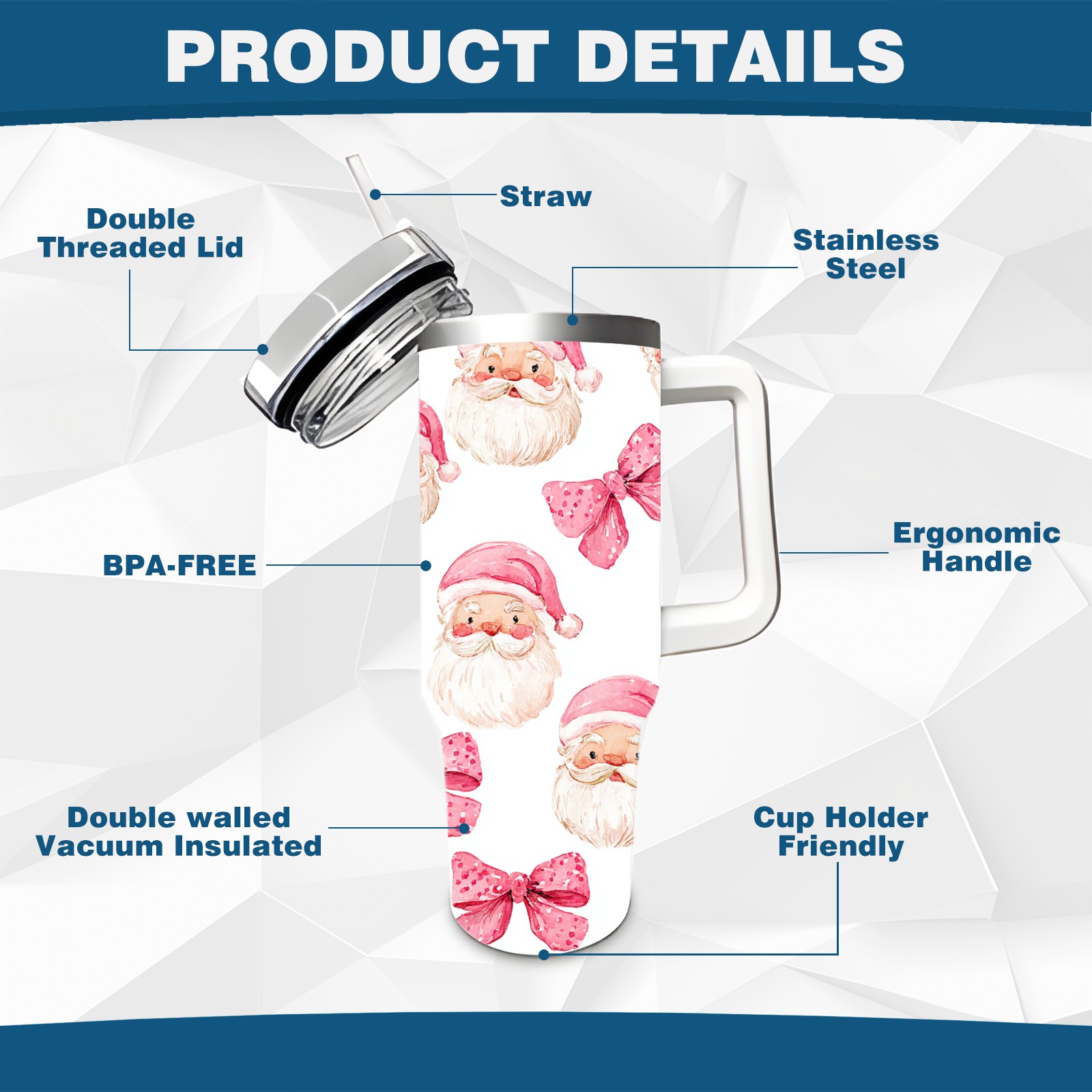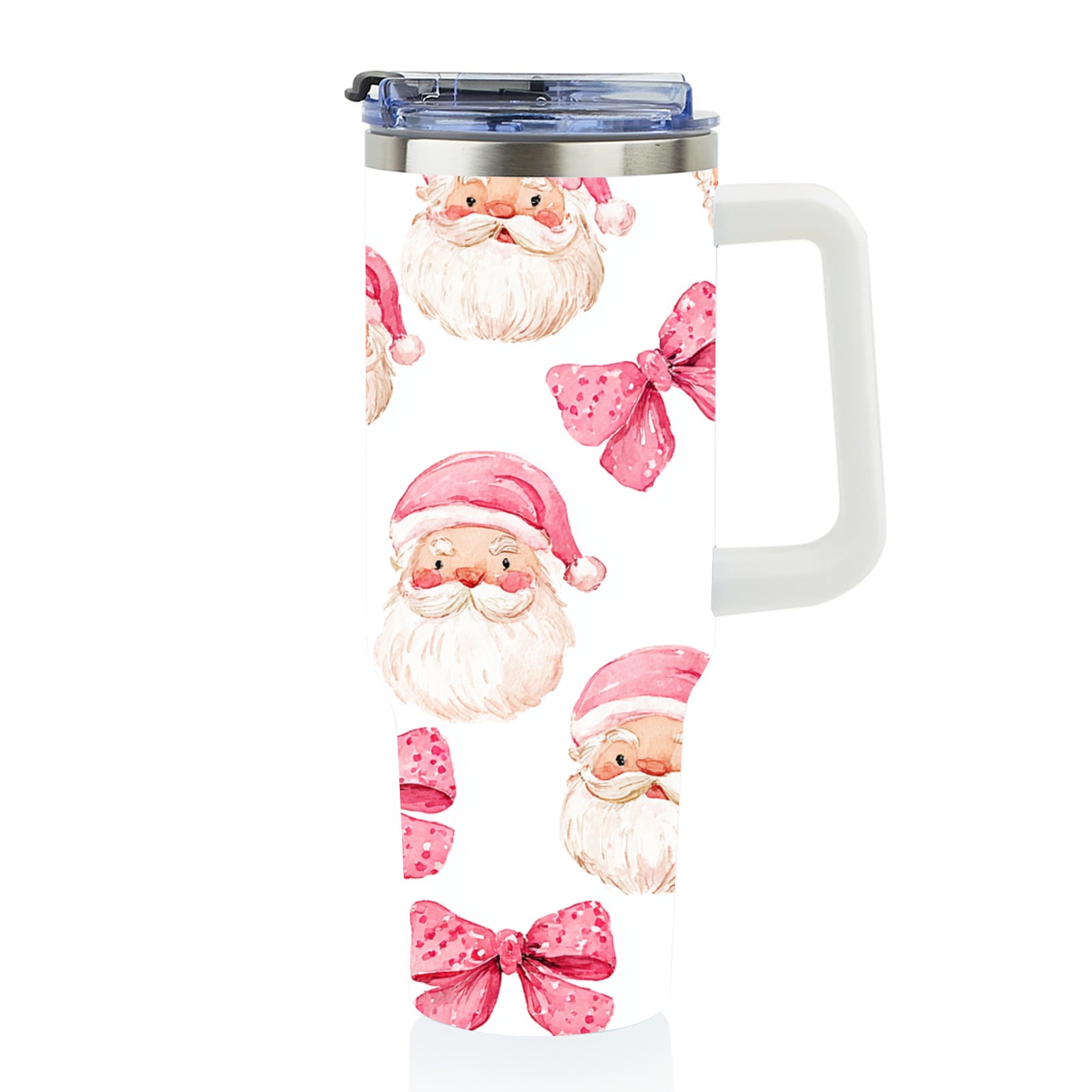 40 унций полностью напечатанный автомобильный стакан Santa Bow Pink