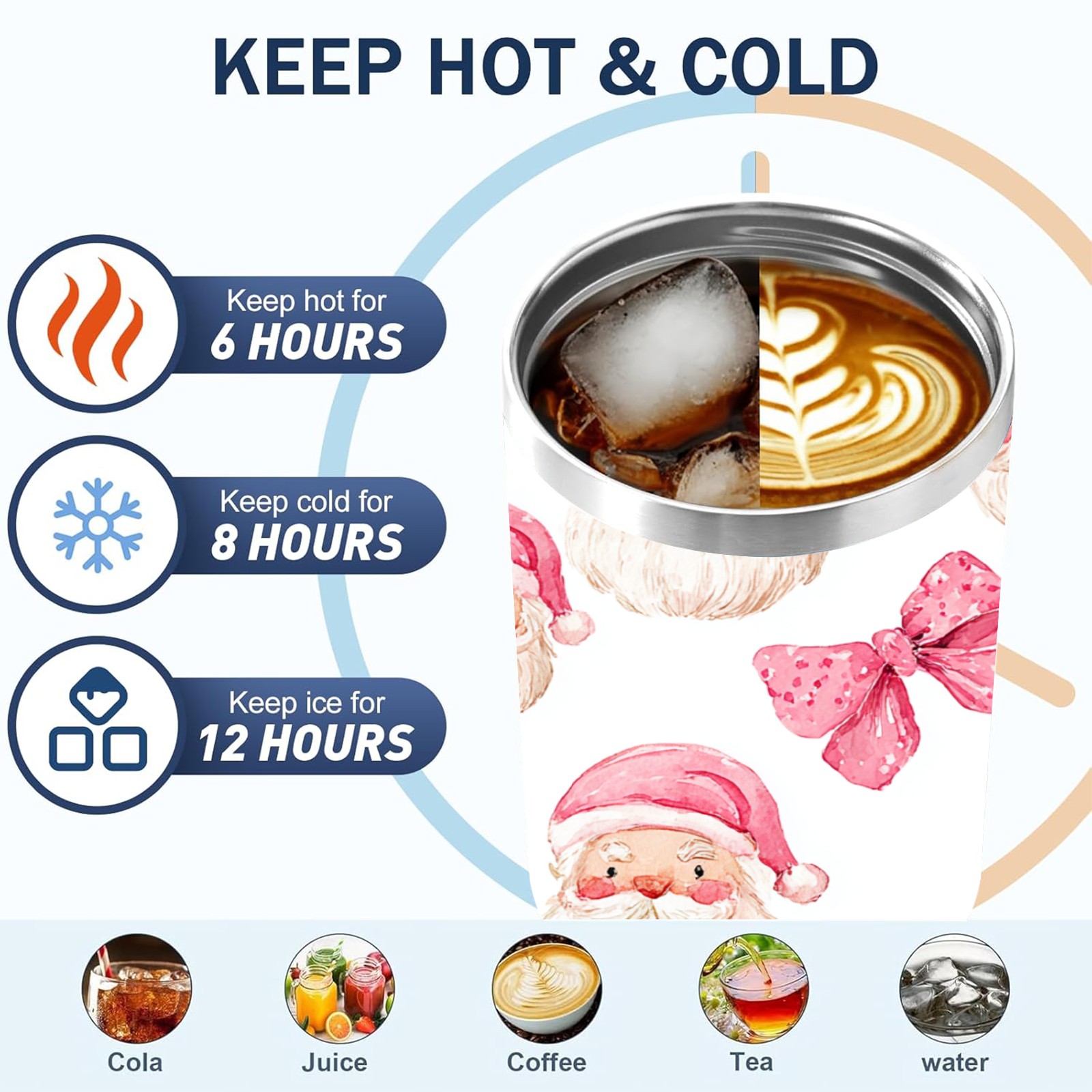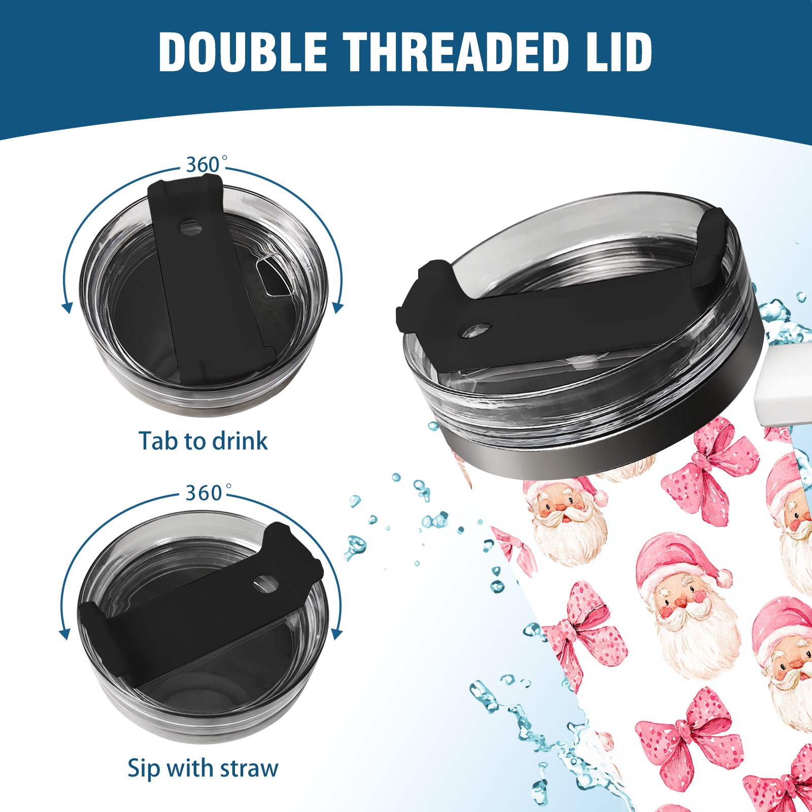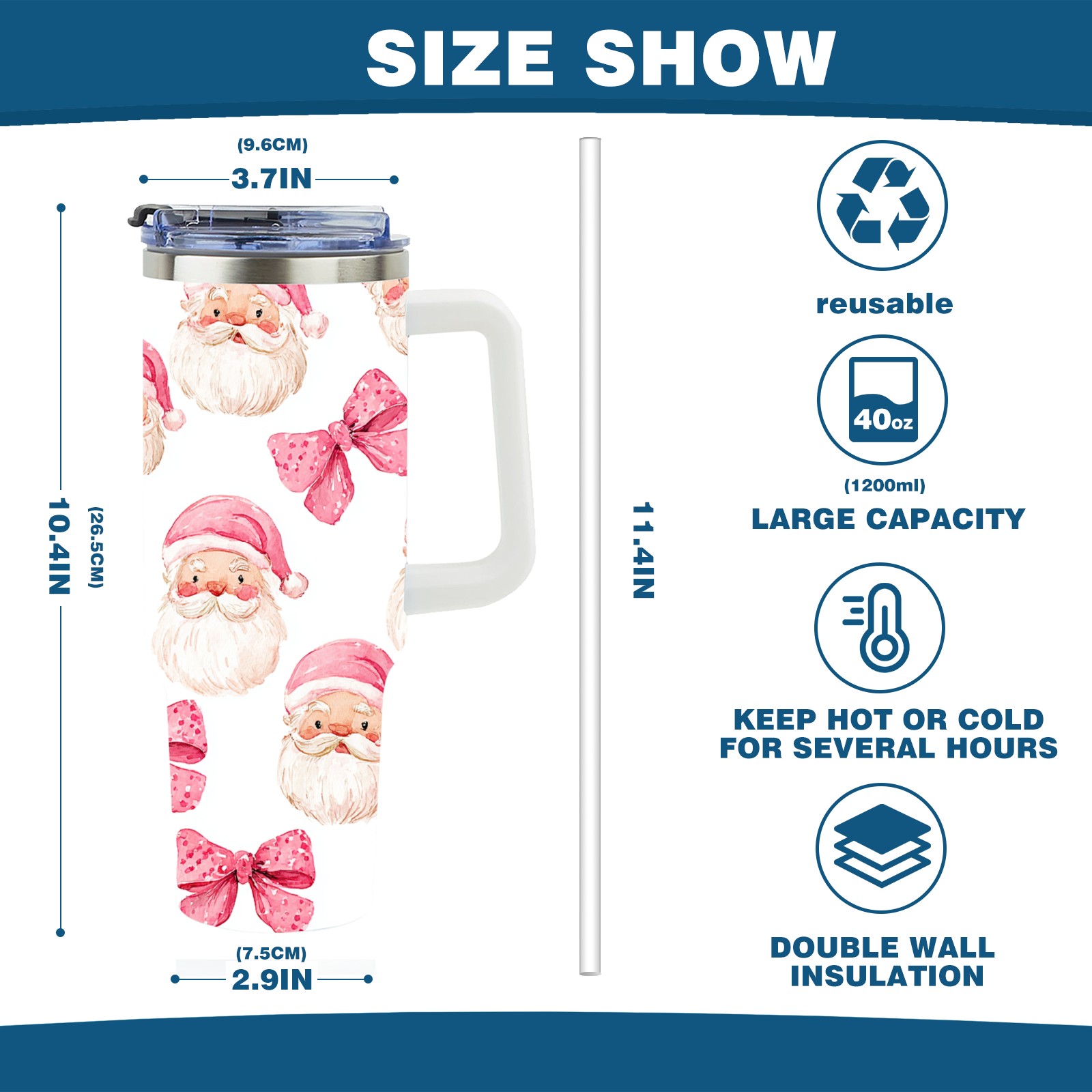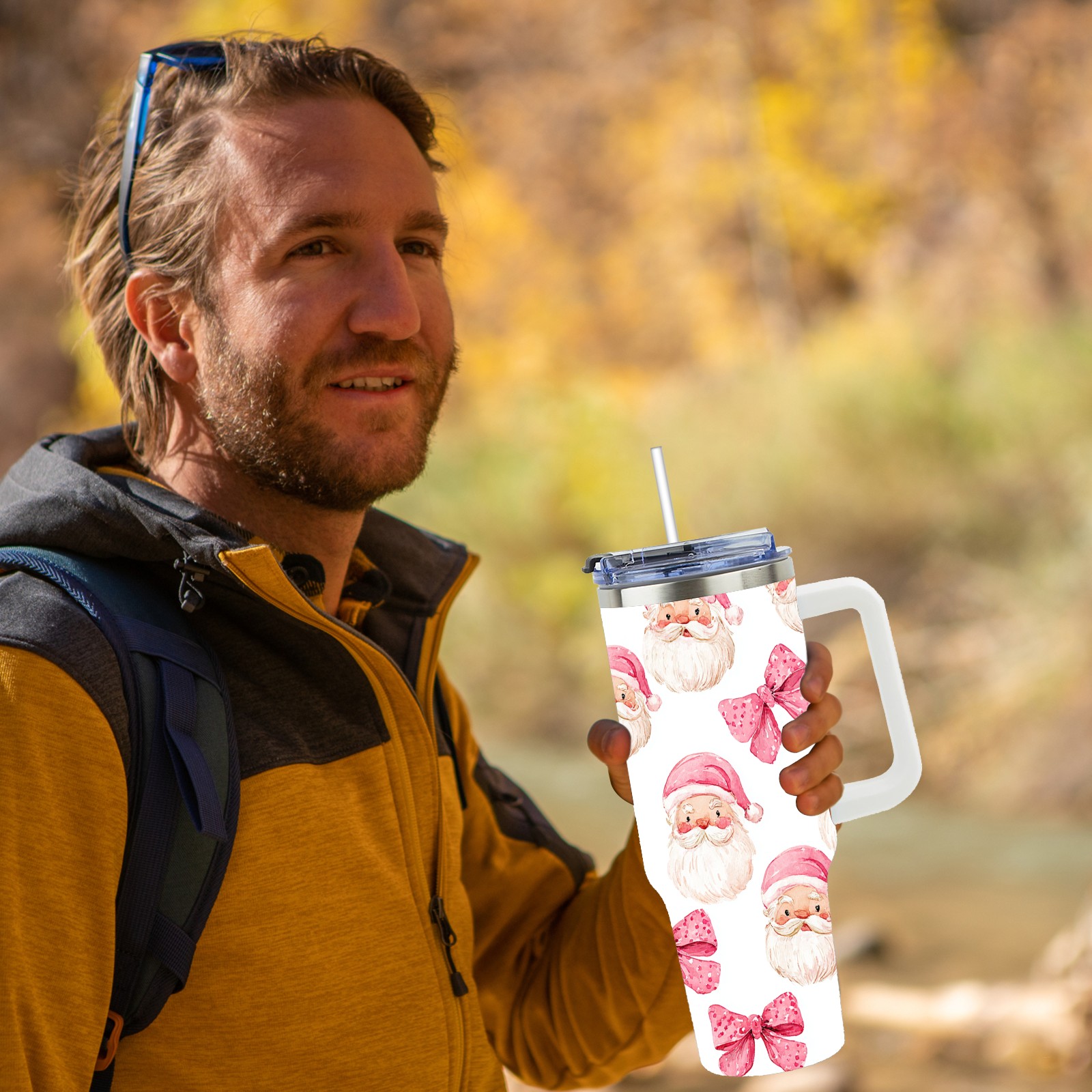 40 унций полностью напечатанный автомобильный стакан Santa Bow Pink