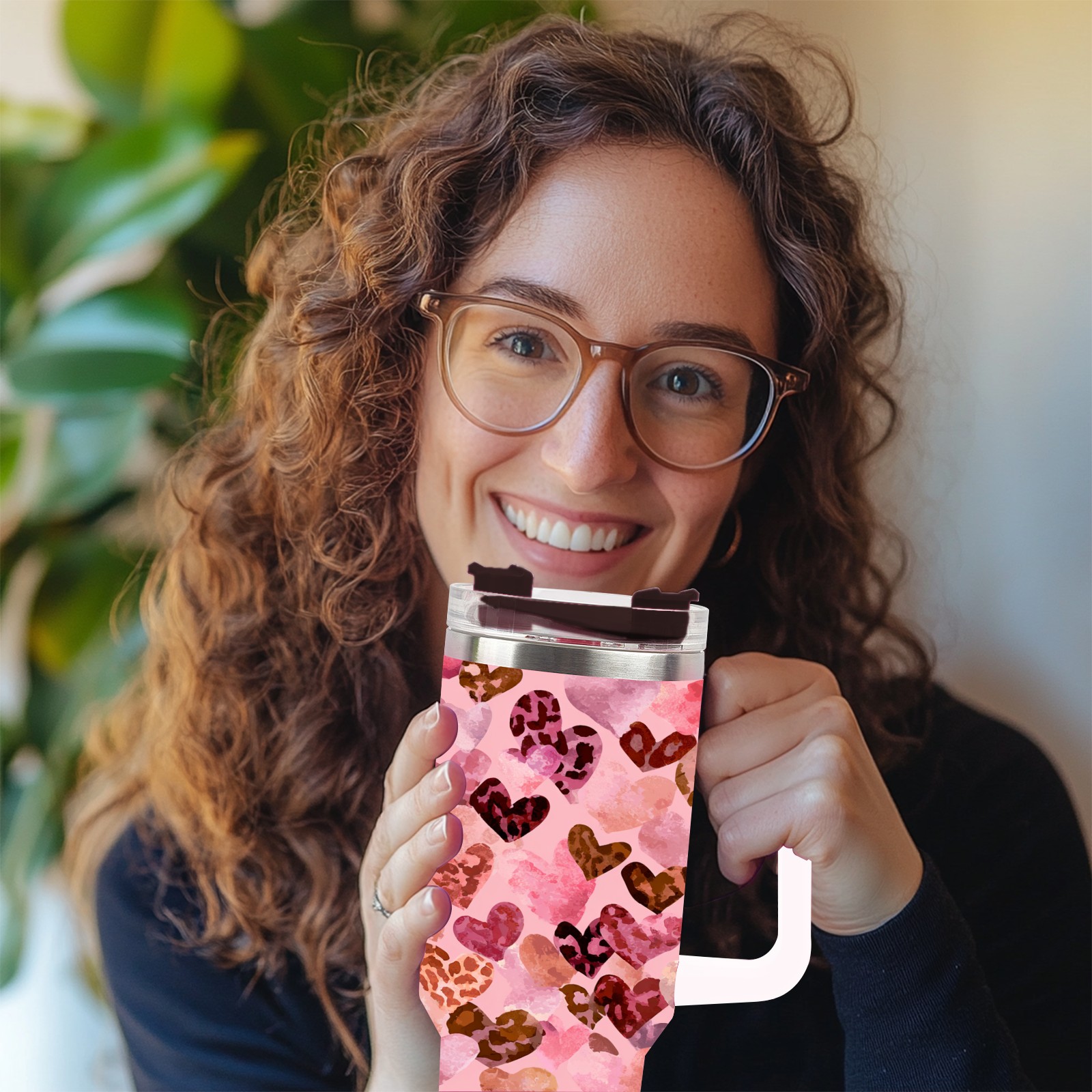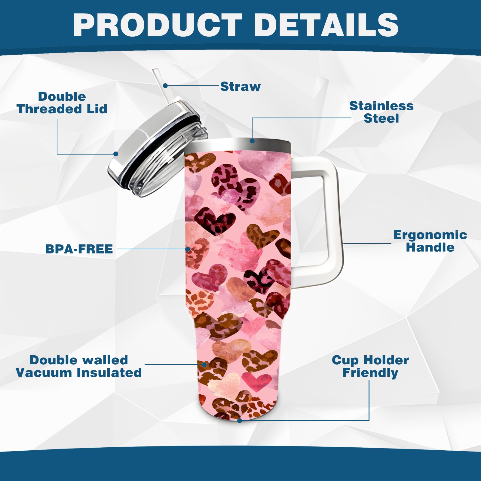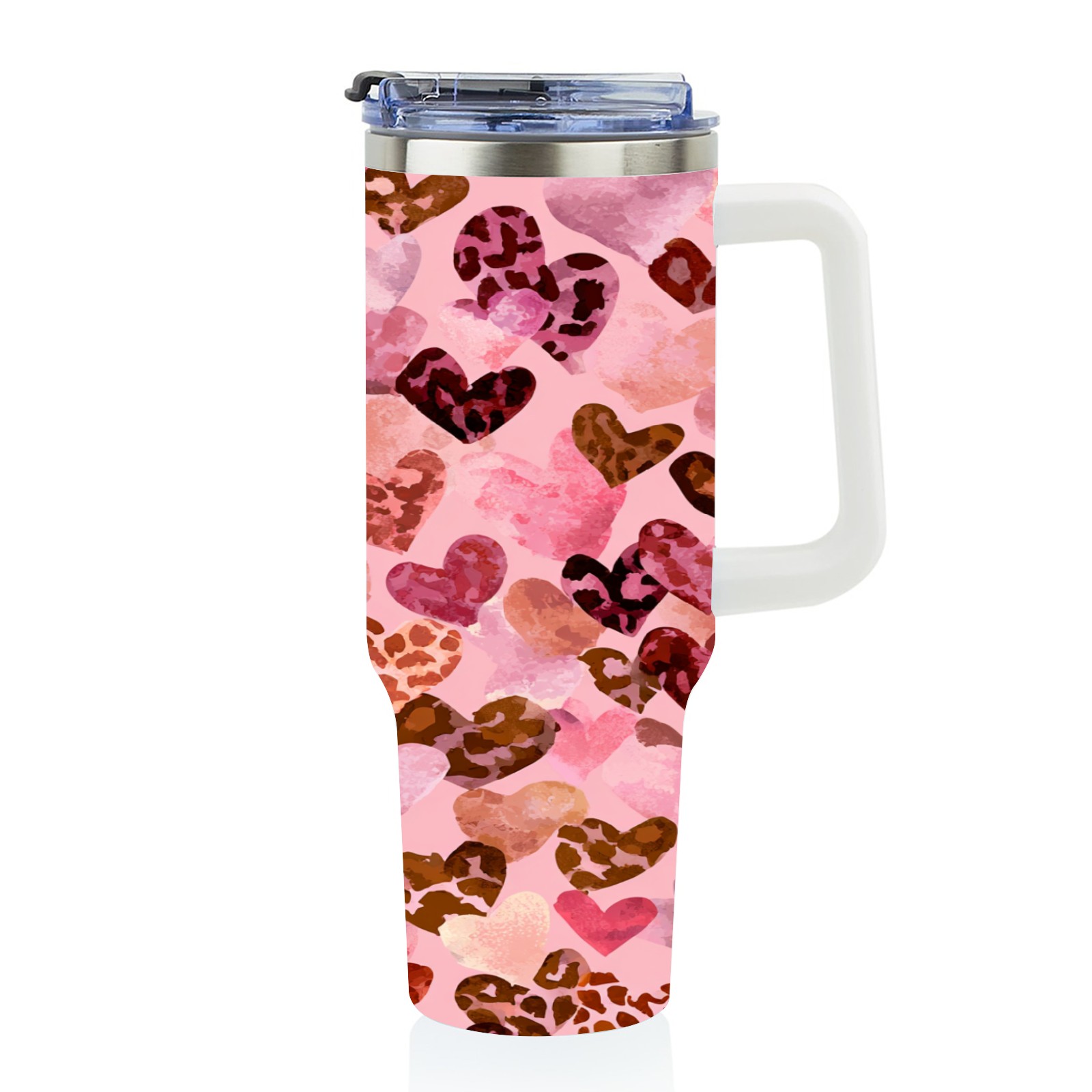 40 унций полностью напечатанный автомобильный стакан Heart Leopard Pink