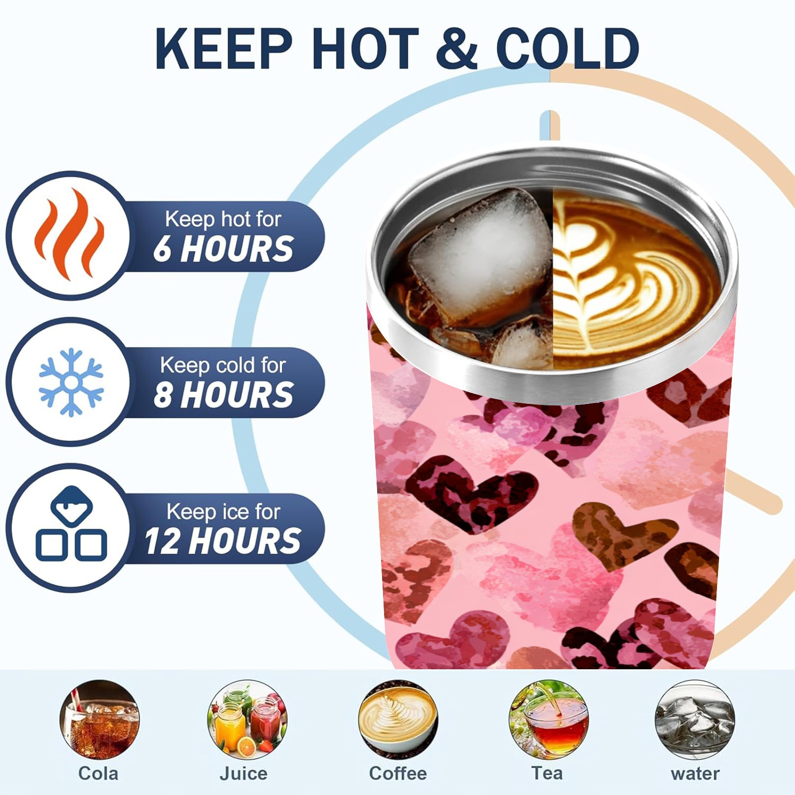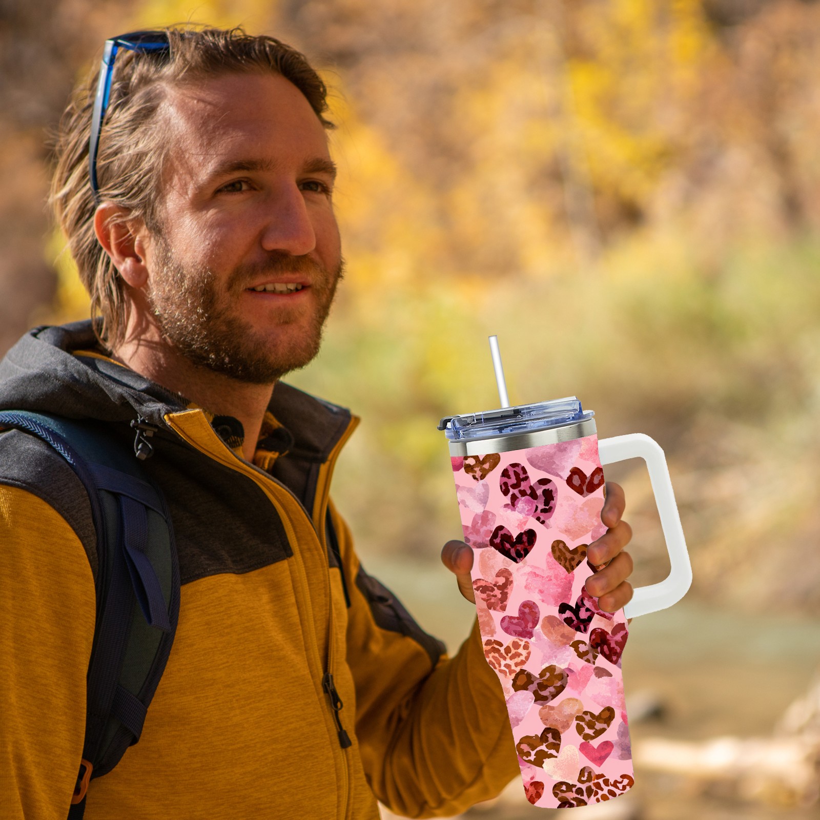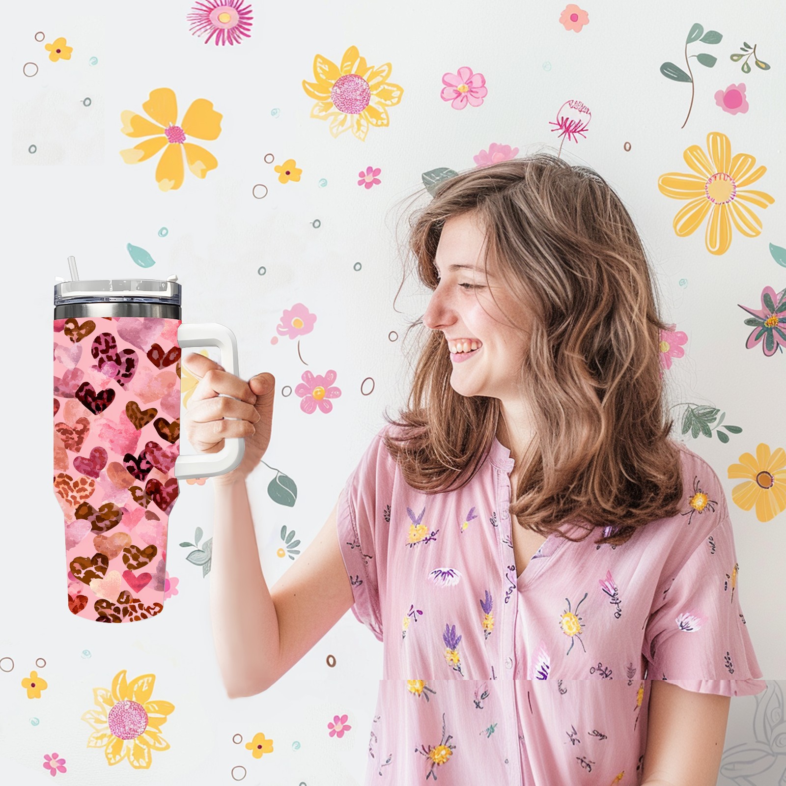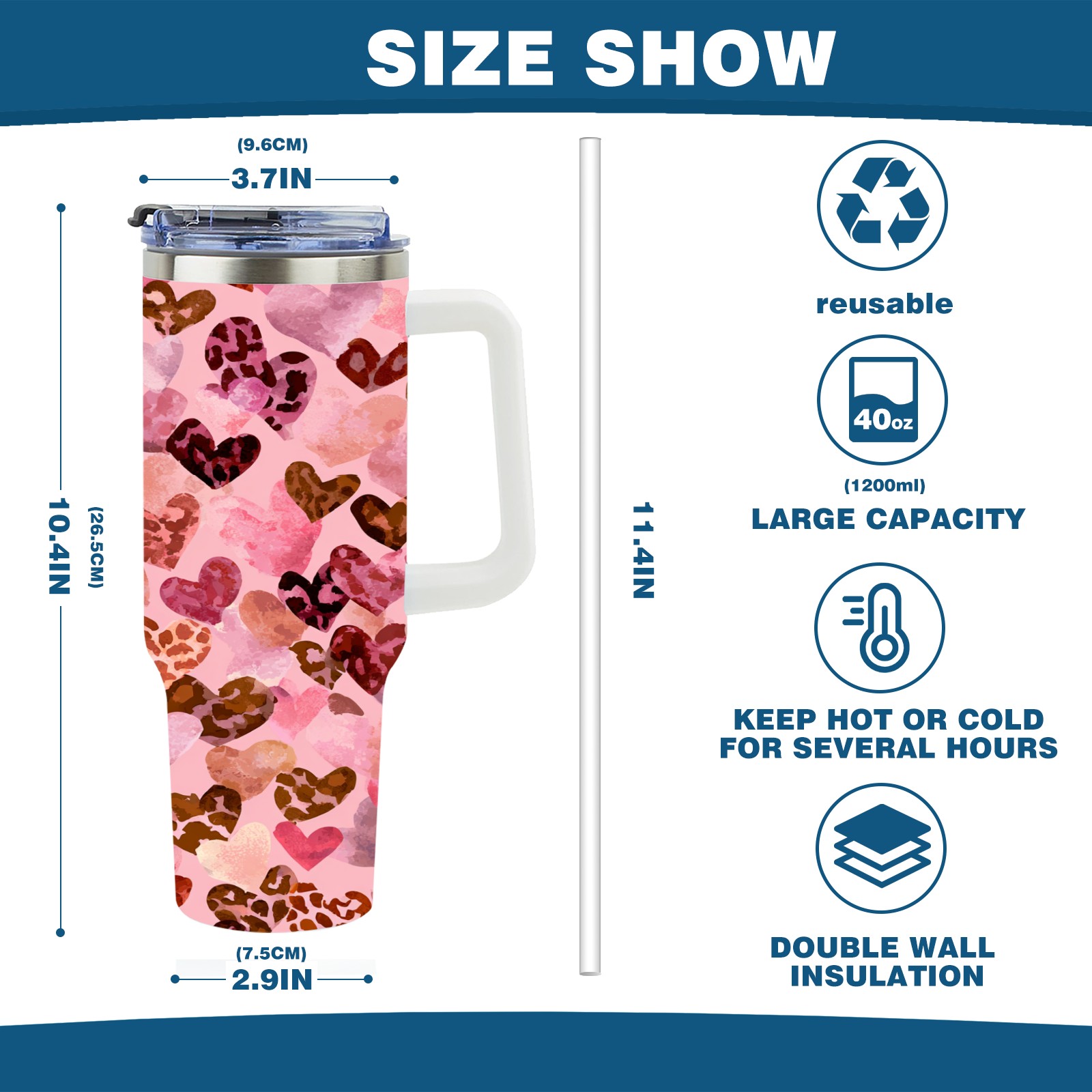40 унций полностью напечатанный автомобильный стакан Heart Leopard Pink