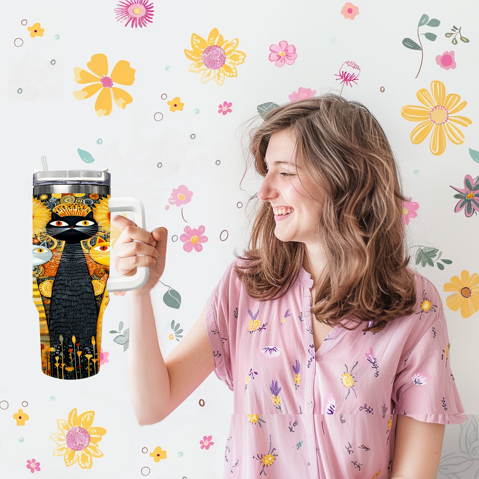 40 унций полностью напечатанный автомобильный стакан Cat Sunflower Yellow