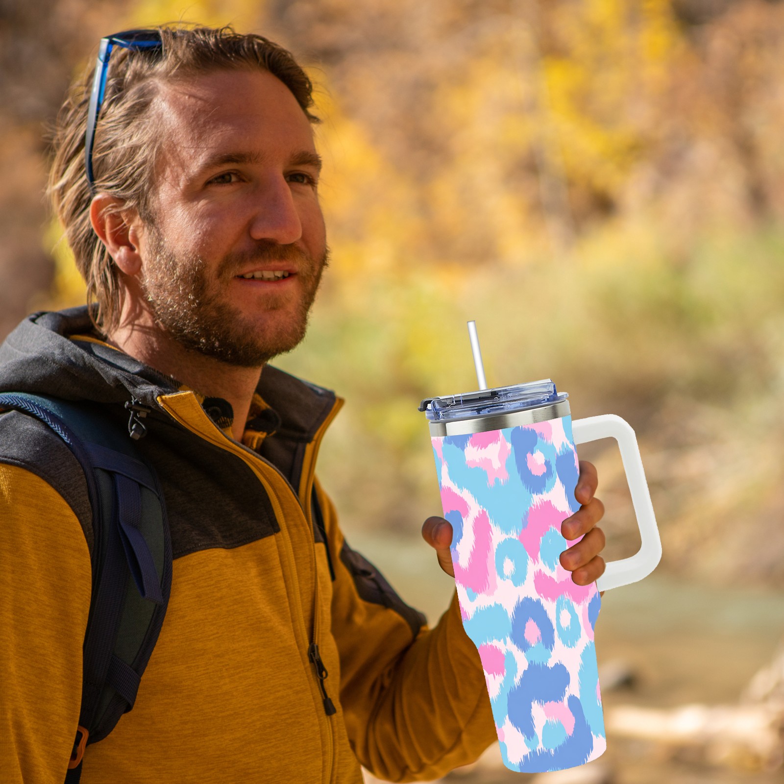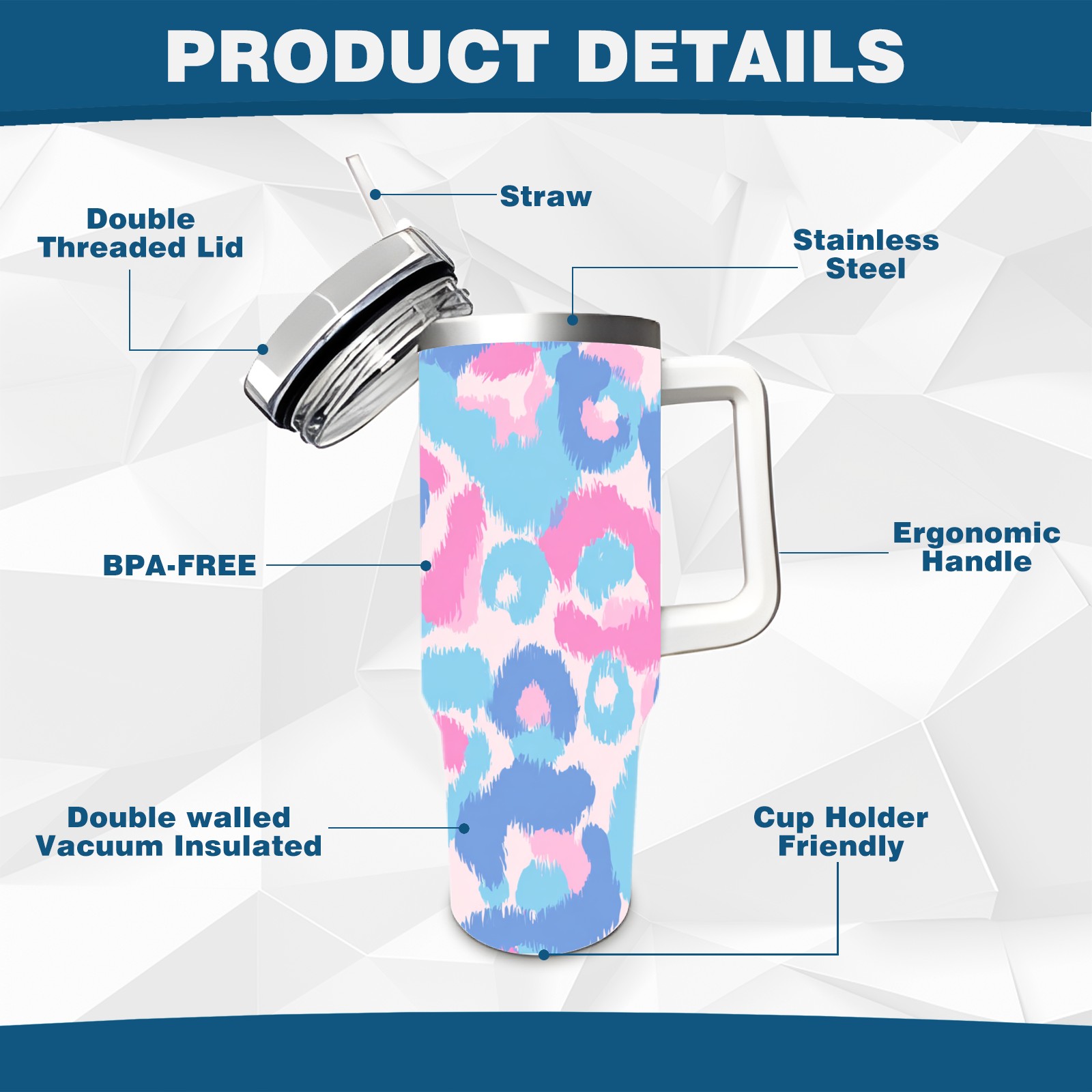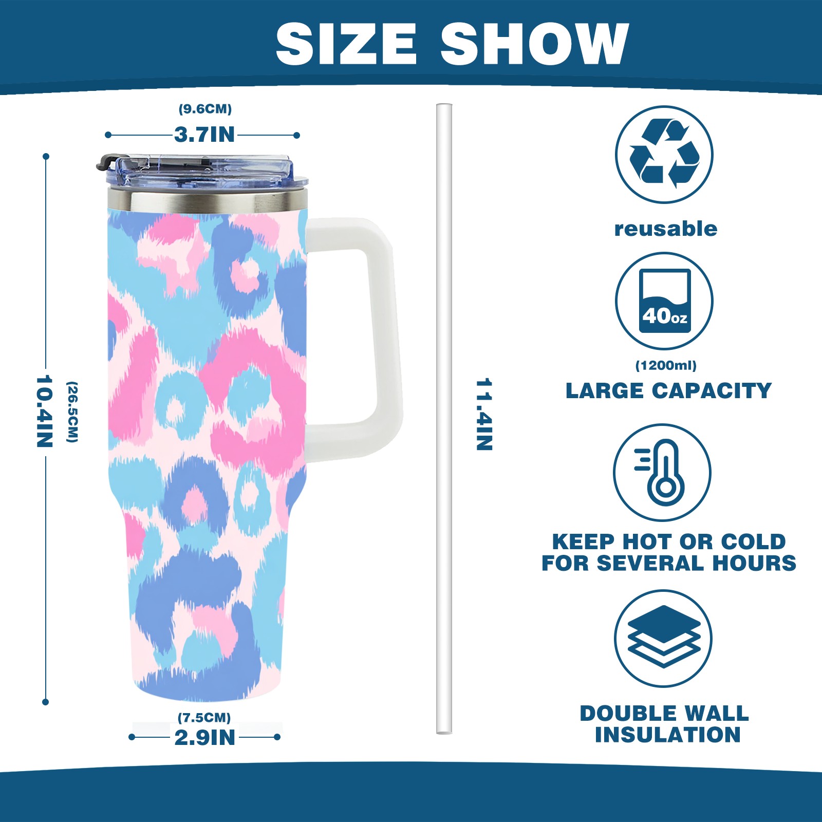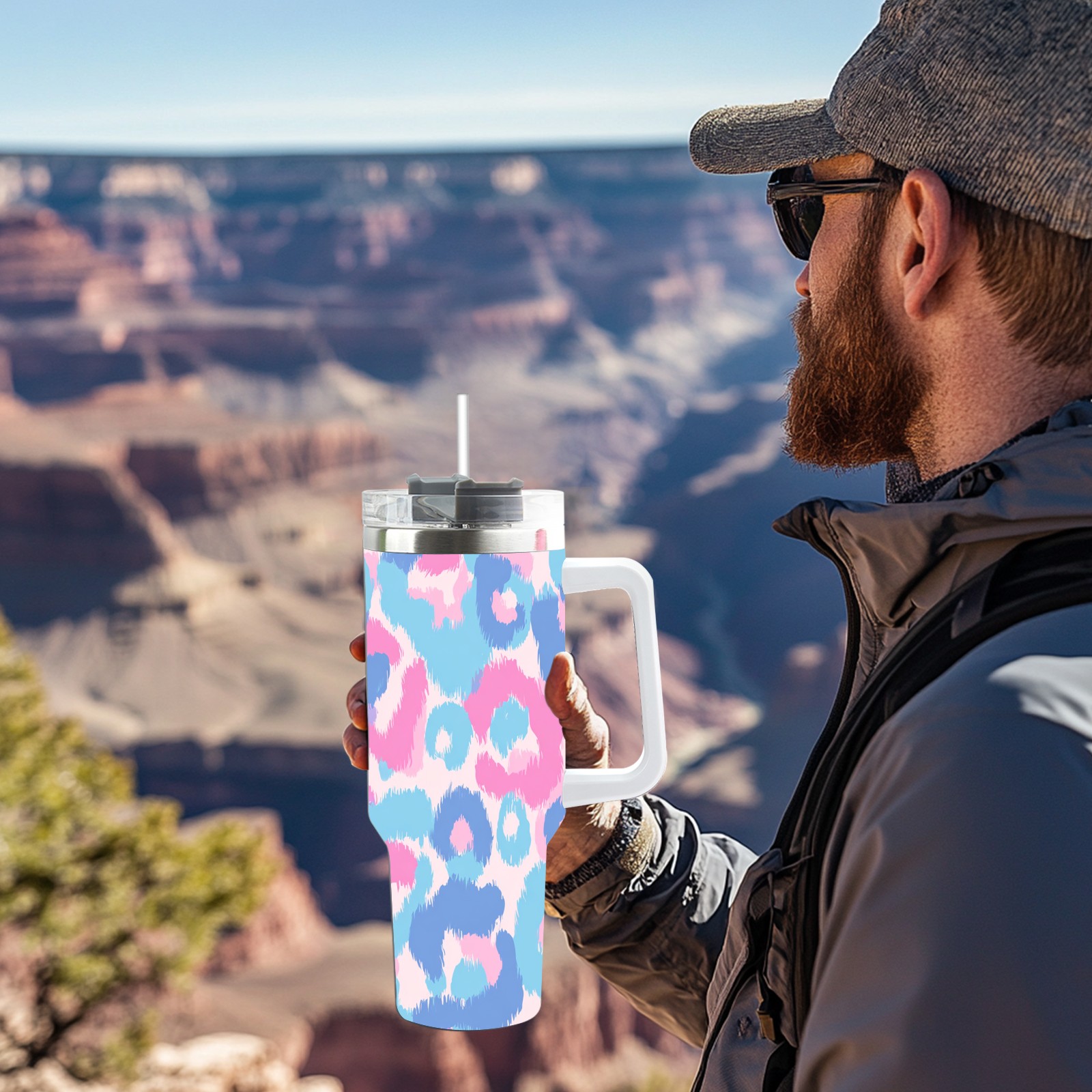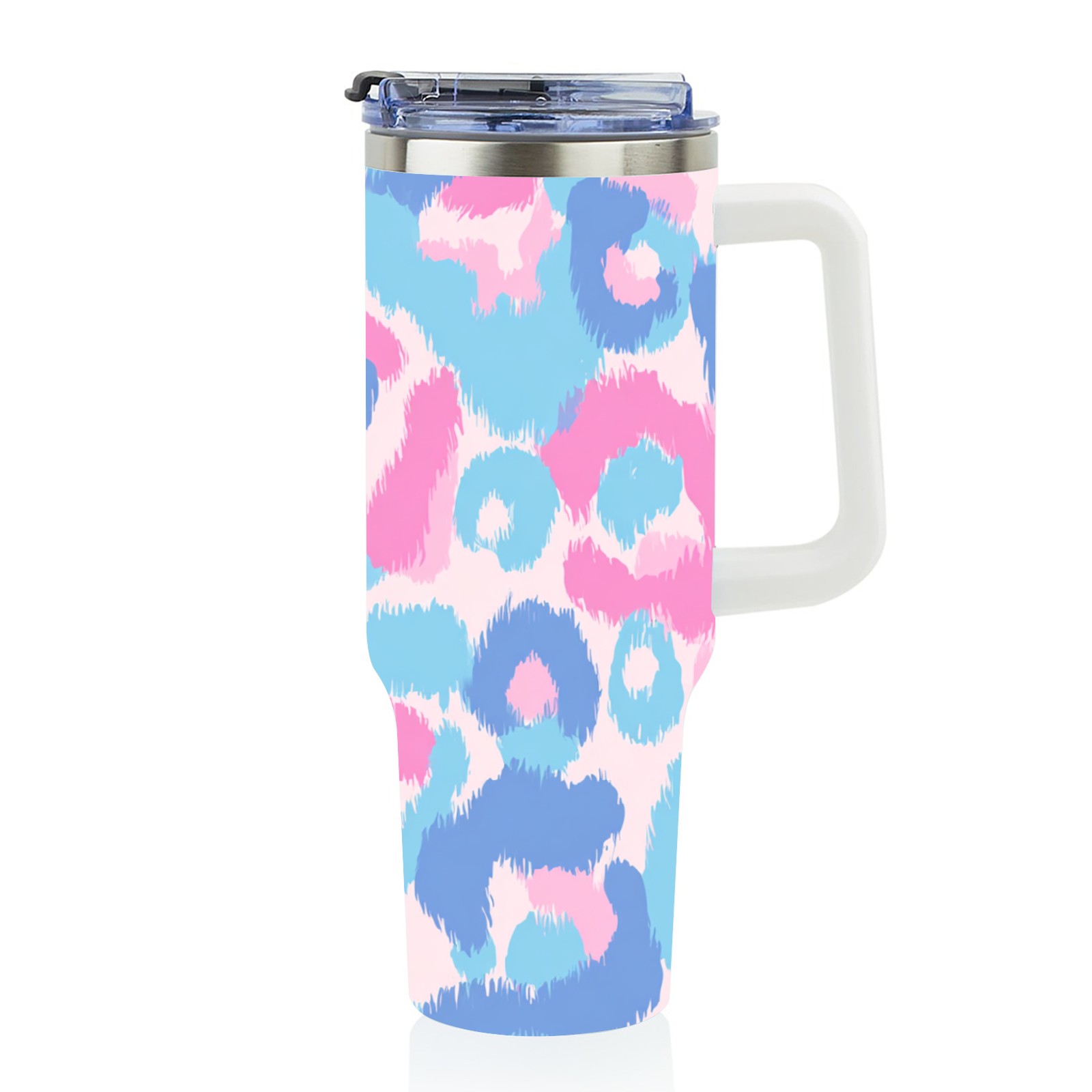 40 унций полностью напечатанный автомобильный стакан Pink Blue Leopard Blue