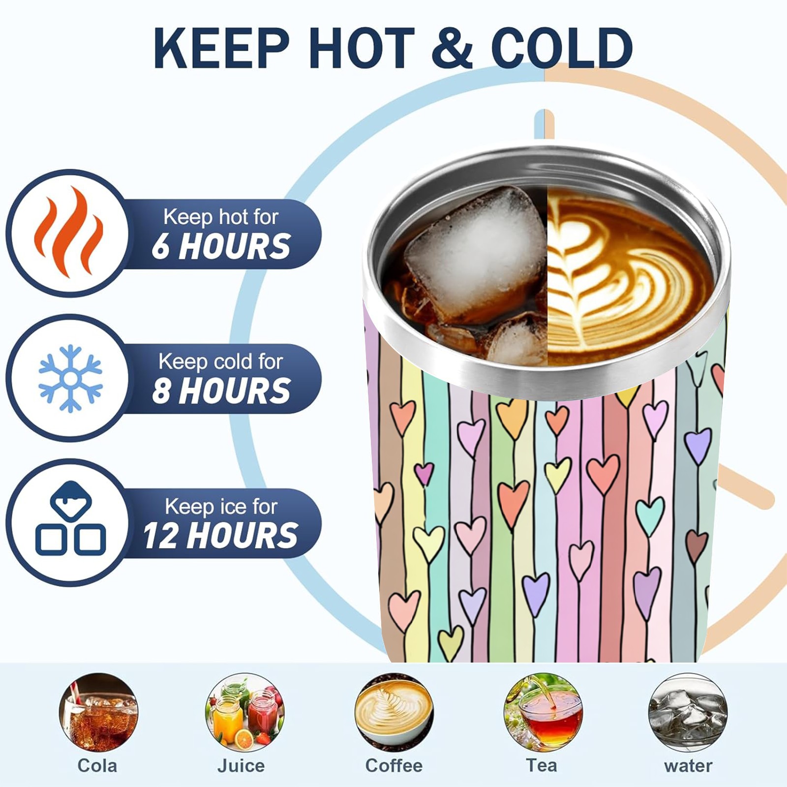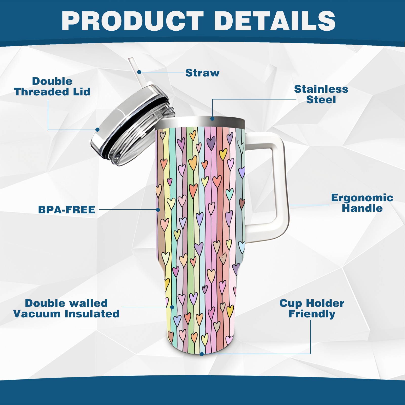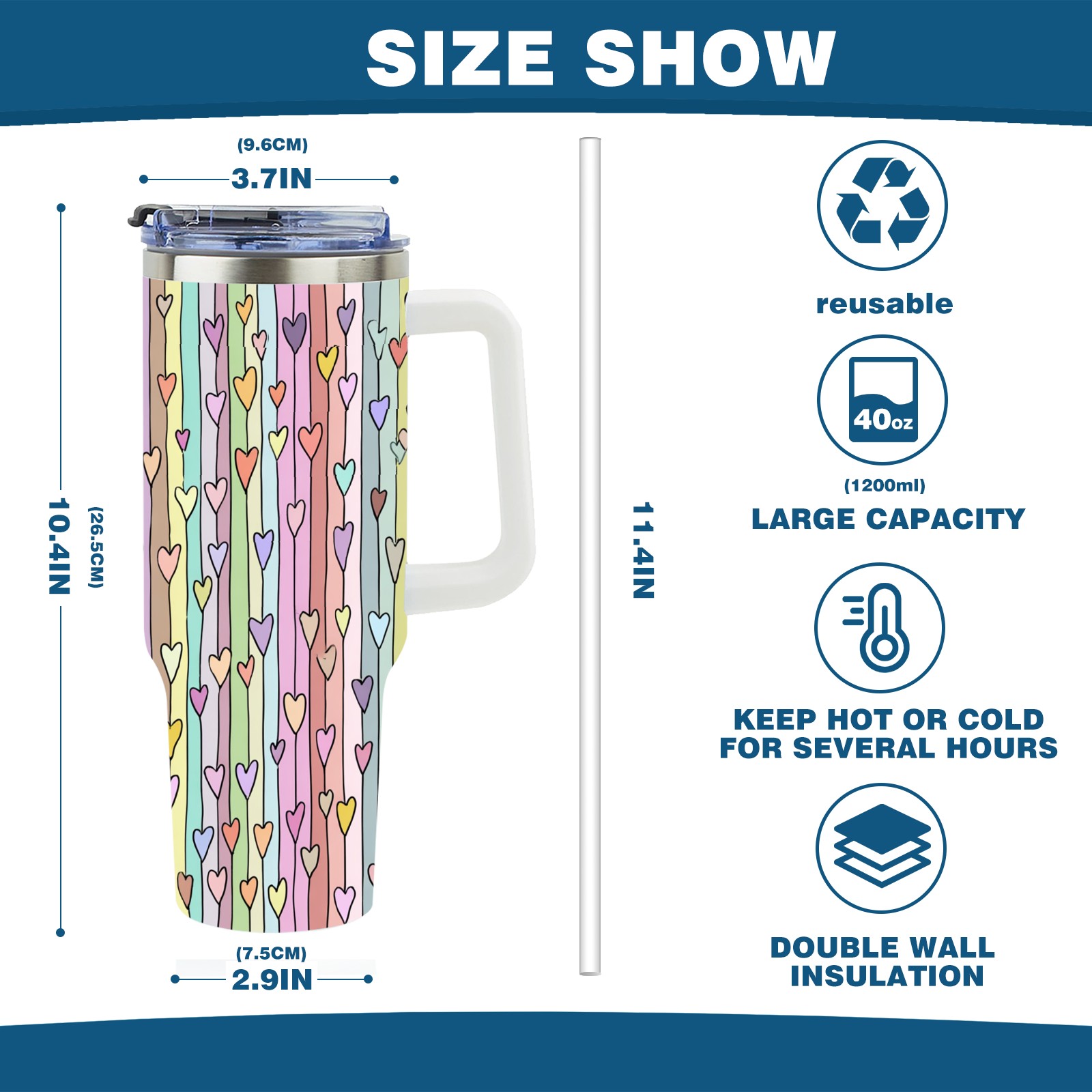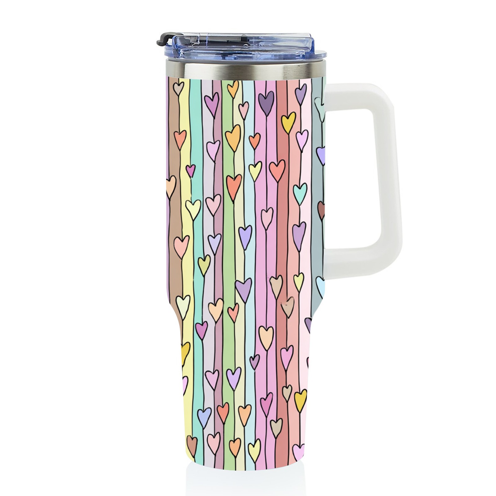 40 унций полностью напечатанный автомобильный стакан Stripe Heart Colorful