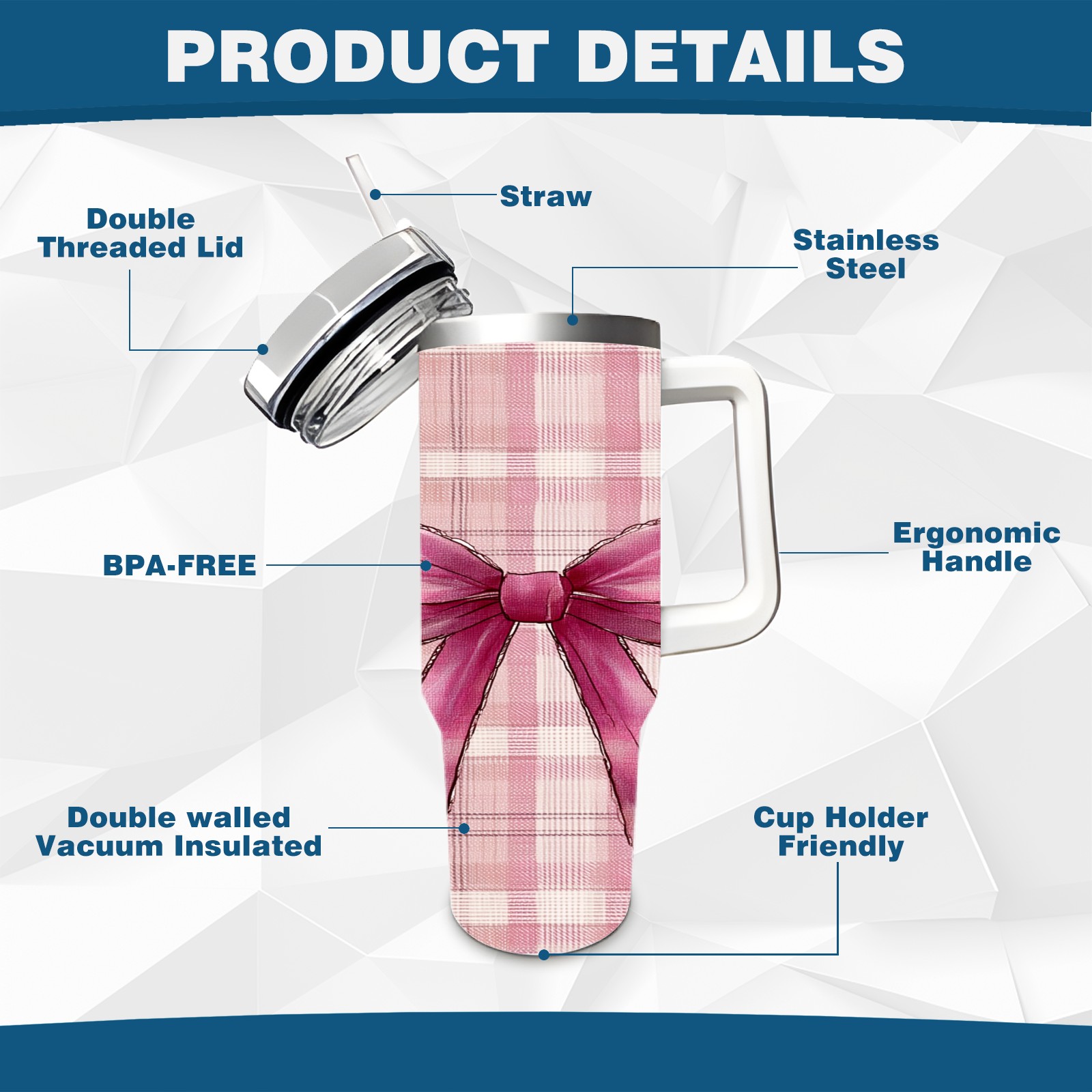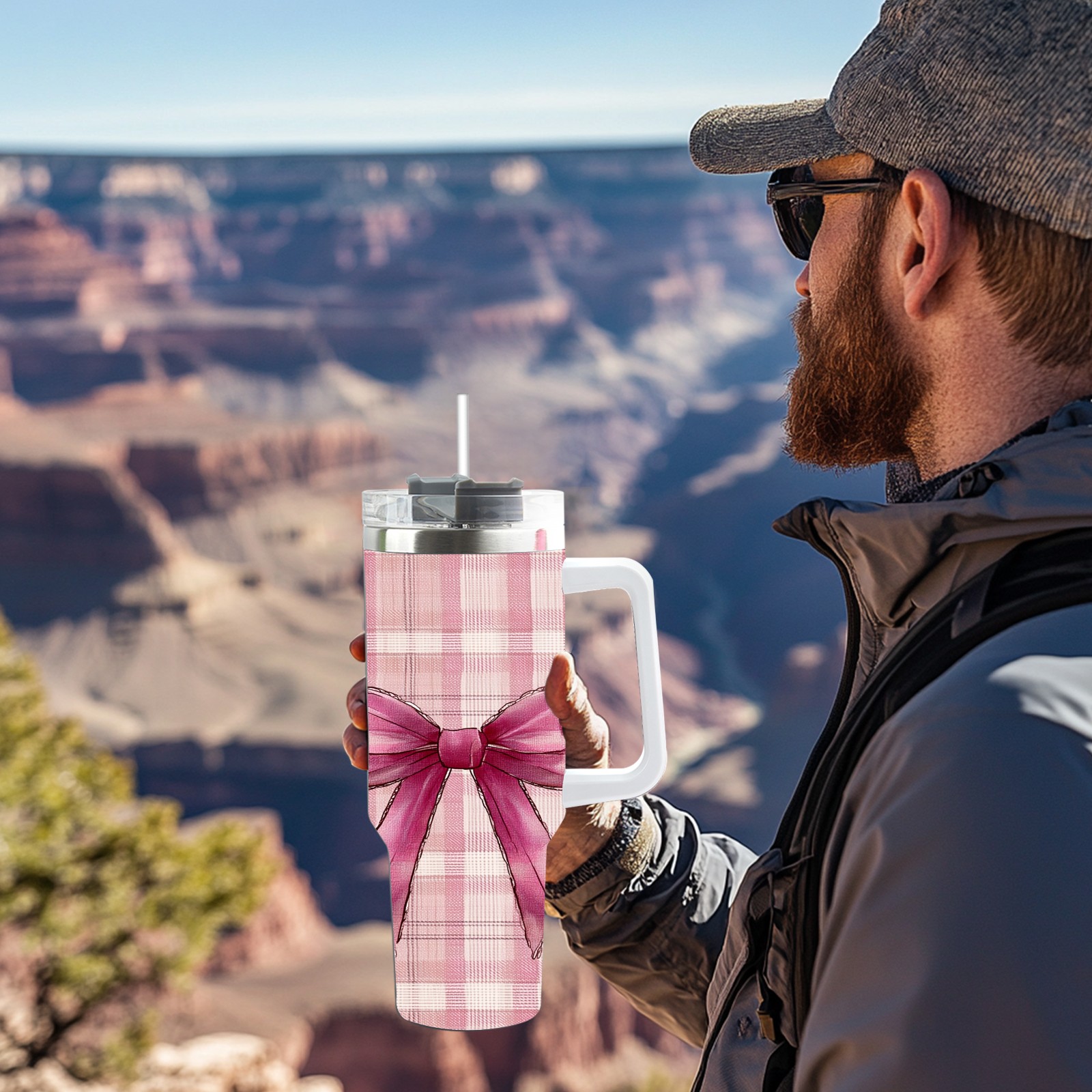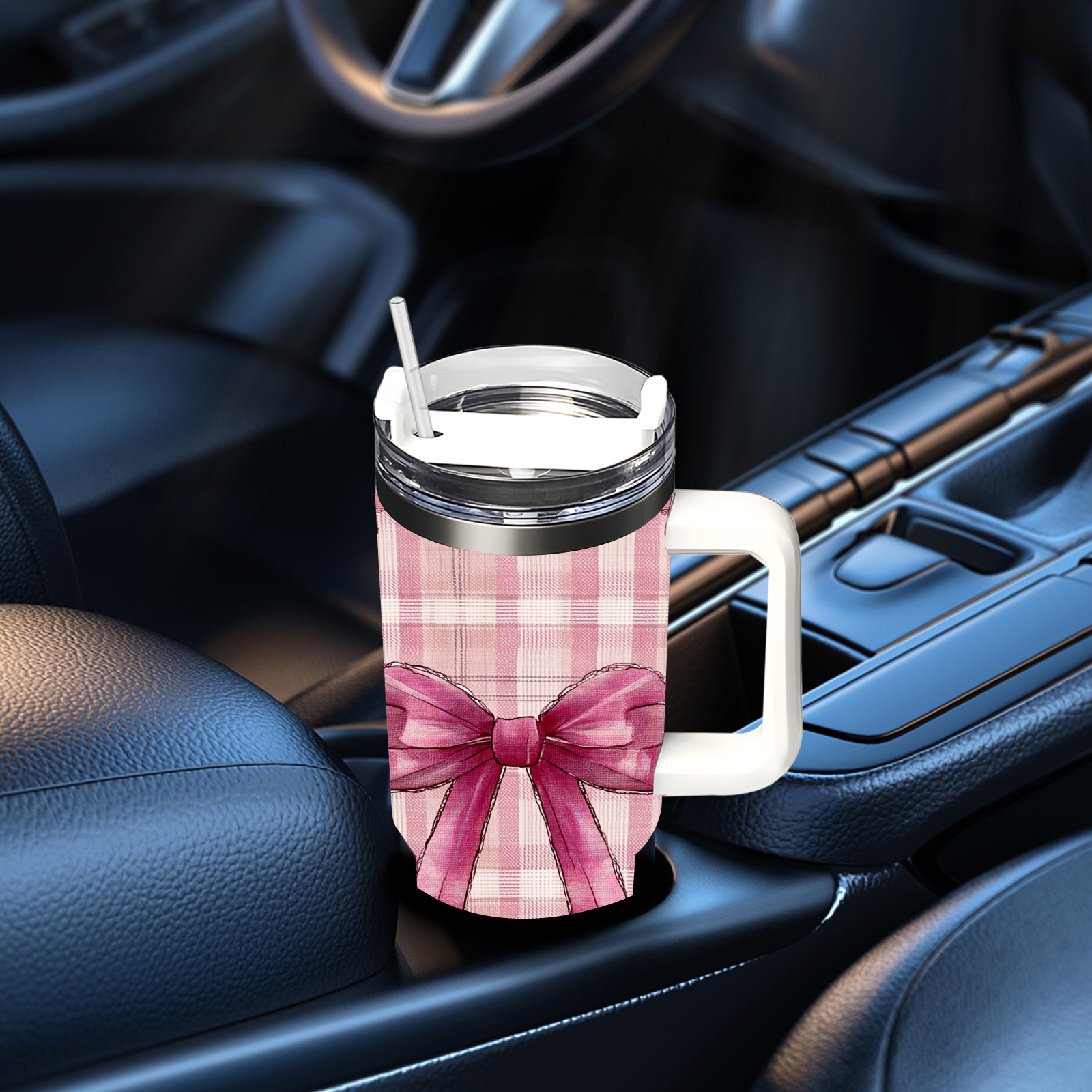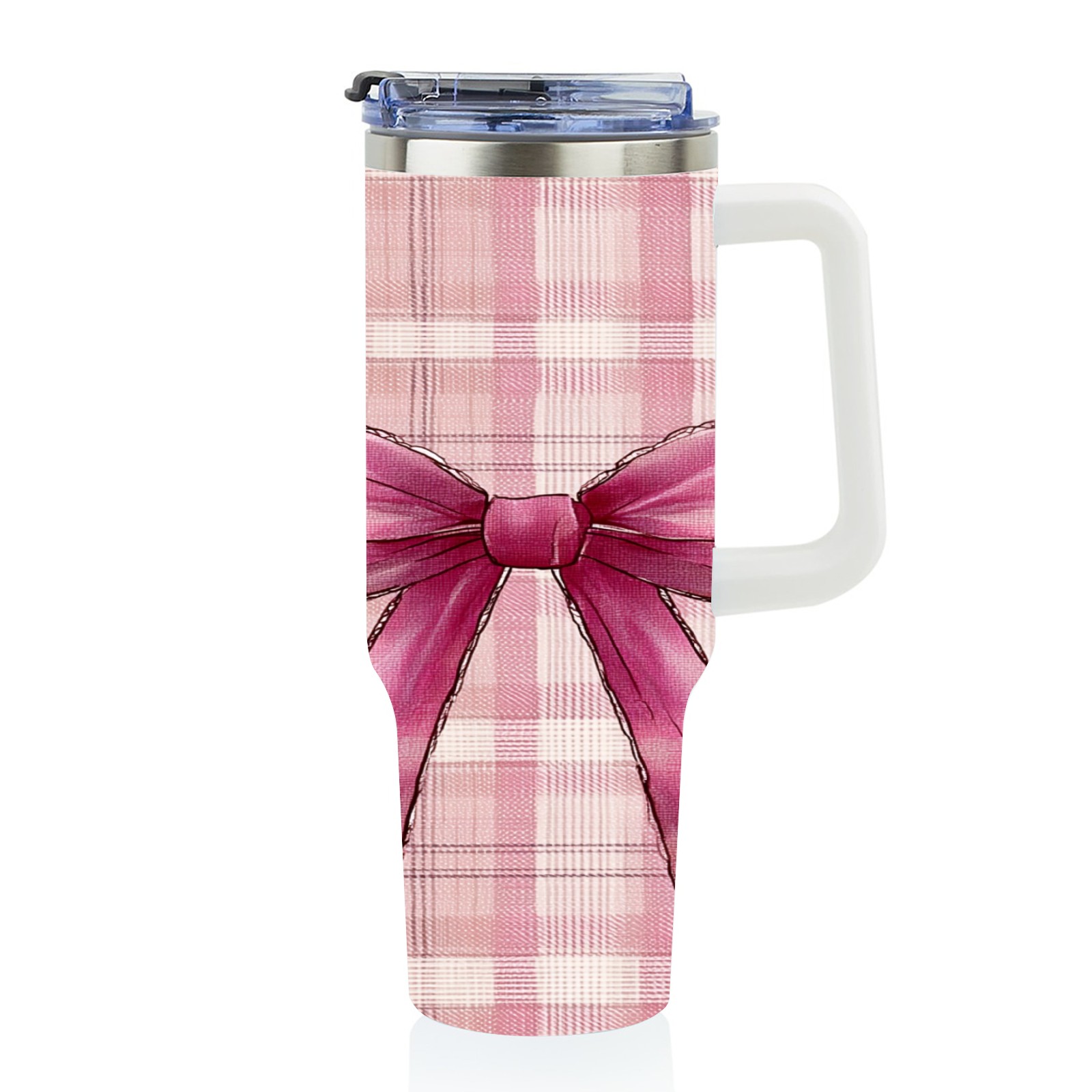40 унций полностью напечатанный автомобильный стакан Pink Plaid Bow Pink