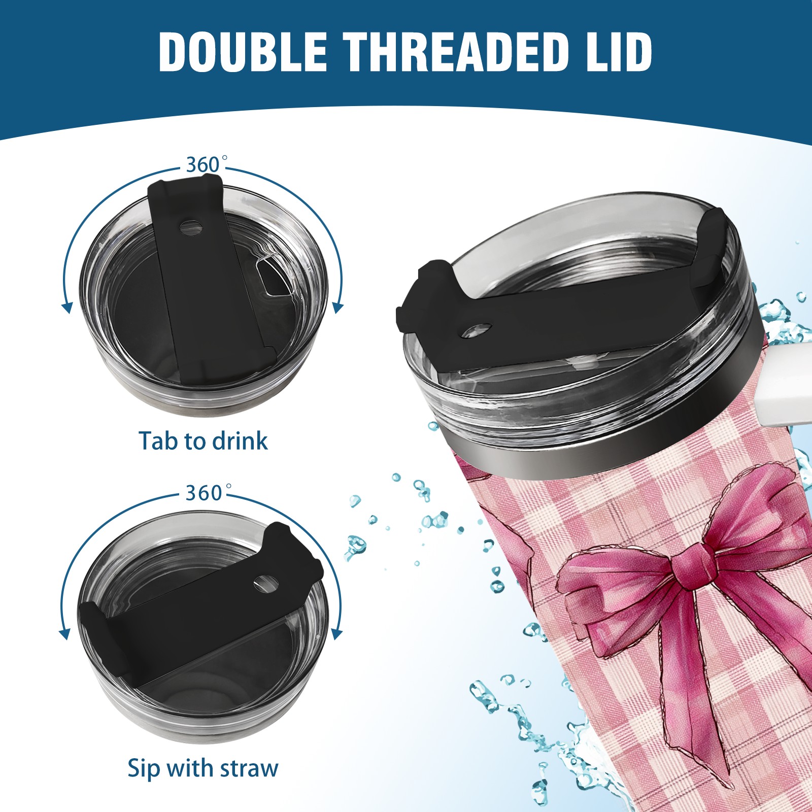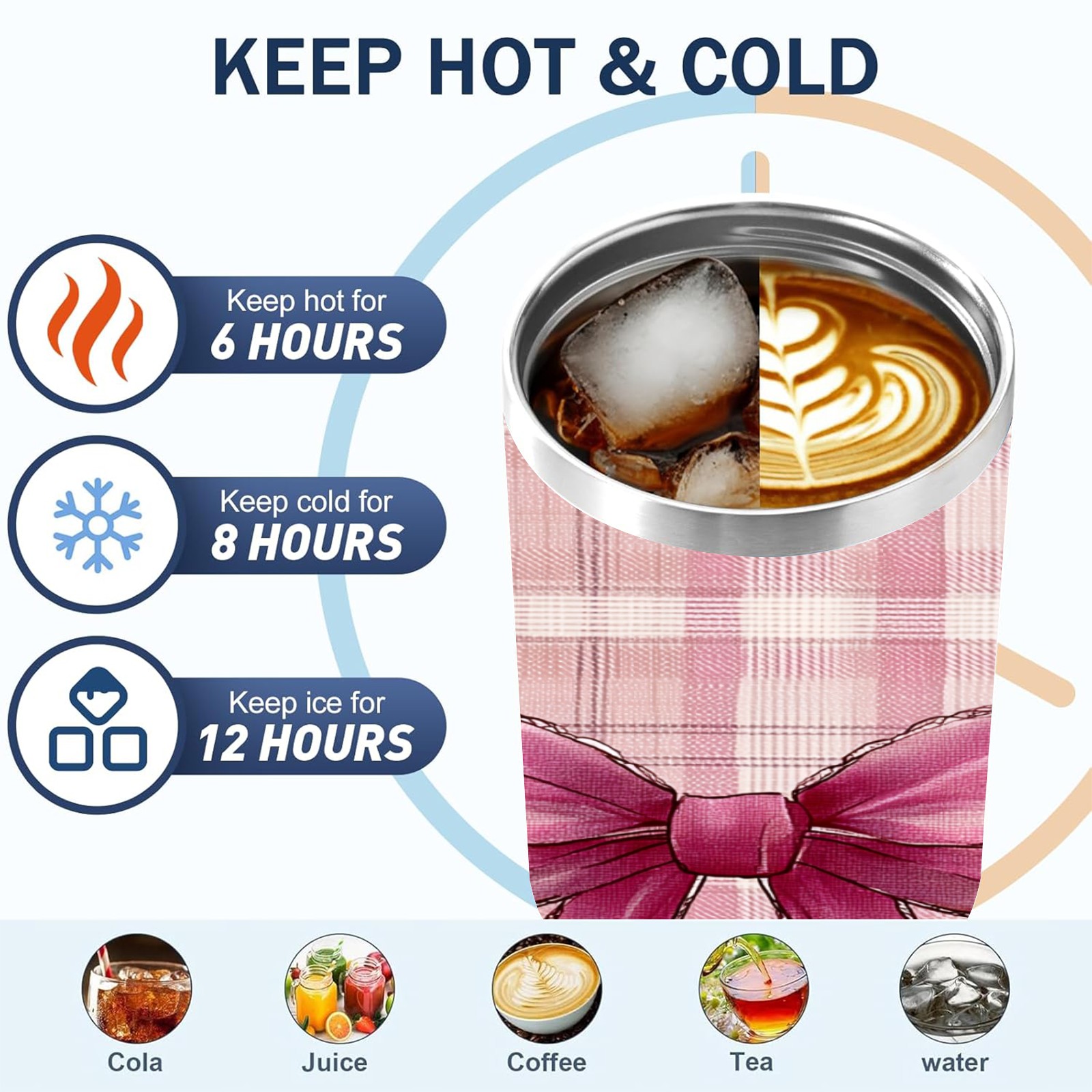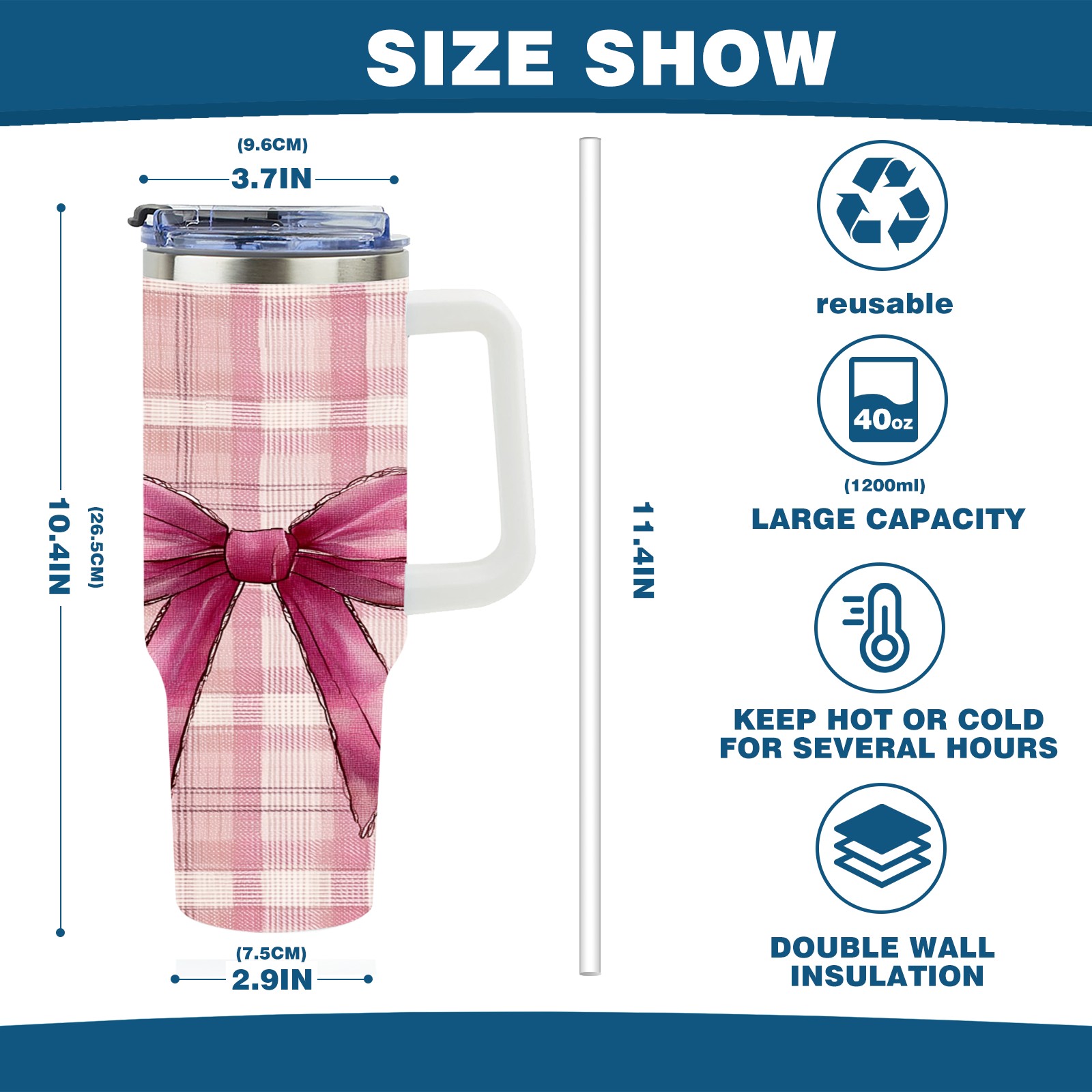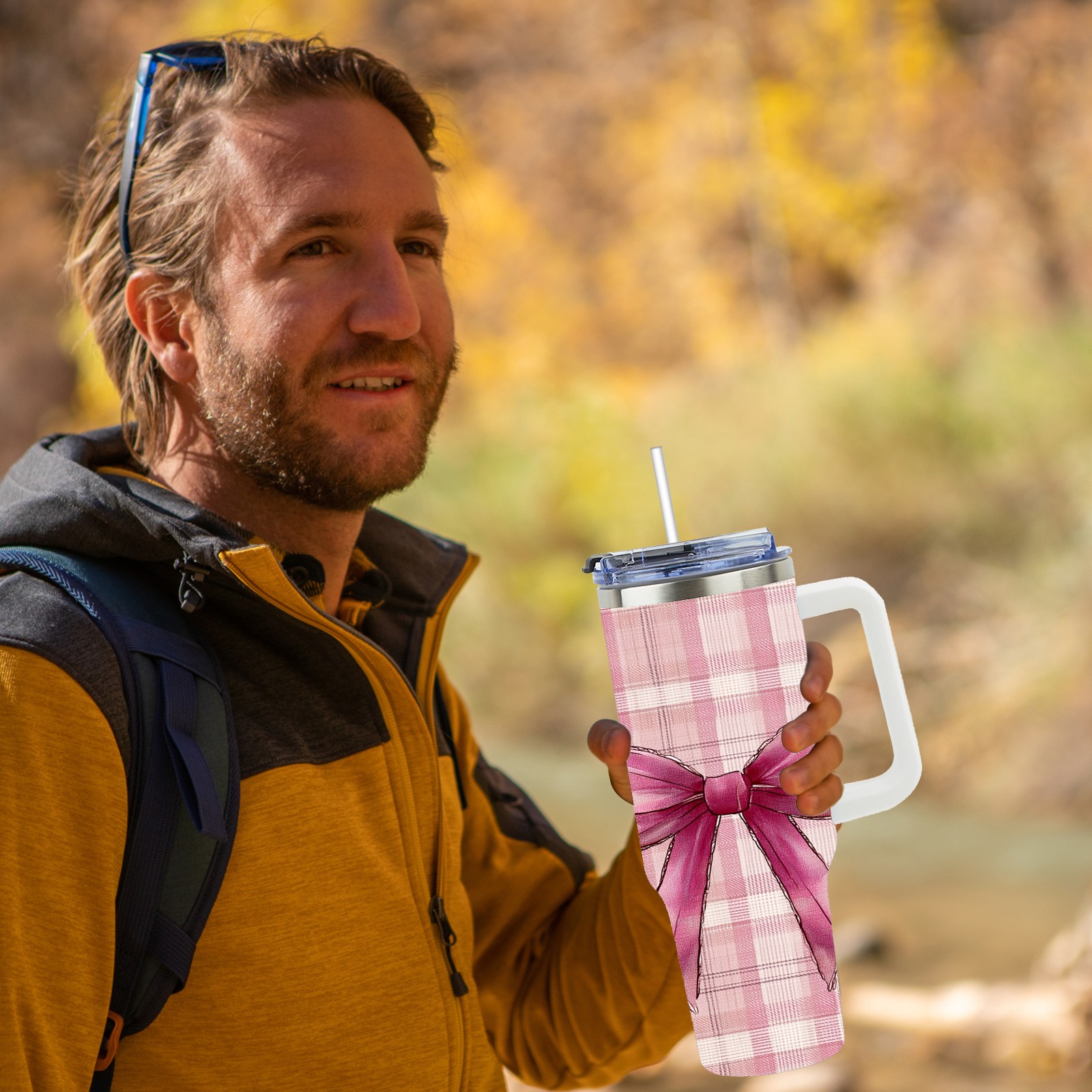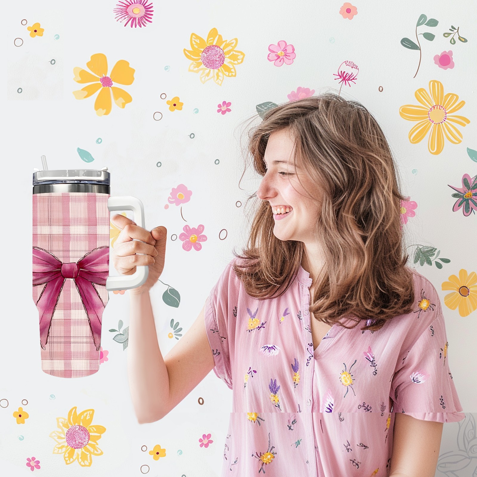 40 унций полностью напечатанный автомобильный стакан Pink Plaid Bow Pink