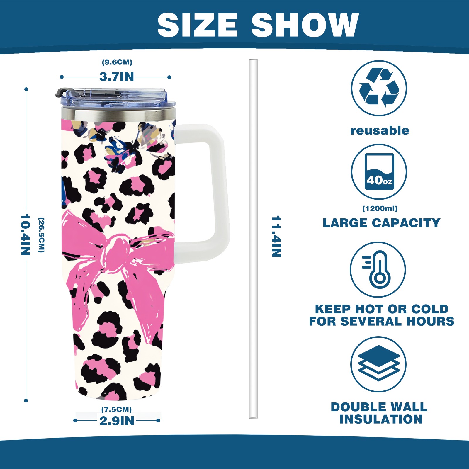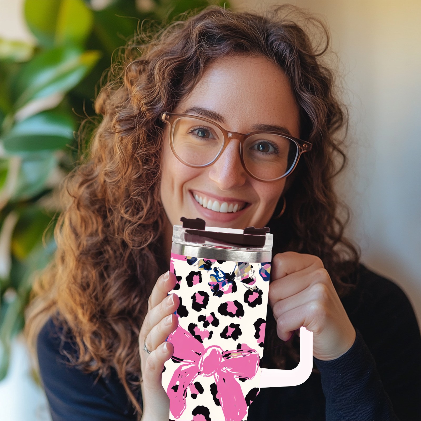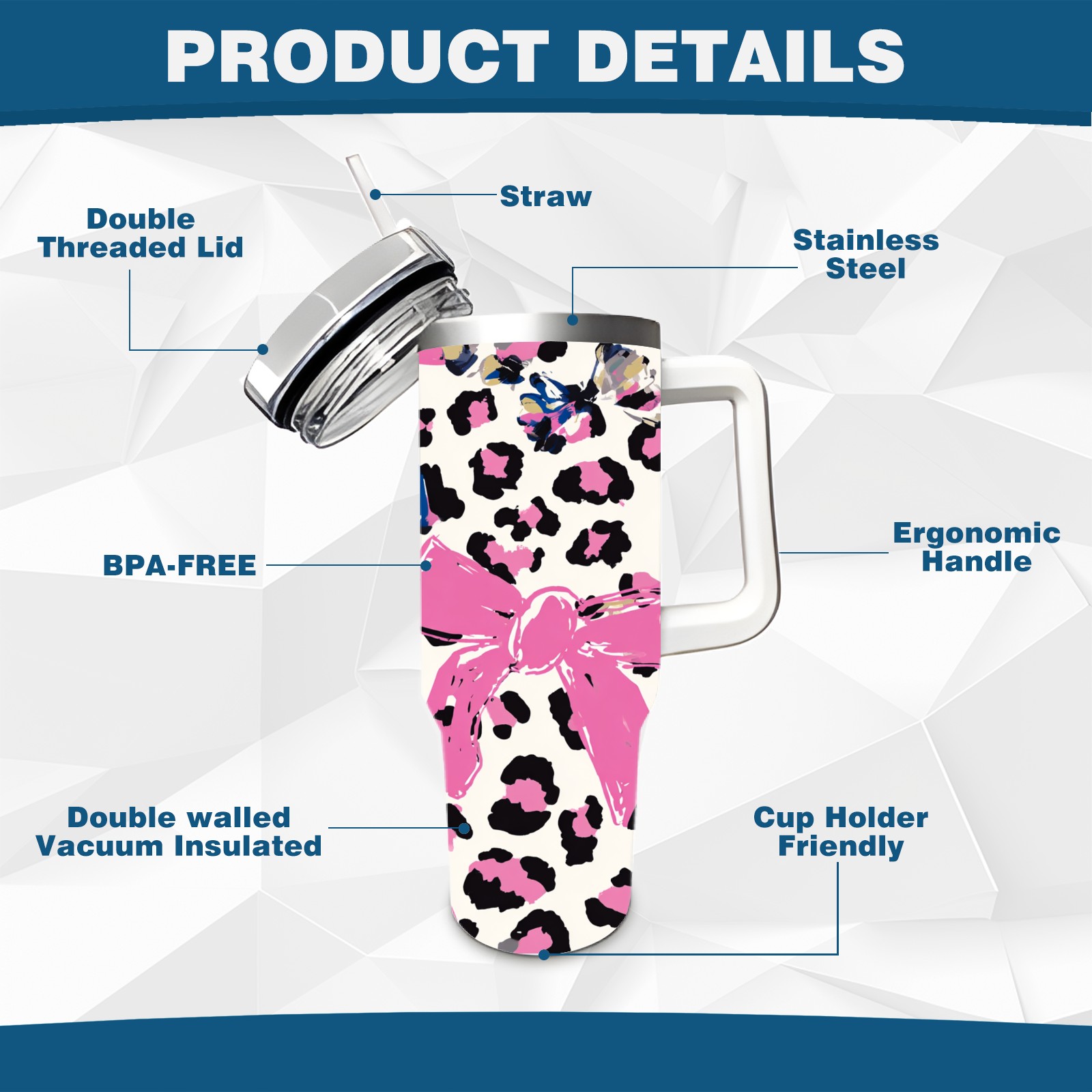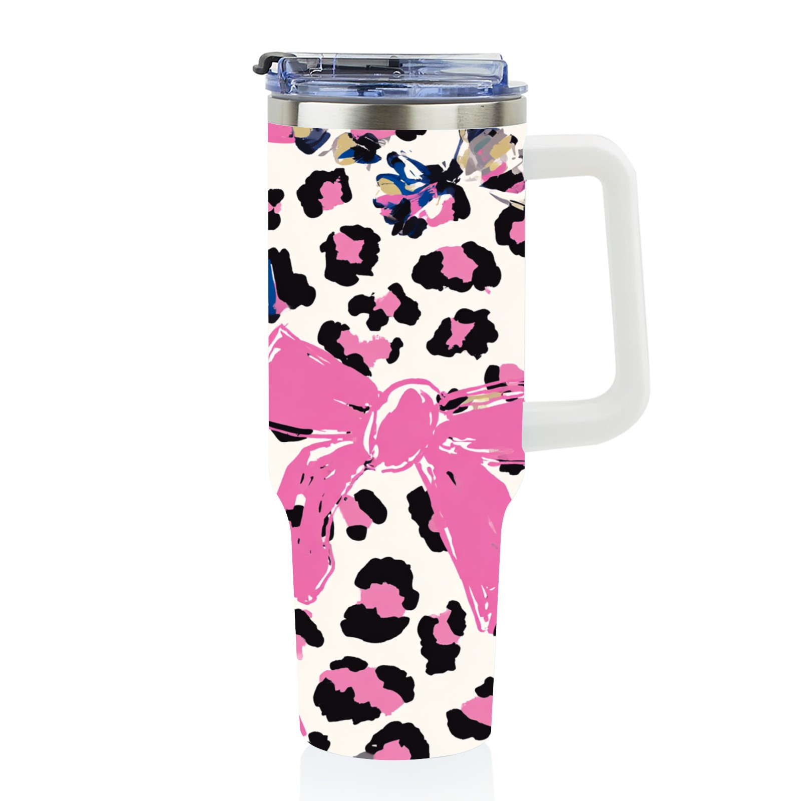 40 унций полностью напечатанный автомобильный стакан Leopard Bow Pink