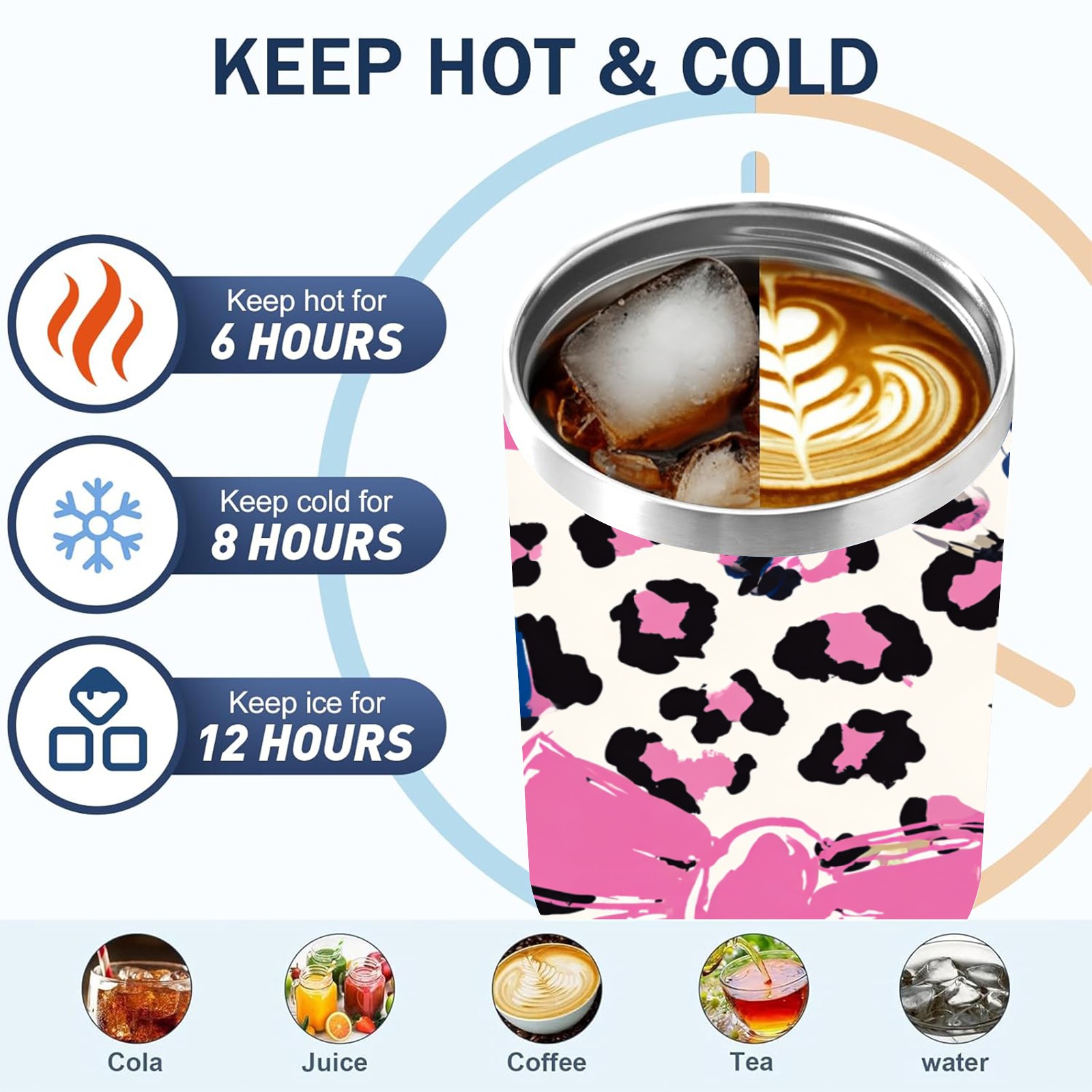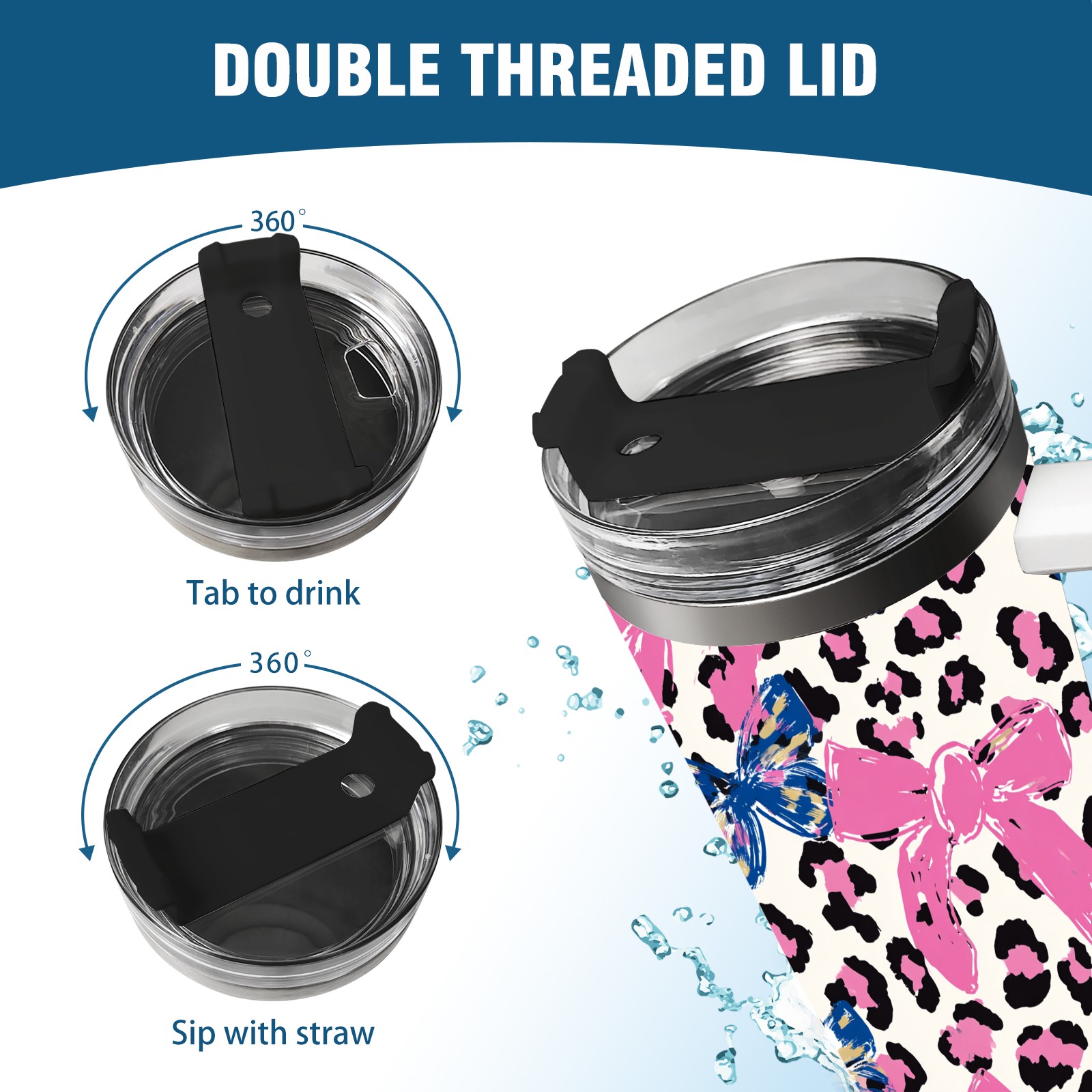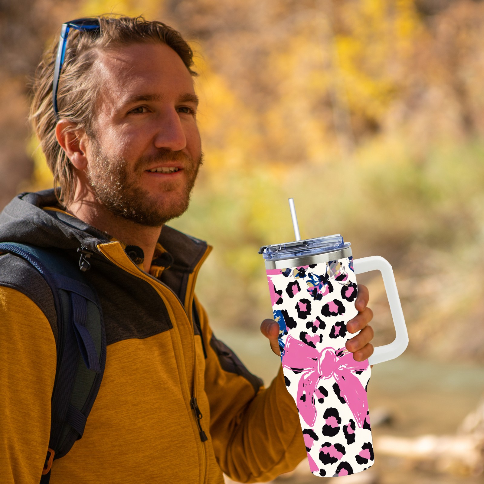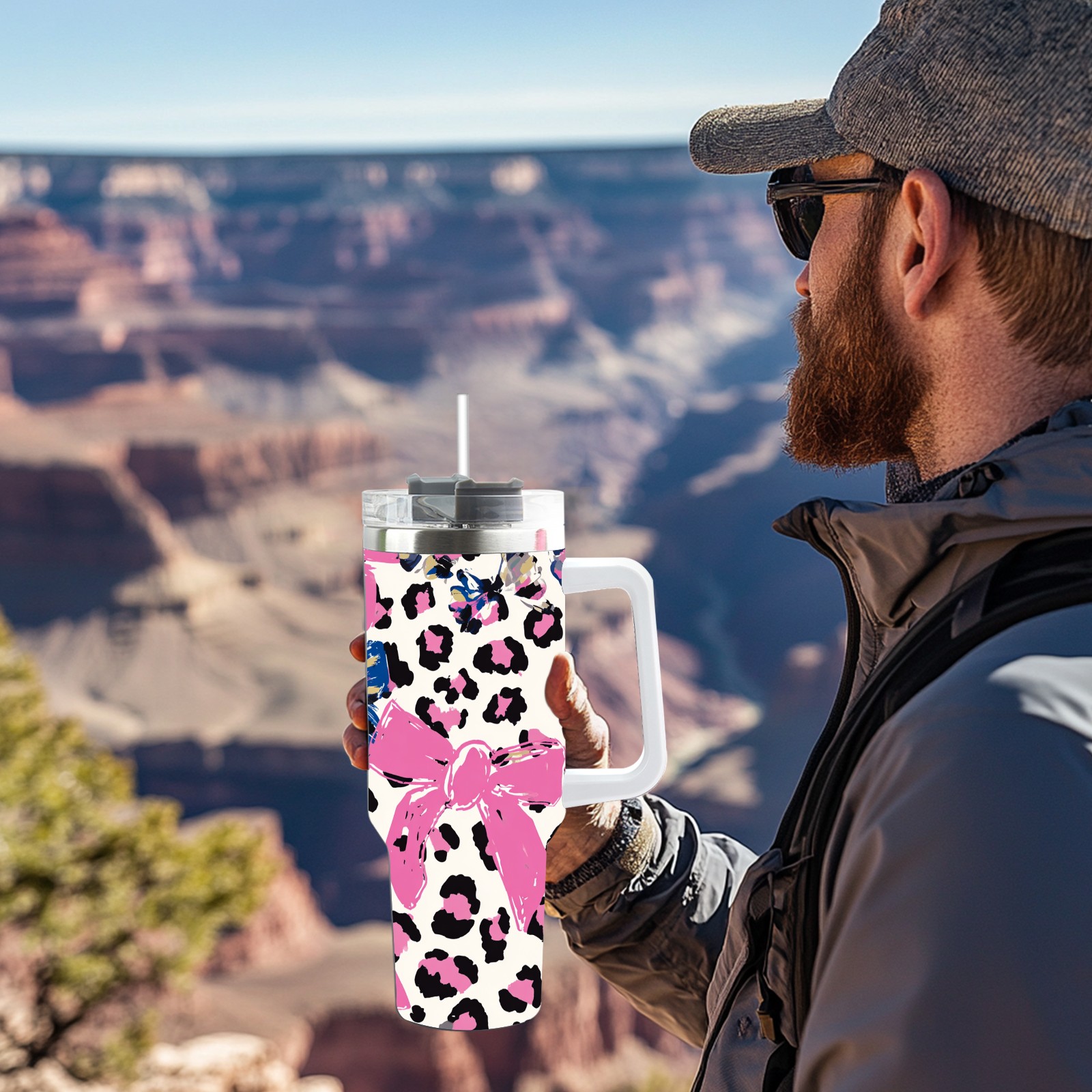 40 унций полностью напечатанный автомобильный стакан Leopard Bow Pink