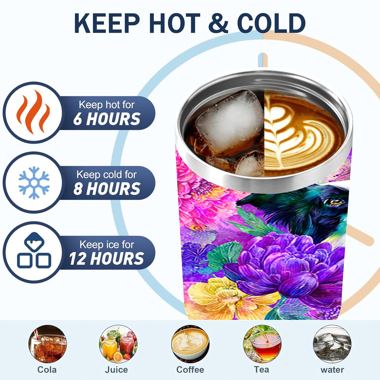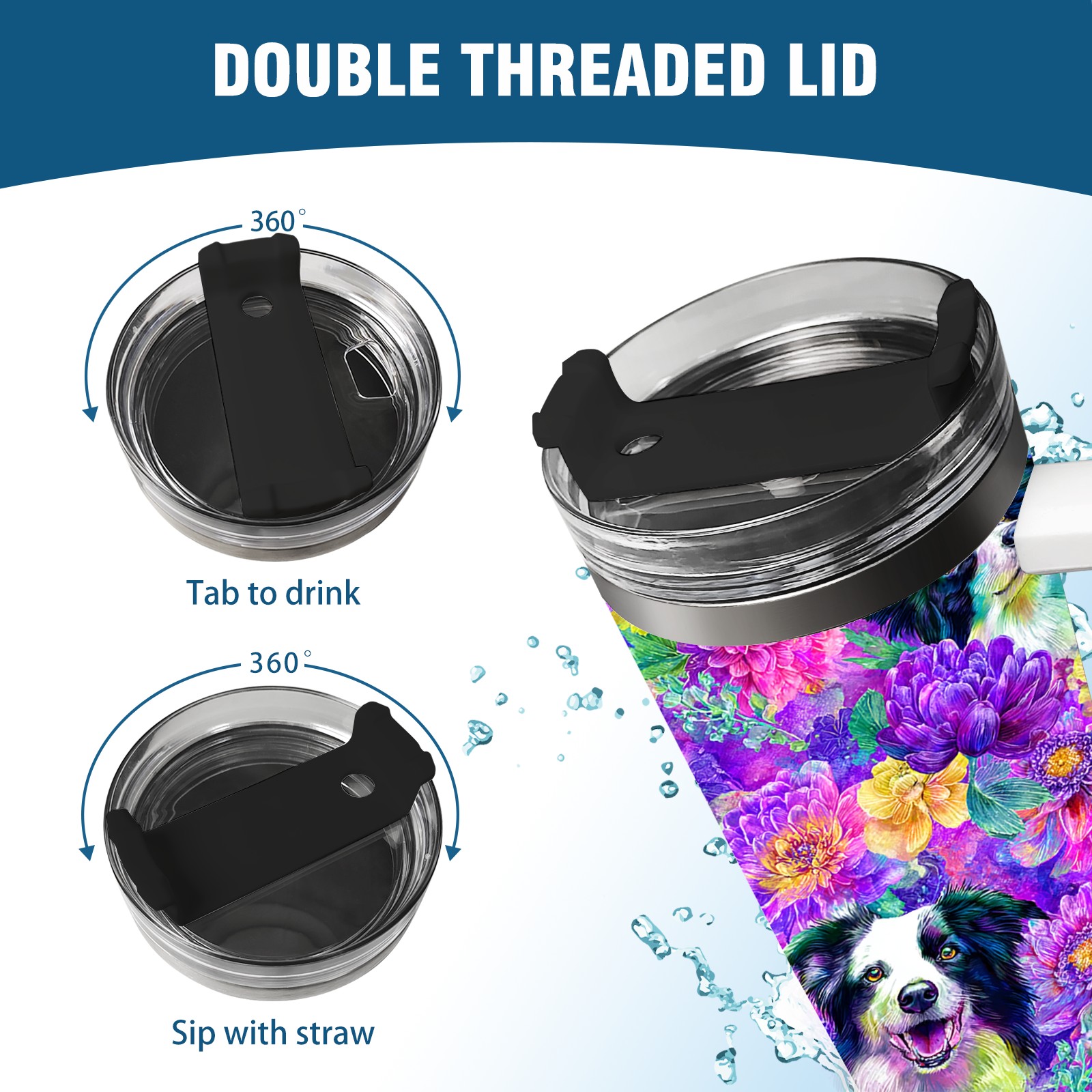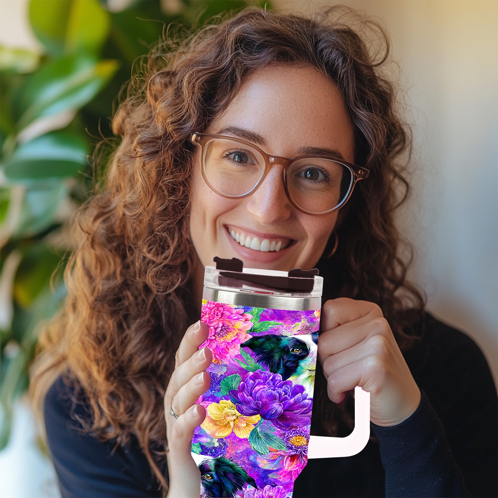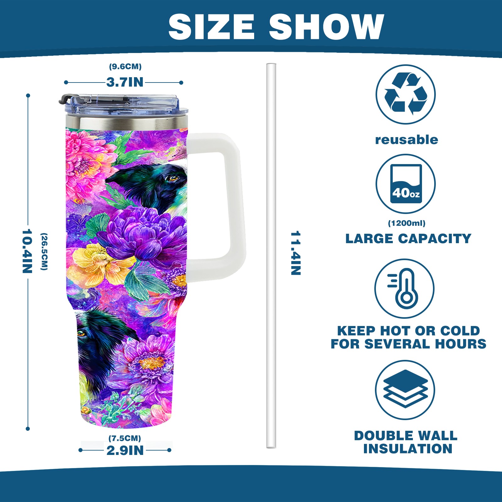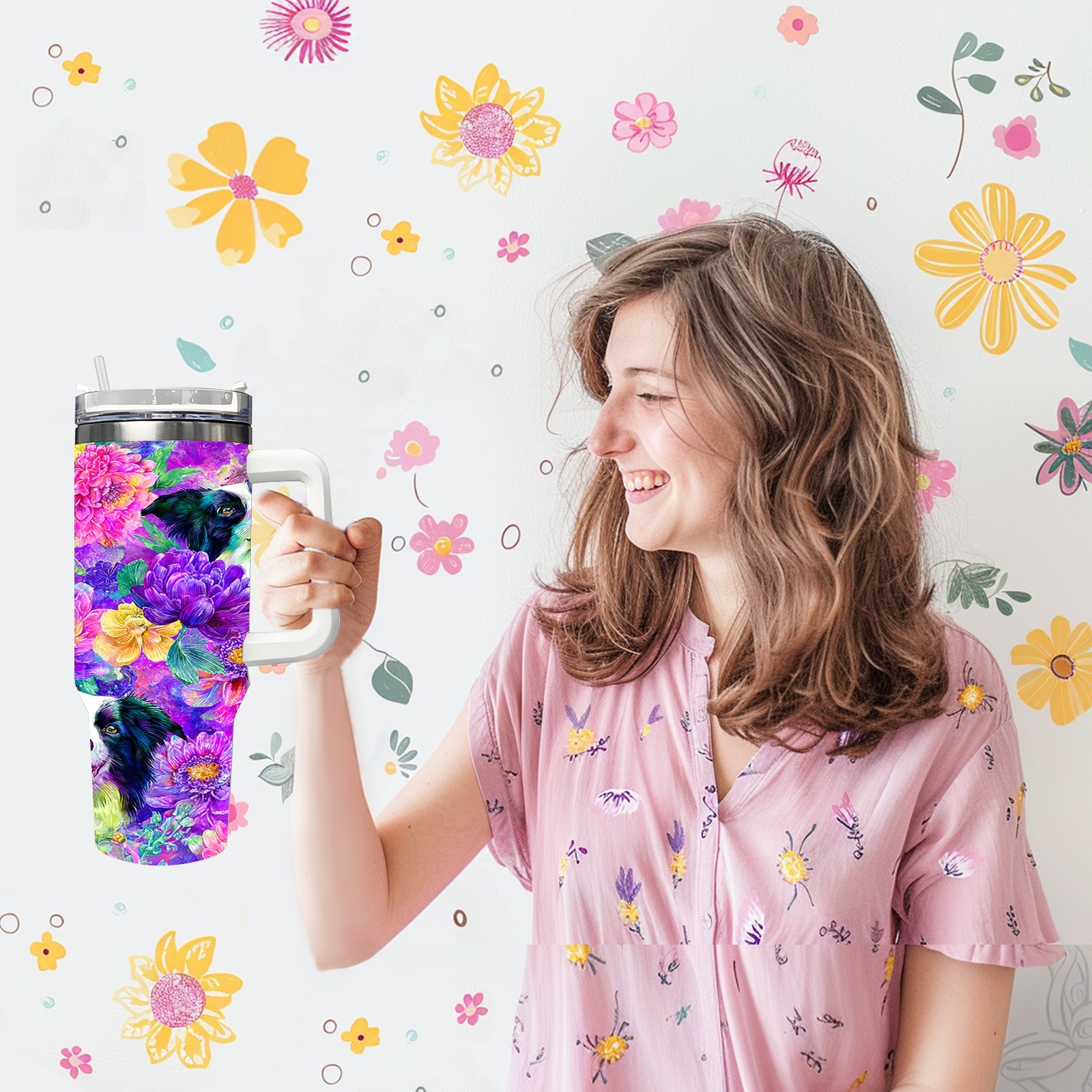 40 унций полностью напечатанный автомобильный стакан Dog Flower Multicolor
