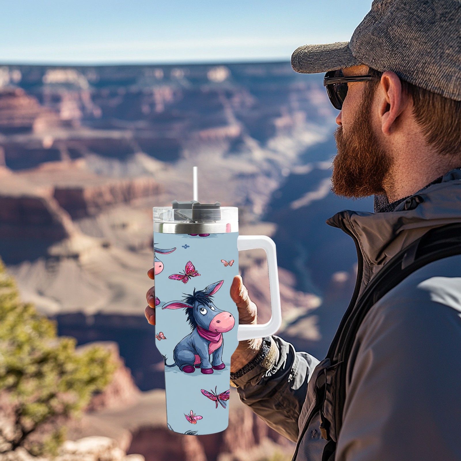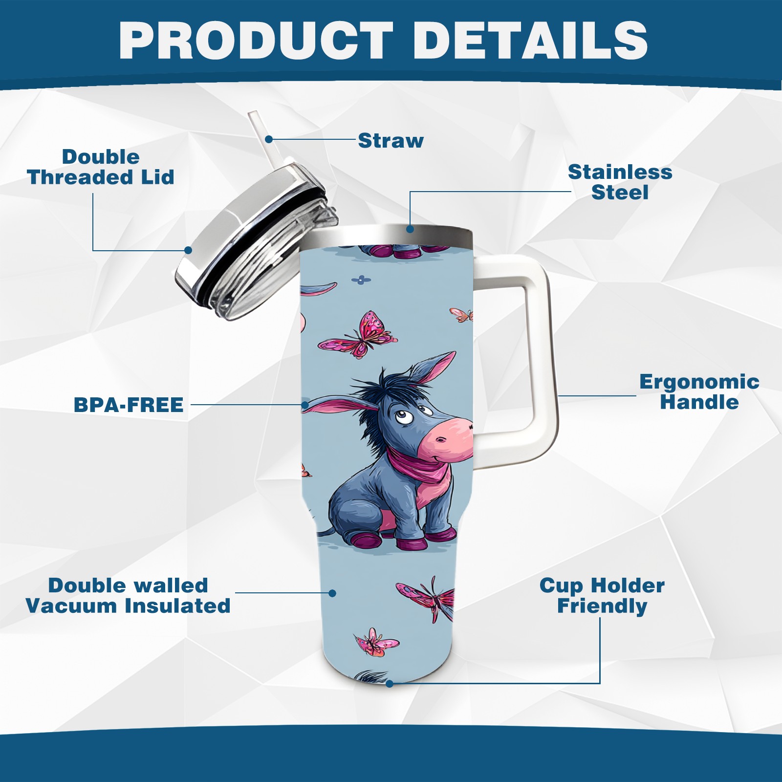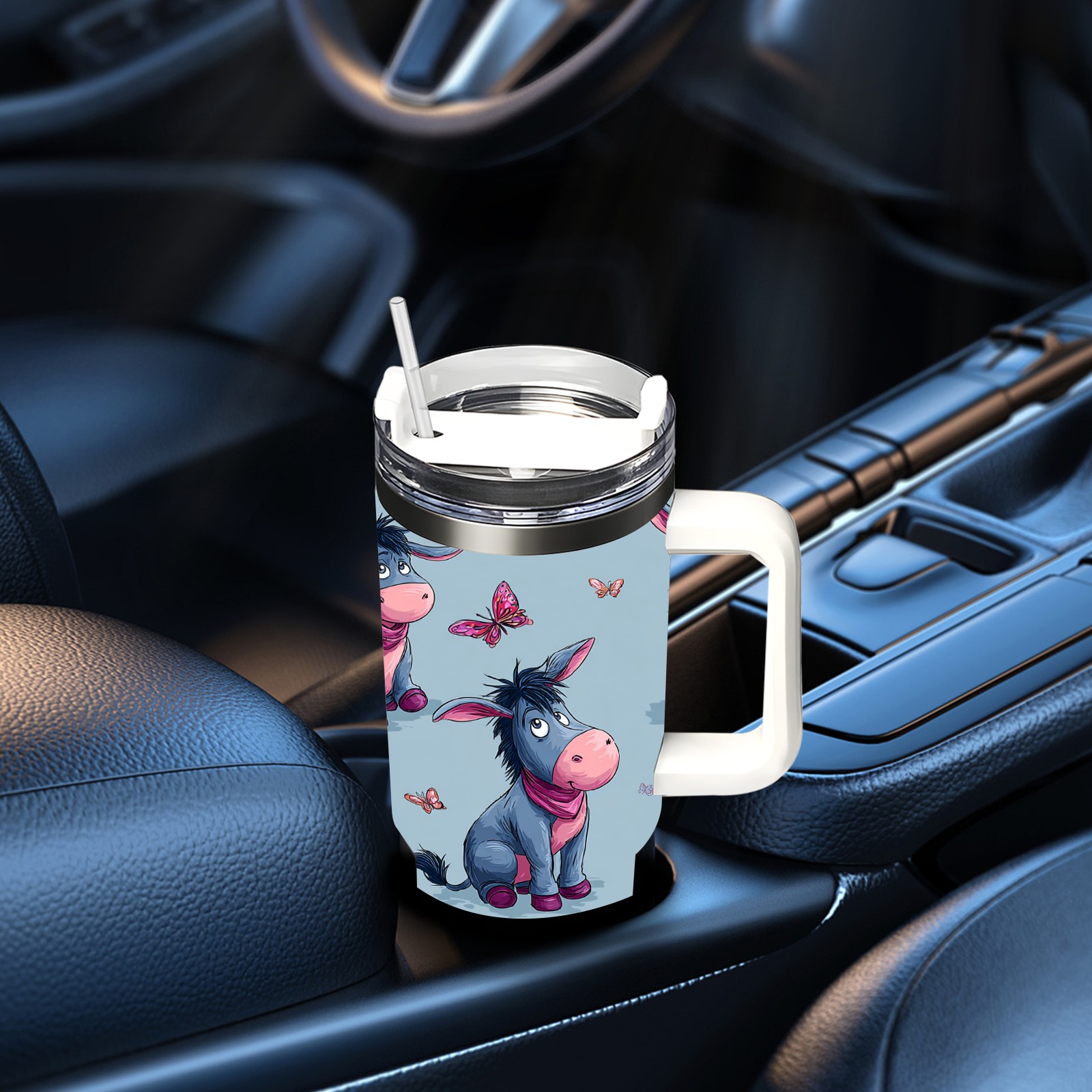 40 унций полностью напечатанный автомобильный стакан Donkey Butterfly Blue