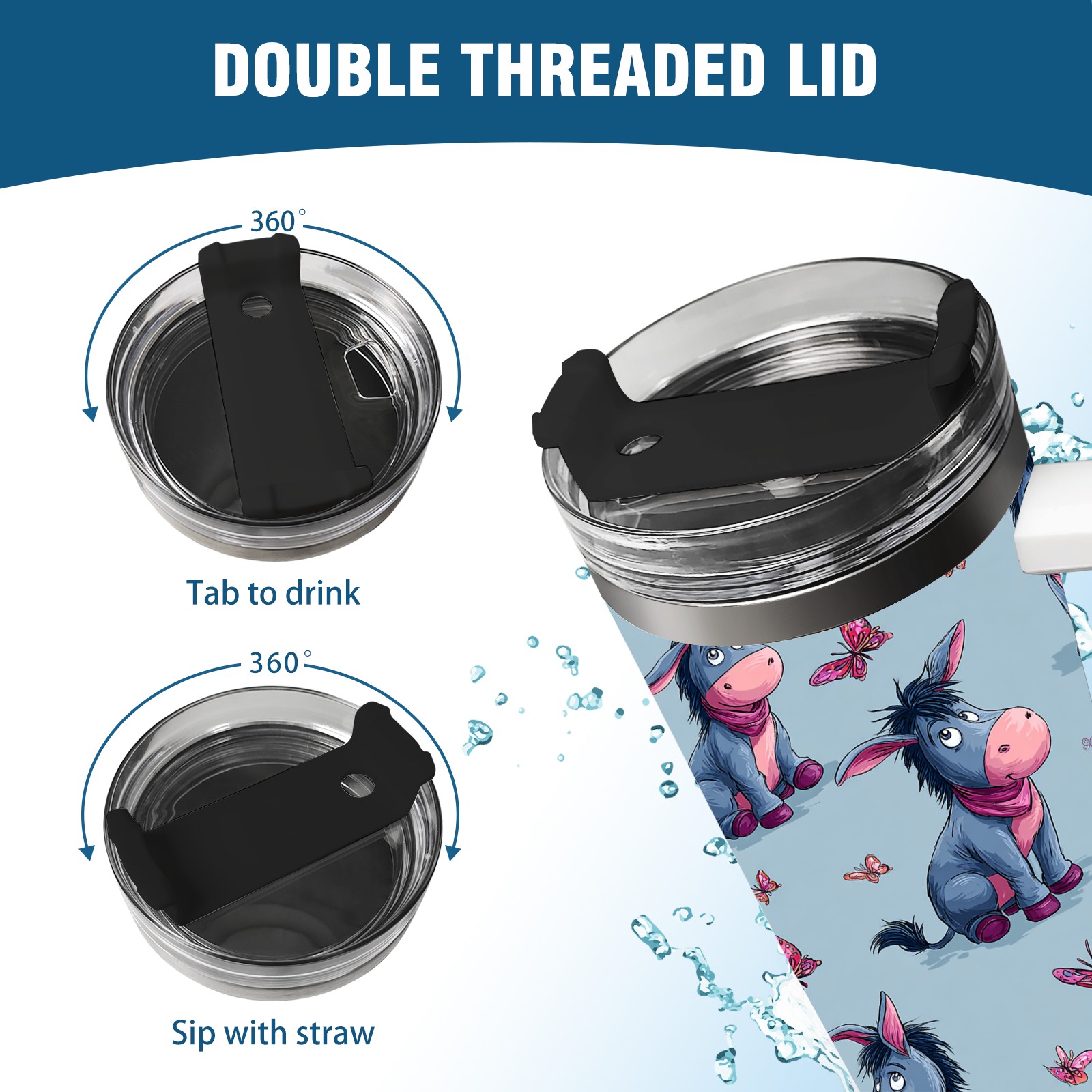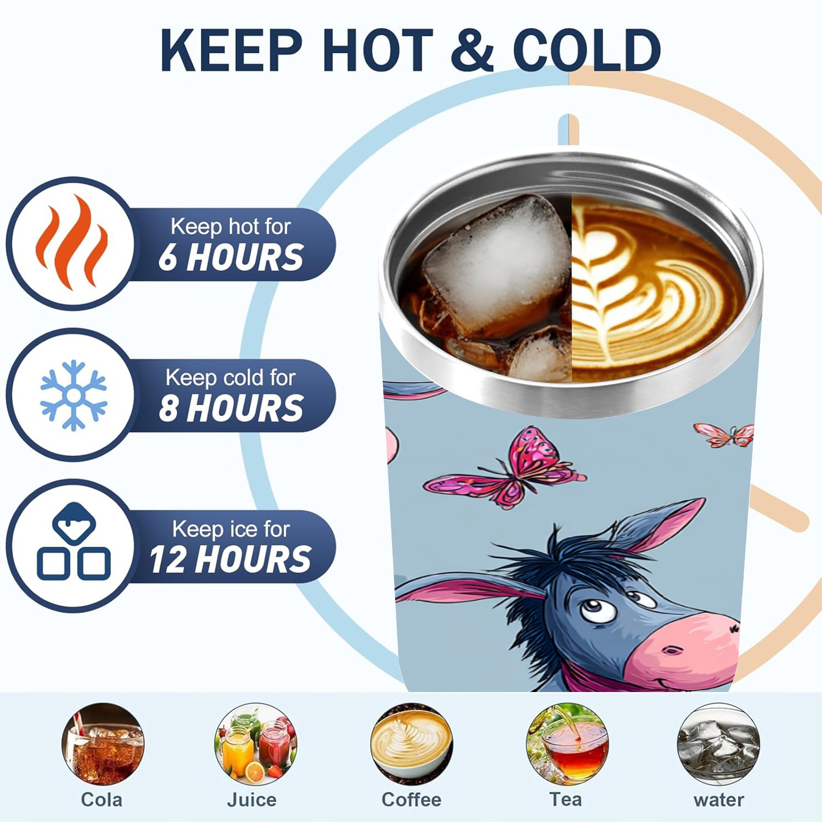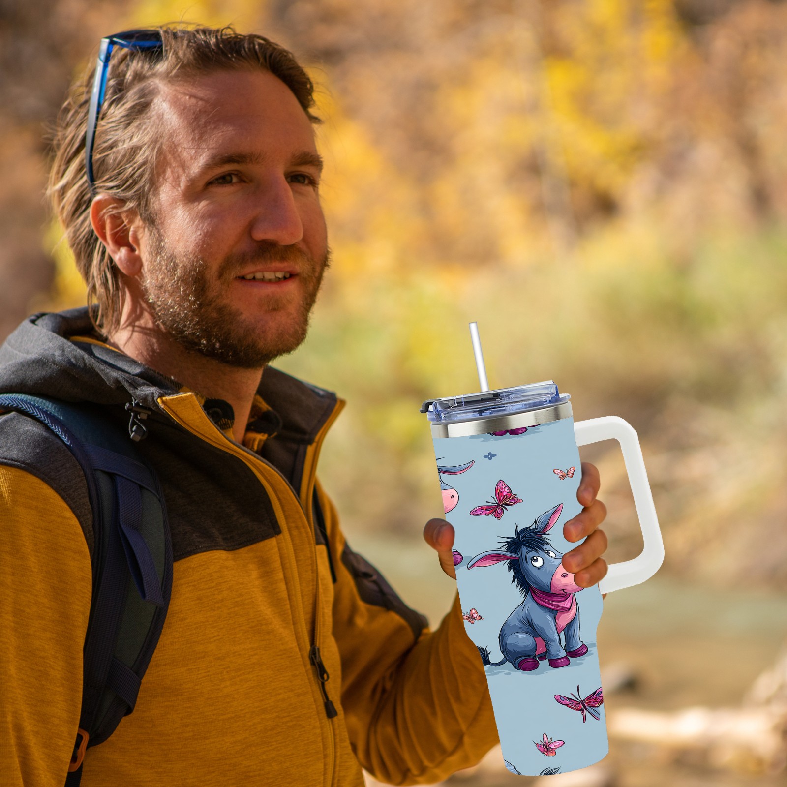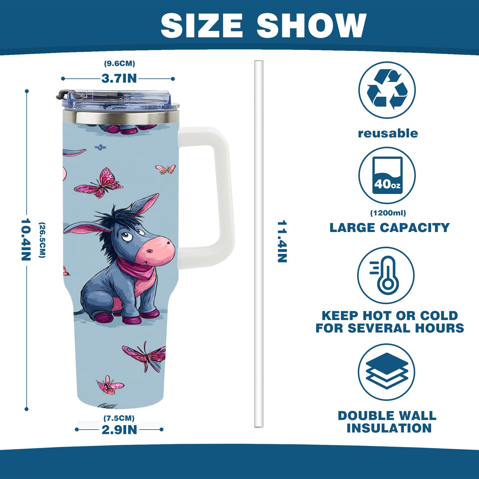 40 унций полностью напечатанный автомобильный стакан Donkey Butterfly Blue