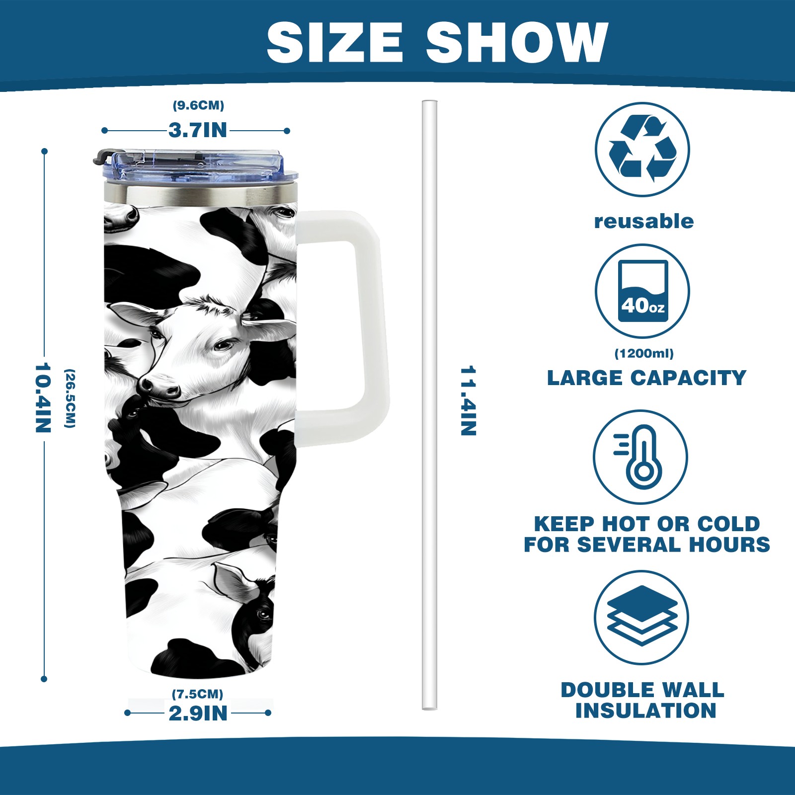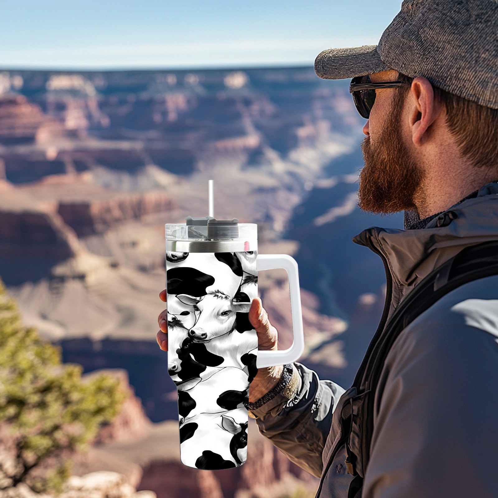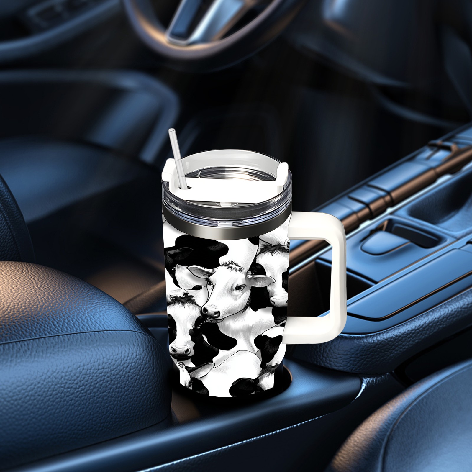 40 унций полностью напечатанный автомобильный стакан Trendy Black White Cow