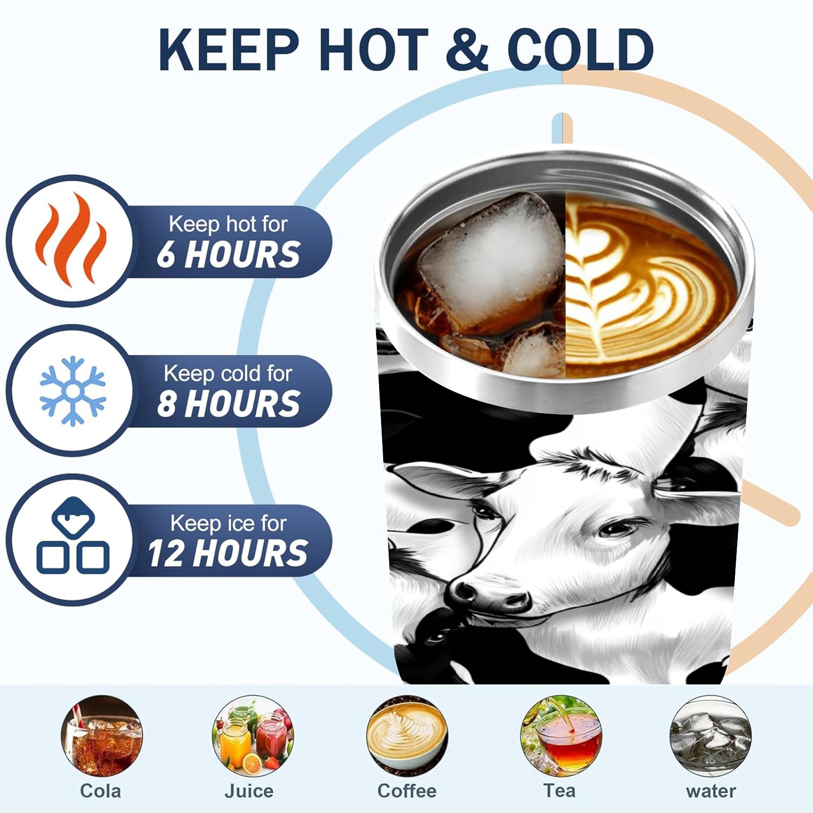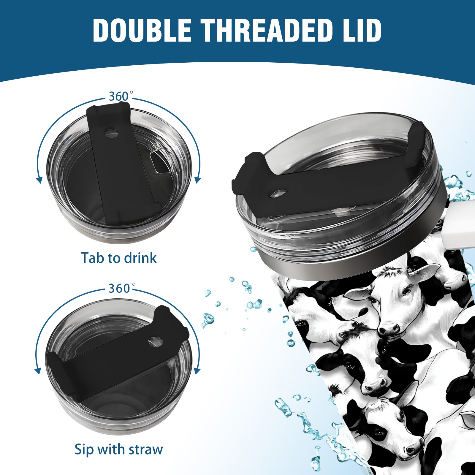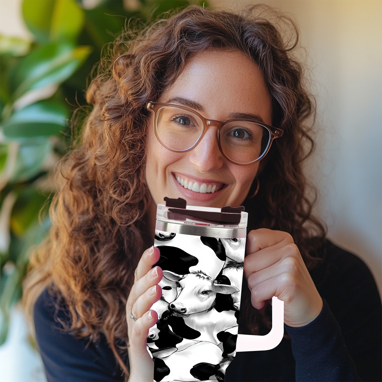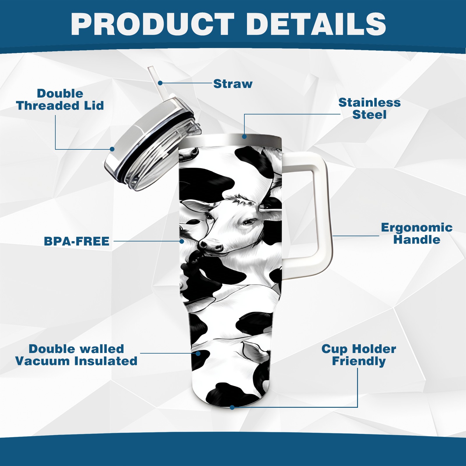 40 унций полностью напечатанный автомобильный стакан Trendy Black White Cow