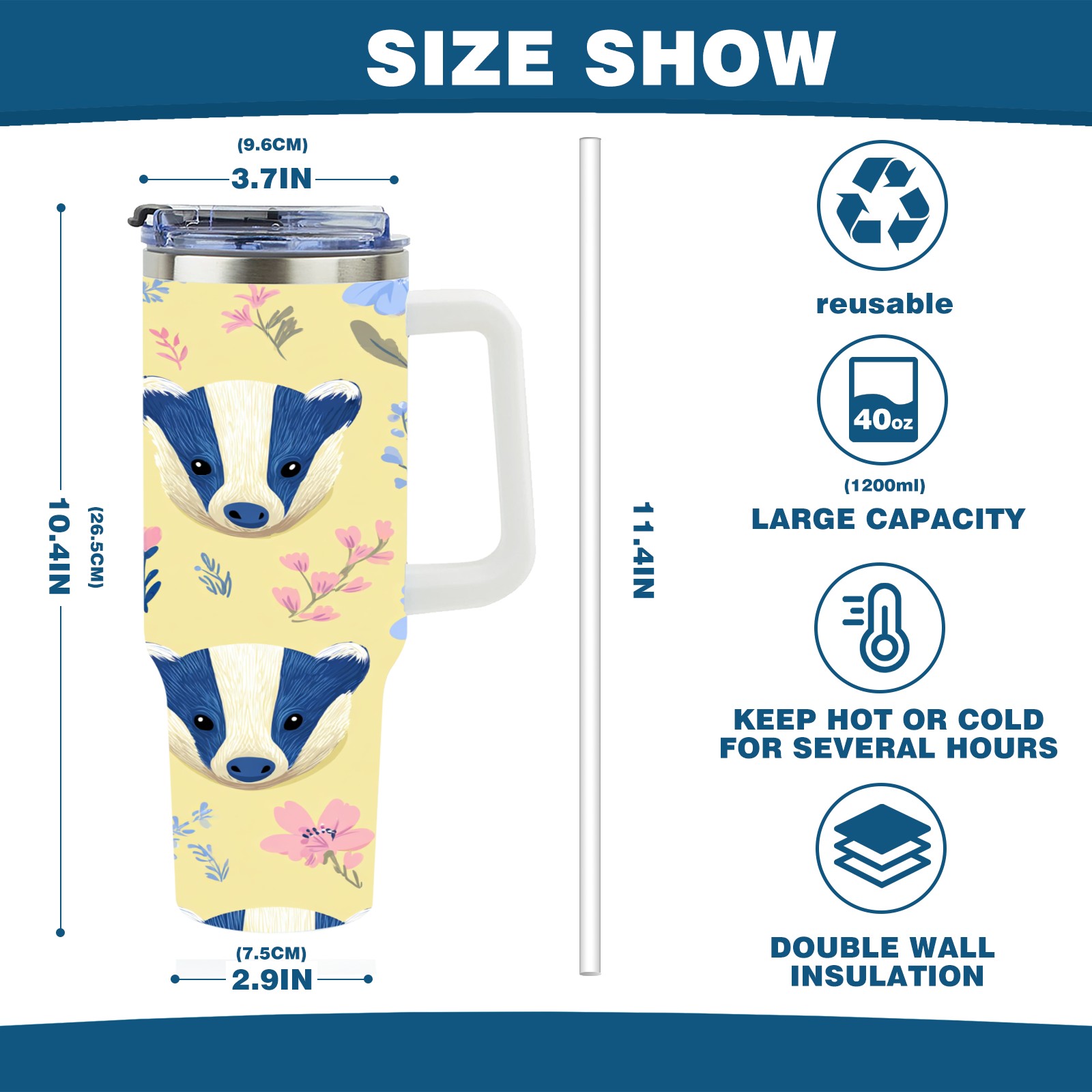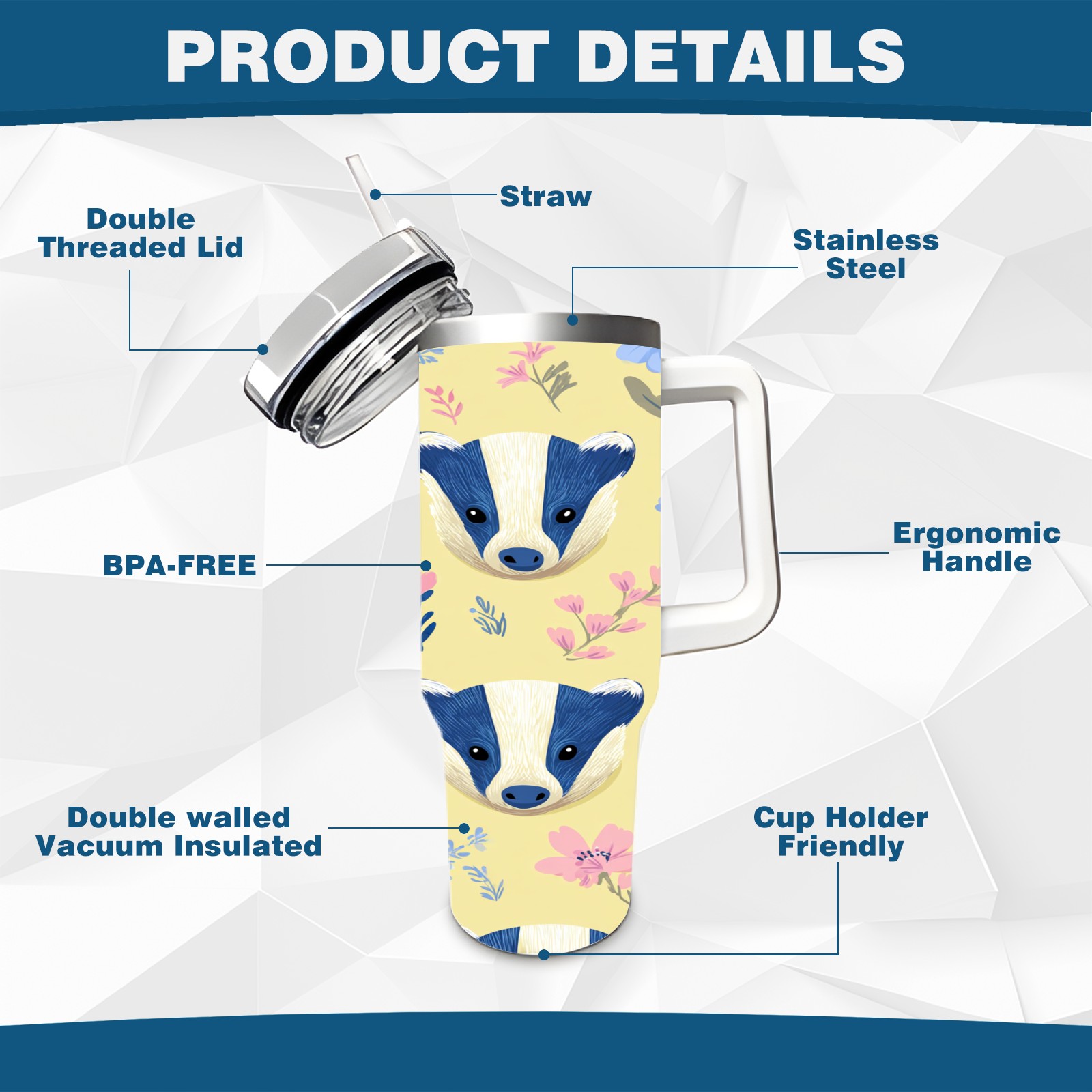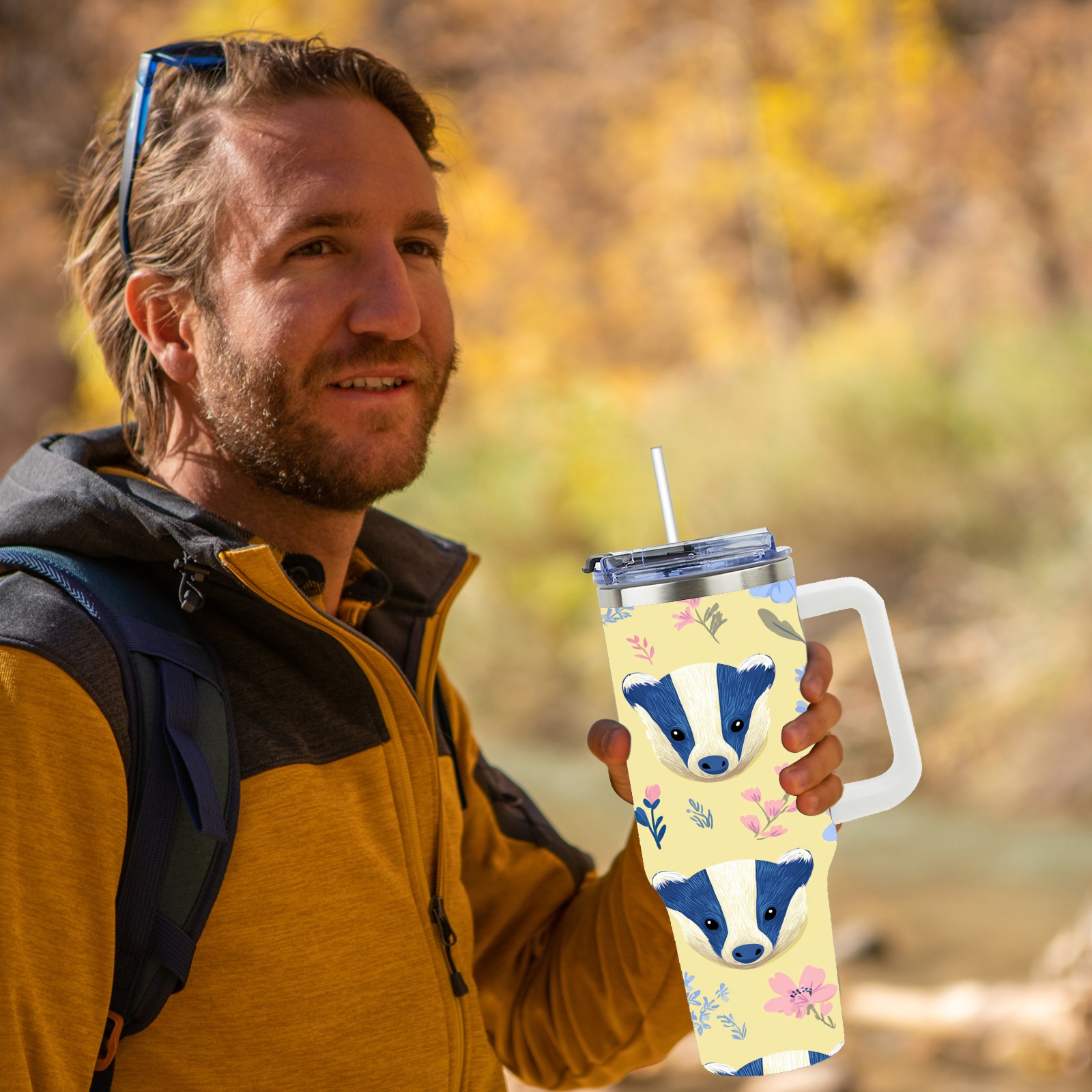40 унций полностью напечатанный автомобильный стакан Cute Badger Yellow