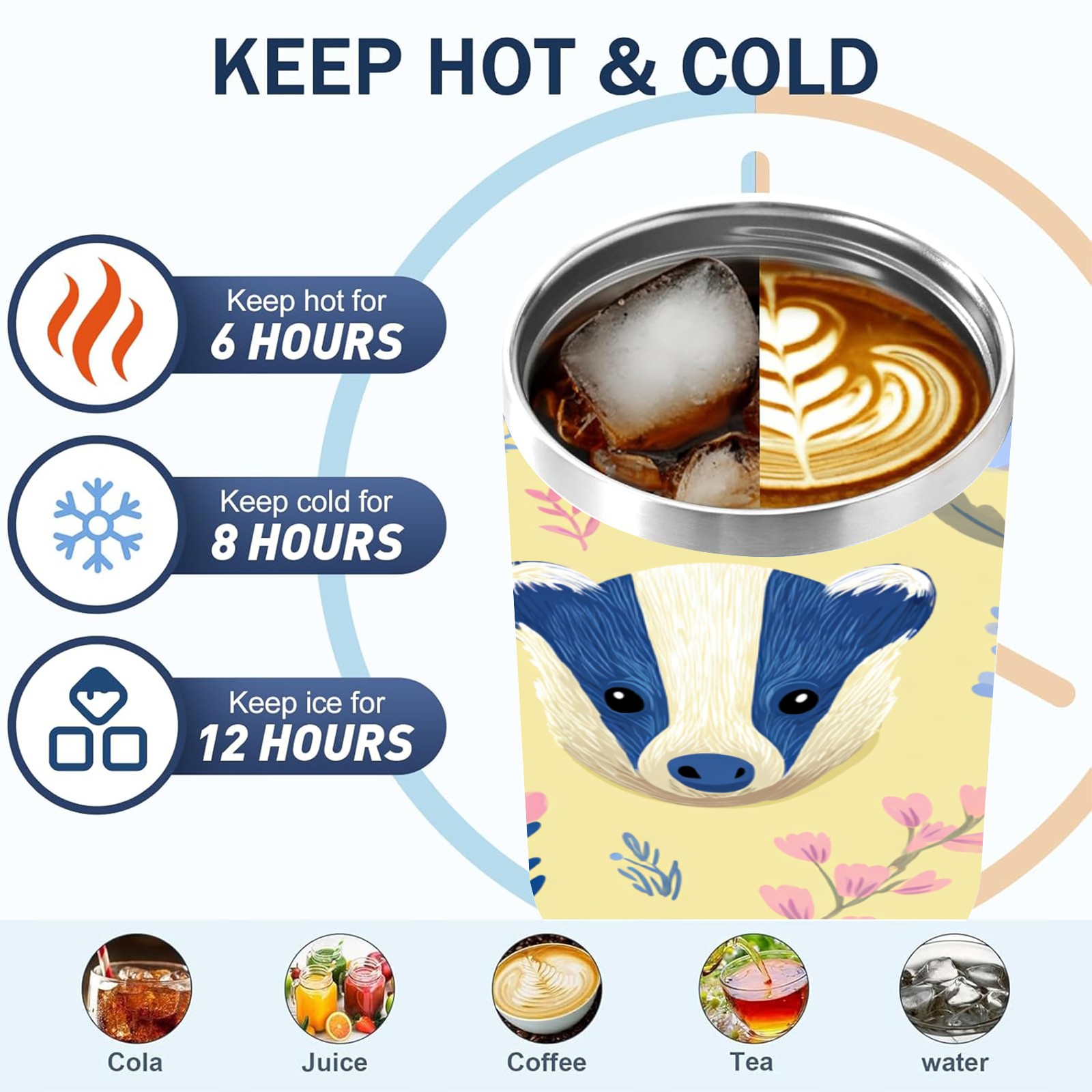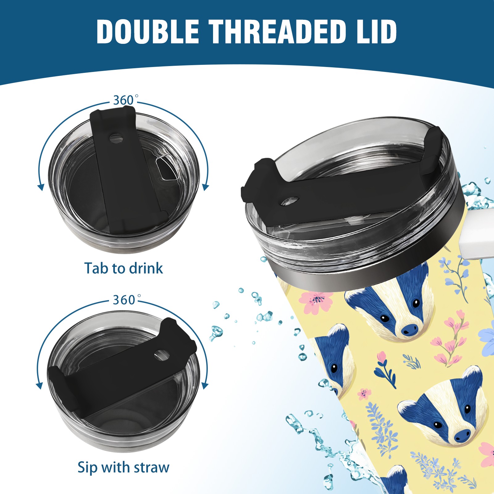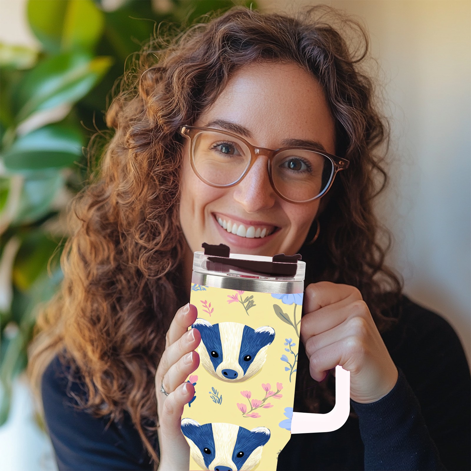 40 унций полностью напечатанный автомобильный стакан Cute Badger Yellow