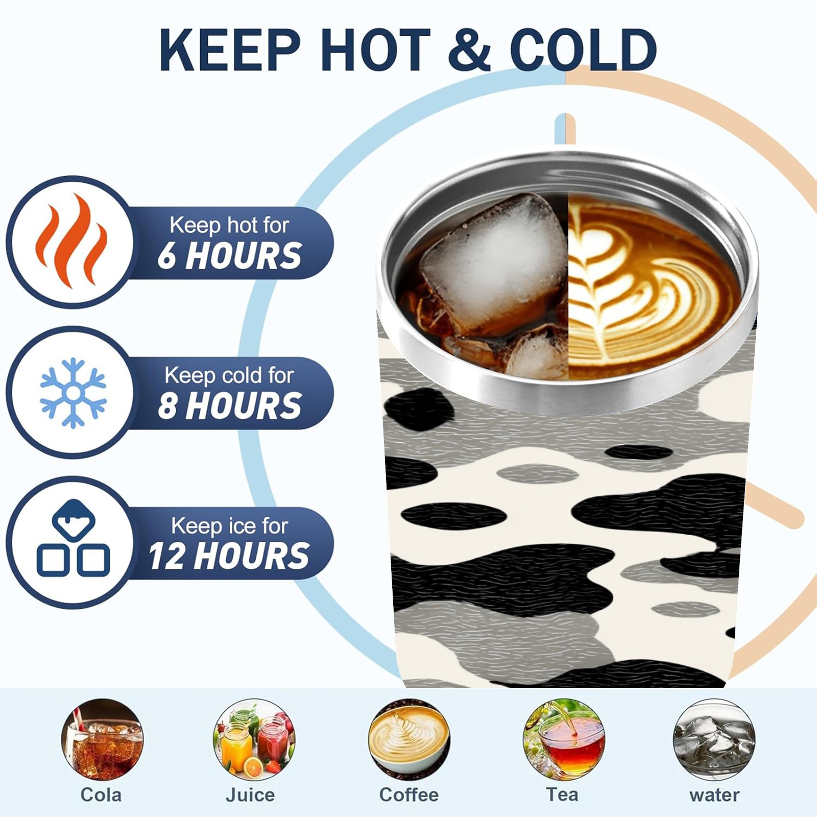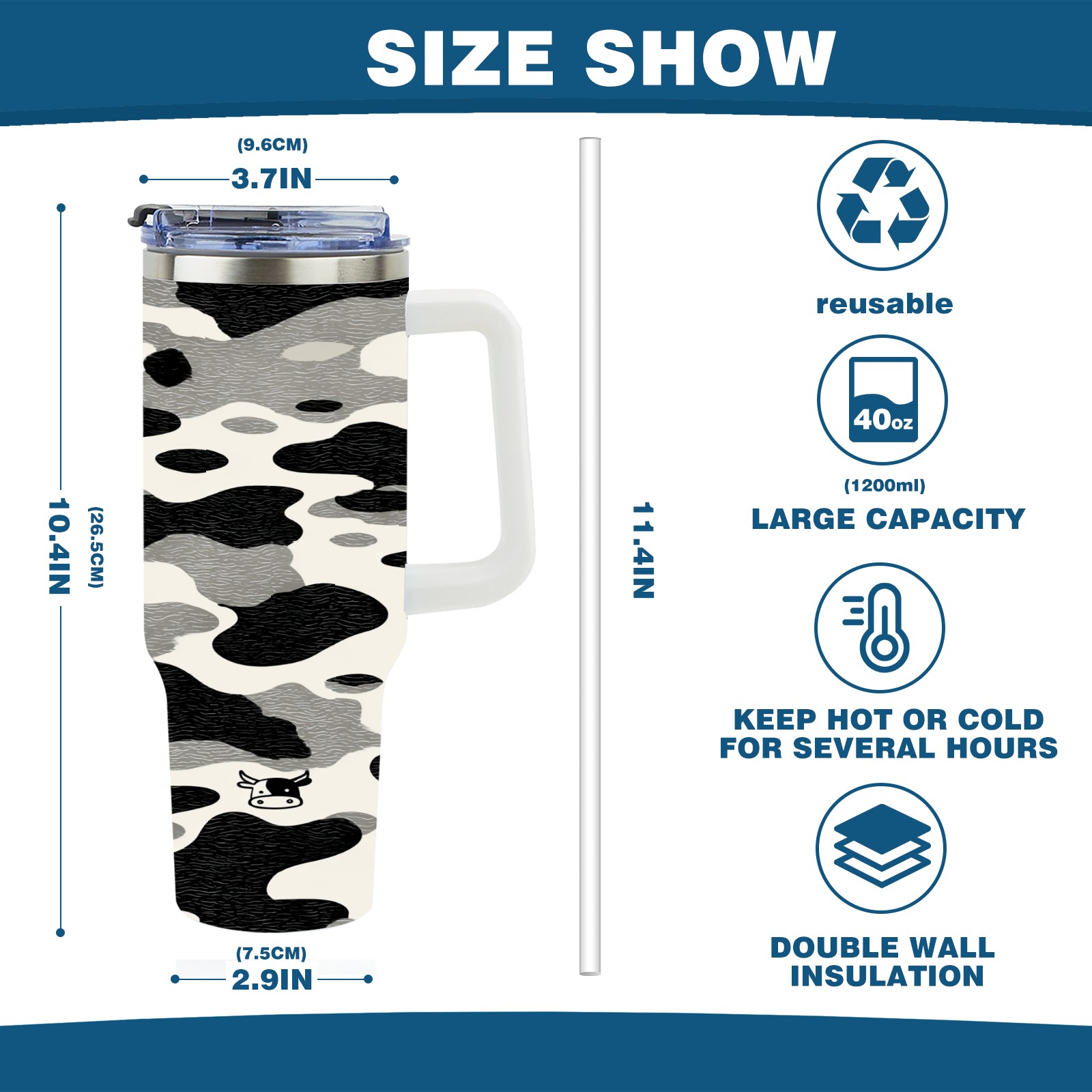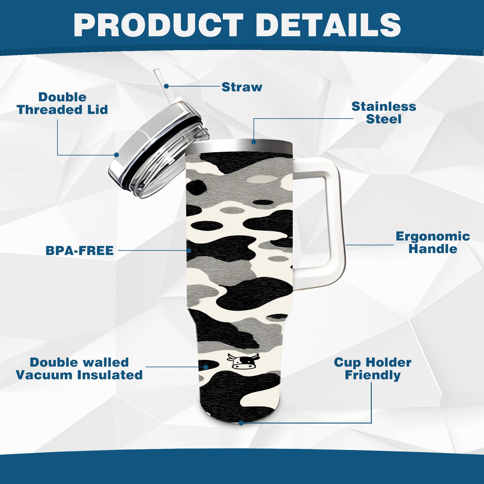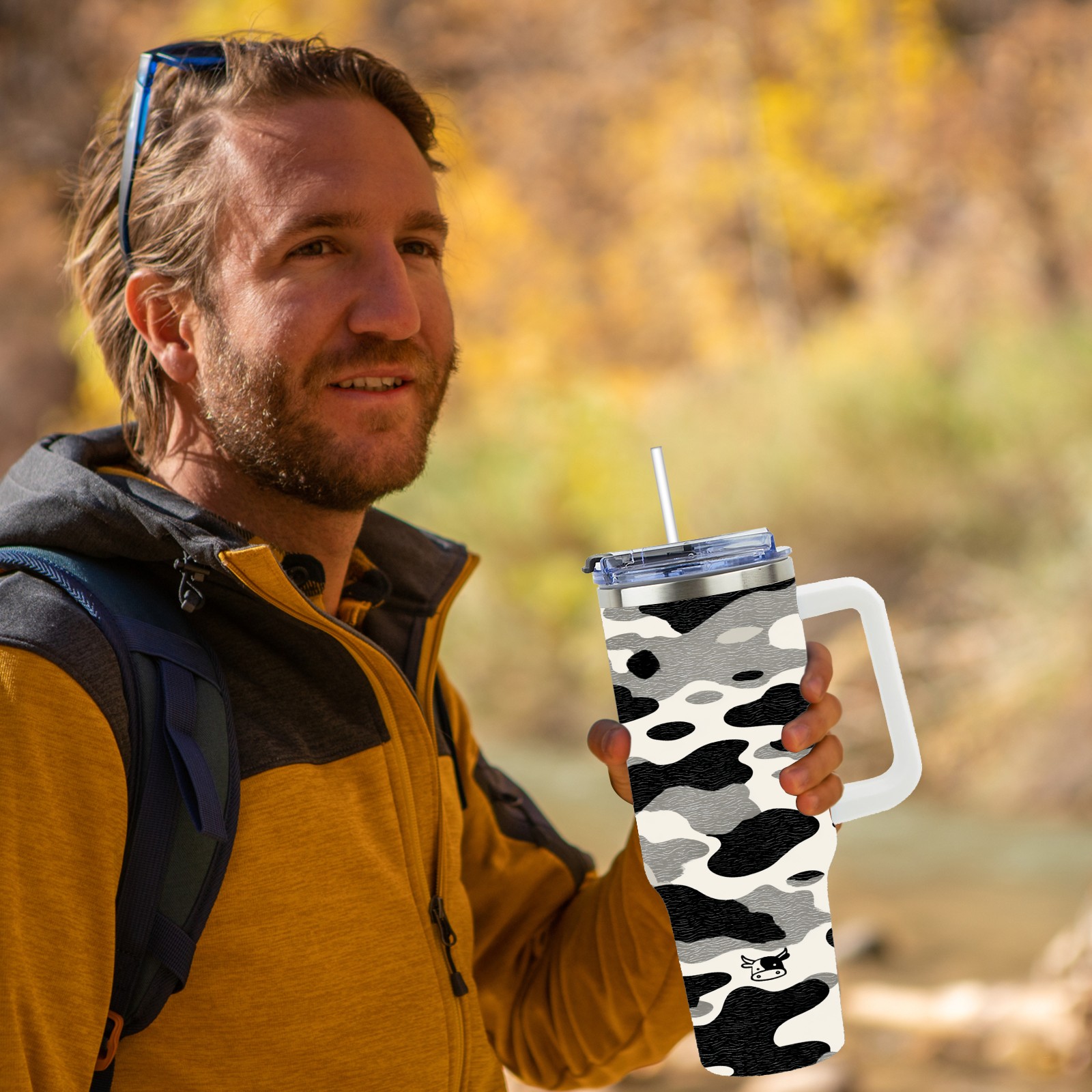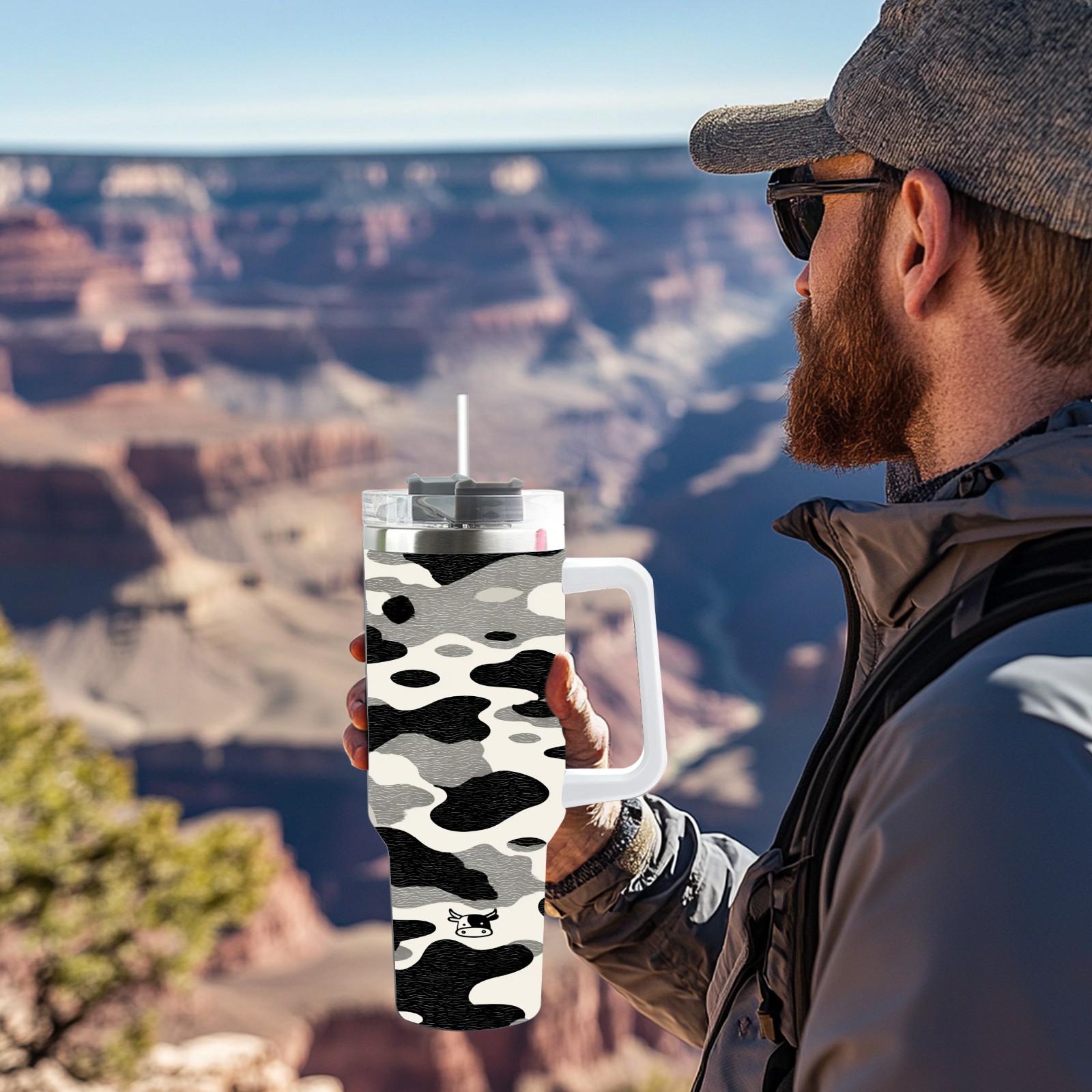 40 унций полностью напечатанный автомобильный стакан Stylish Camo Cow