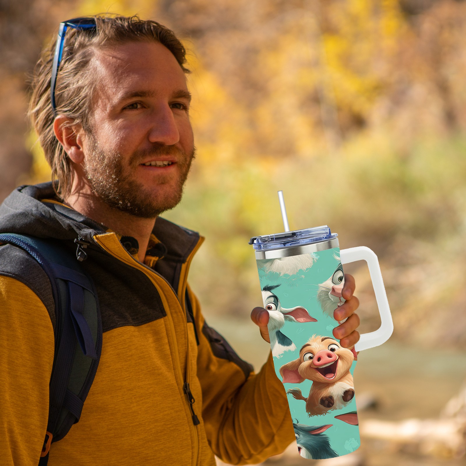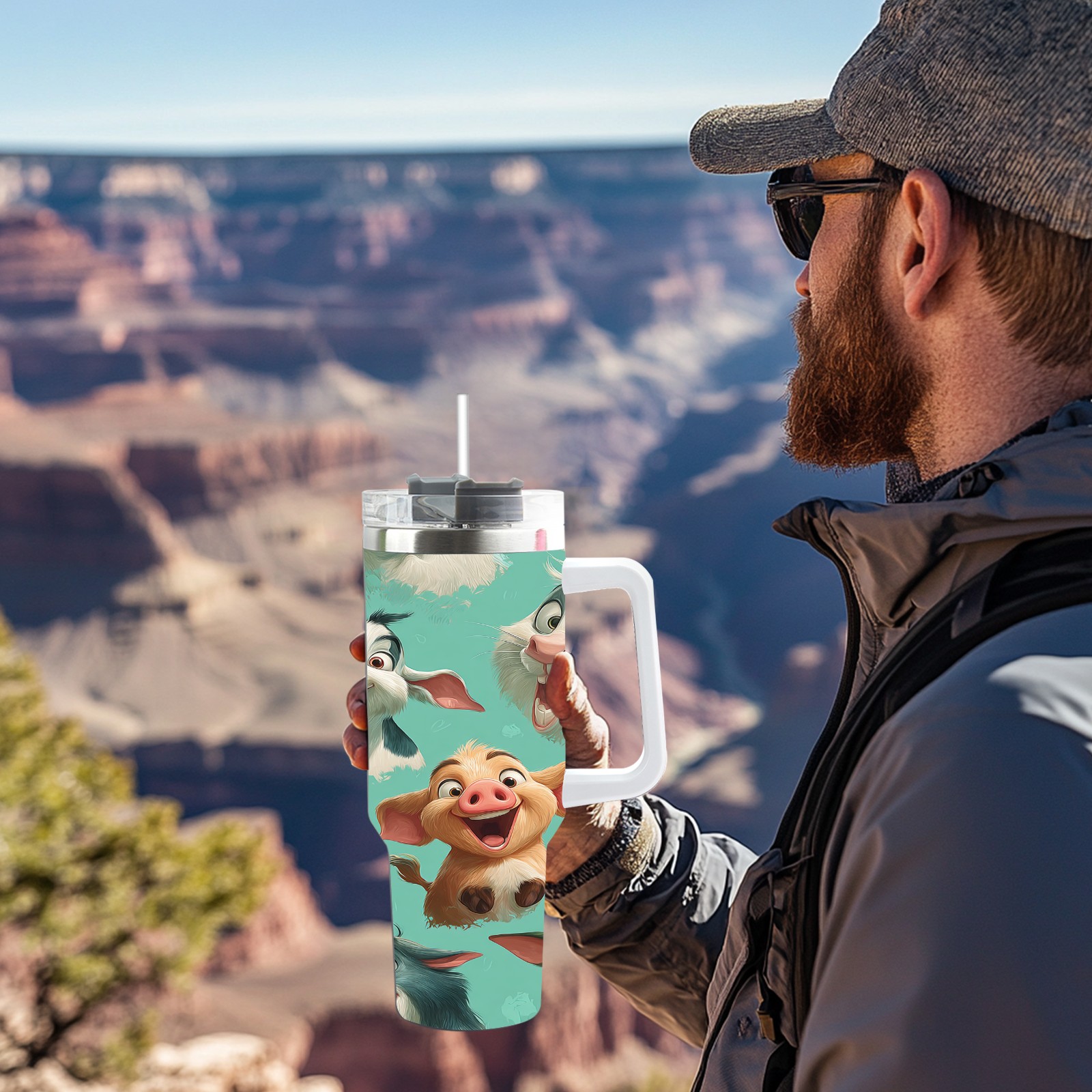 40 унций полностью напечатанный автомобильный стакан Playful Pig Green